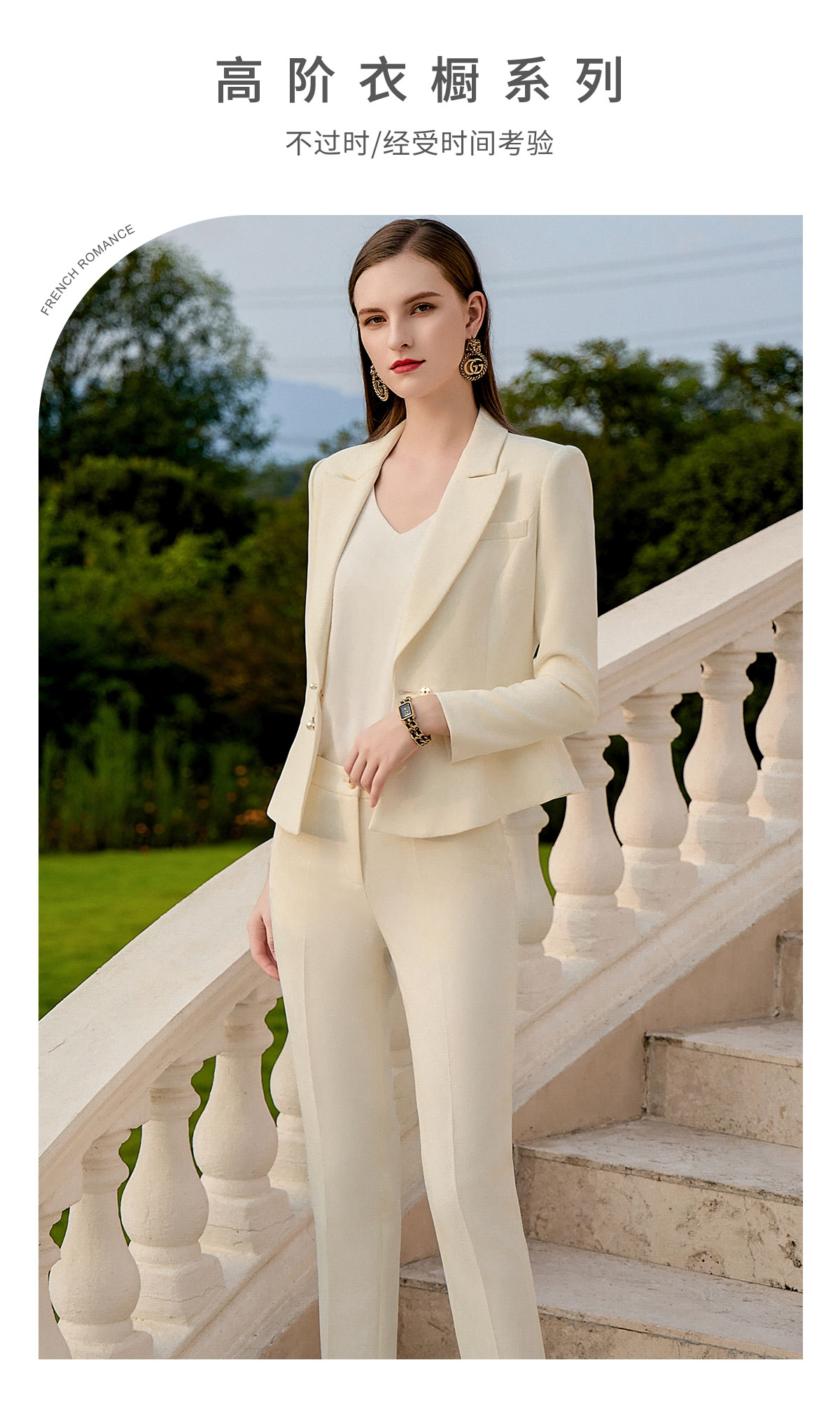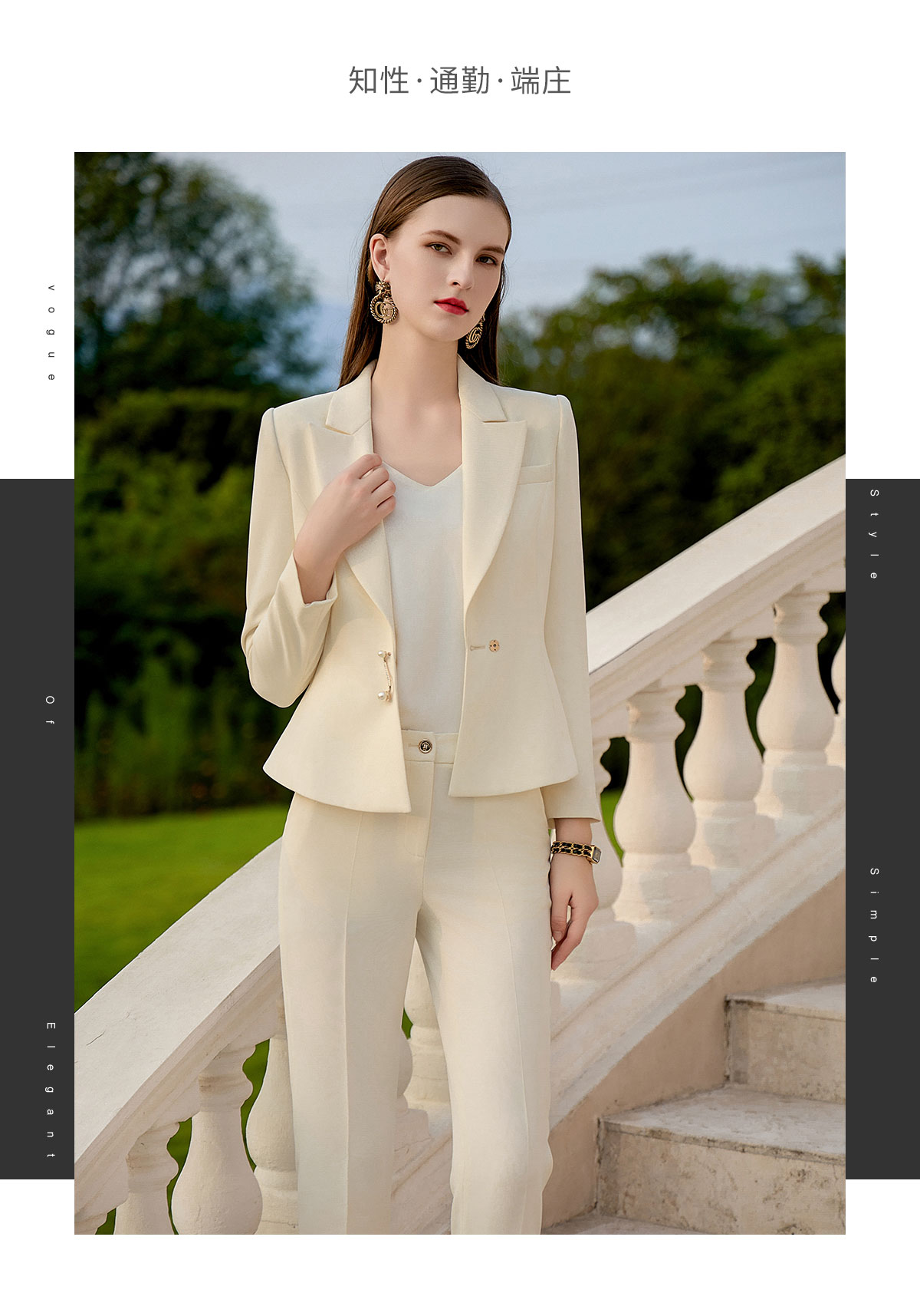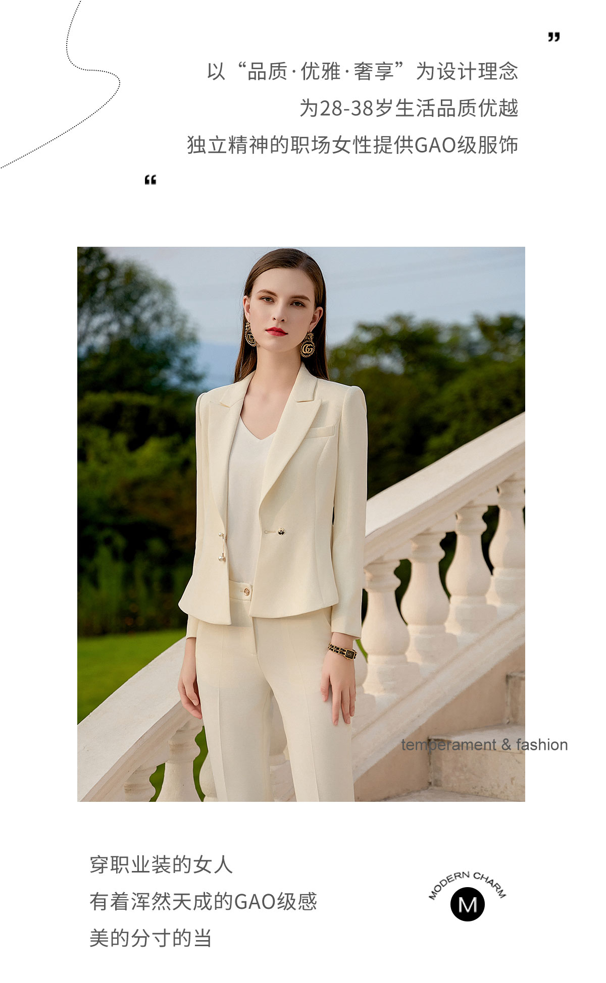 AD大学生面试主持人播音艺考服装女米白色设计感西装浅色职业套装