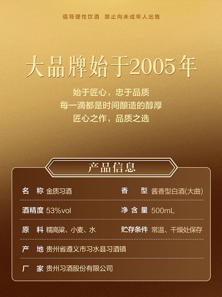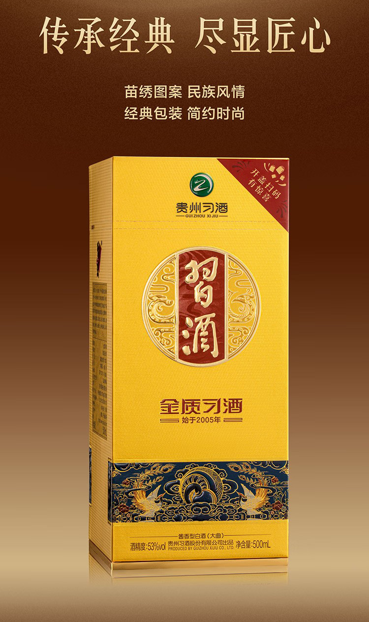 金质习酒 53度 500ml 酱香型白酒 第四代金质 商务 宴请 送礼 自饮 好酒