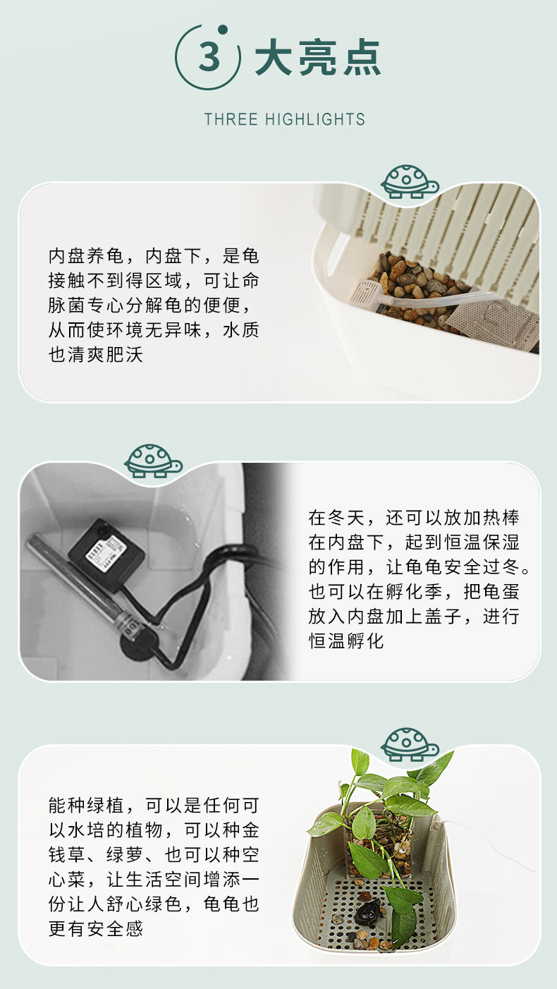 【永不需换水】乌龟饲养护育盆龟苗饲养,乌龟发色盒隔离盒,冬眠保湿保温盒
