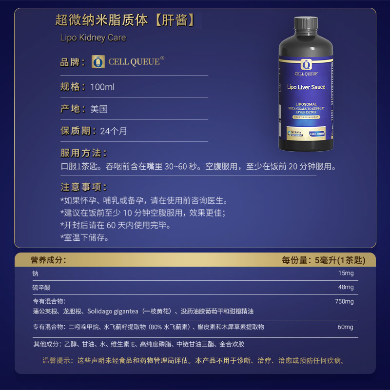 优序CELLQUEUE脂质体肝脏养护口服液100ml