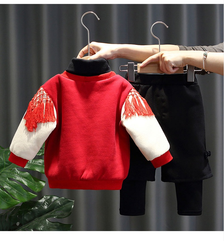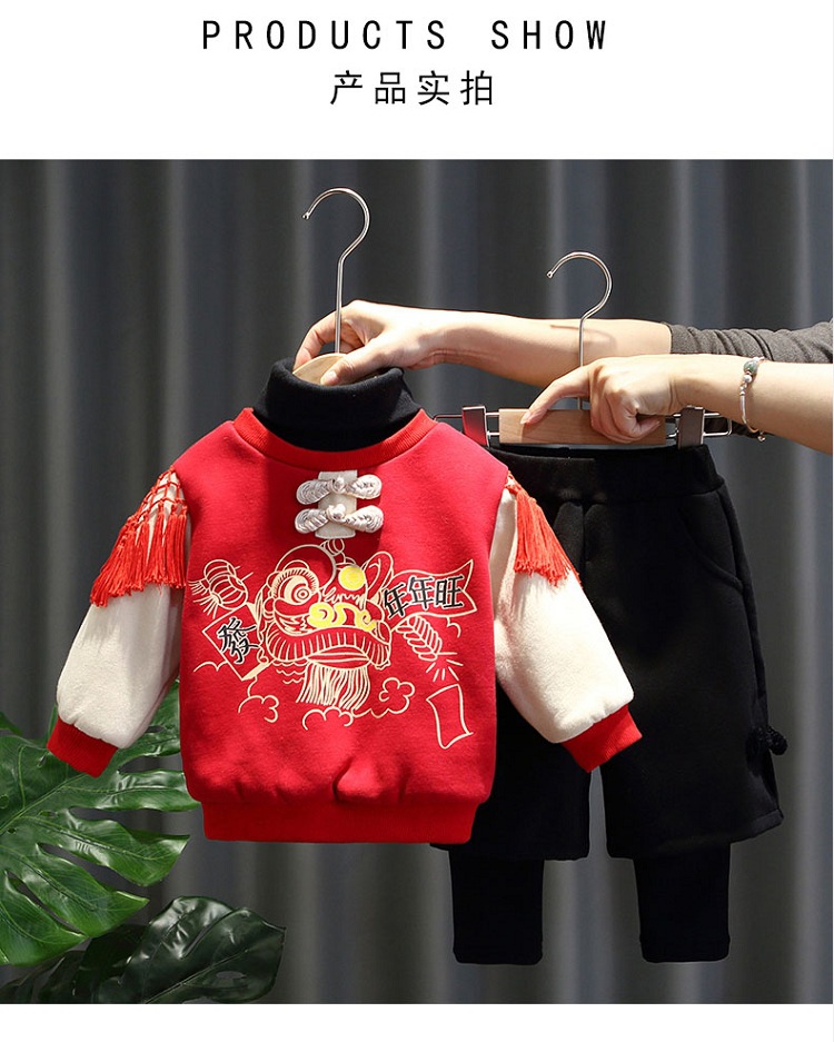 【国风两件套 潮流时尚尽享年味】拜年服儿童中国风汉服唐装冬季加厚款男女宝宝新年喜庆过年服套装
