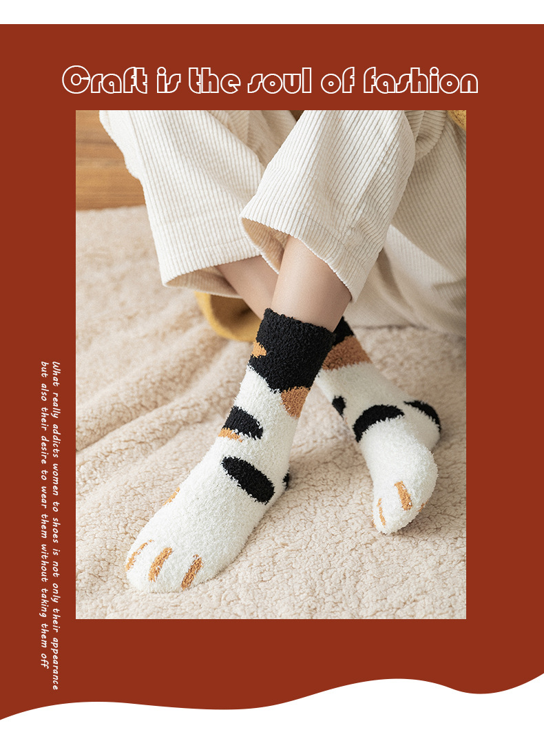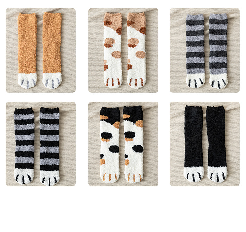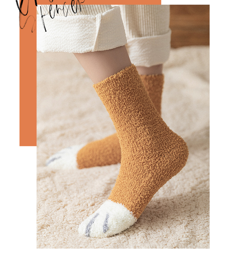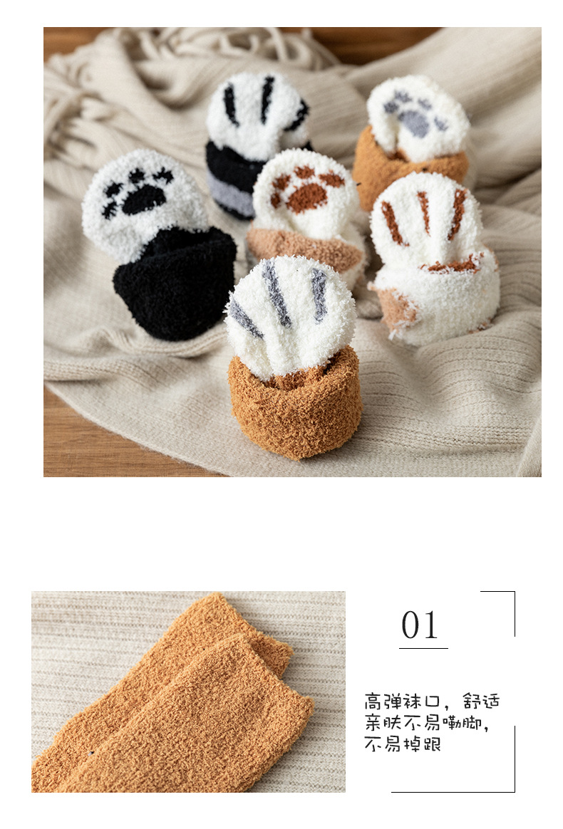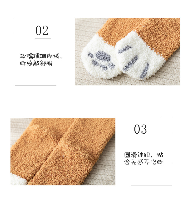 【如云朵般软糯】珊瑚绒中筒袜猫爪保暖毛秋冬加厚加绒袜子女睡眠地板袜长筒月子袜