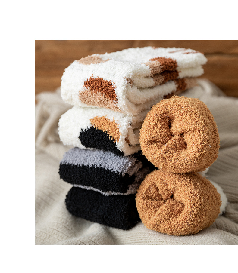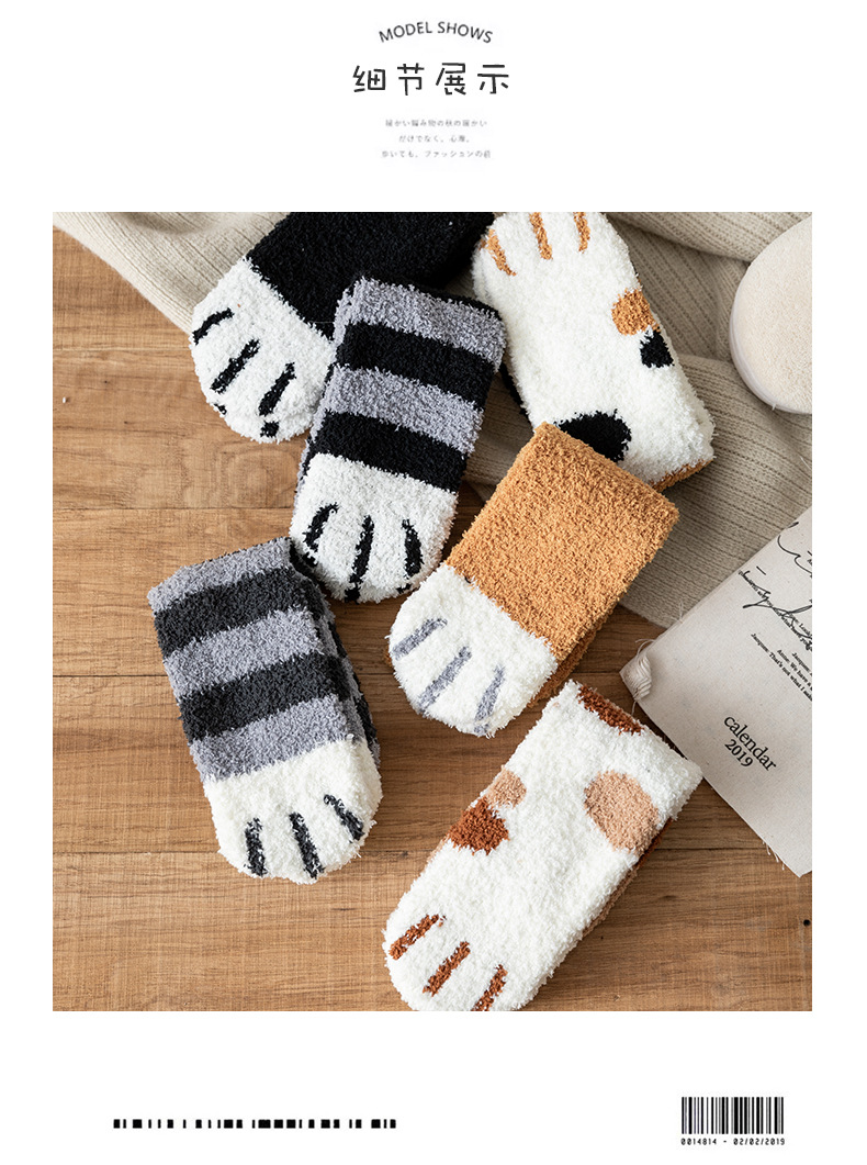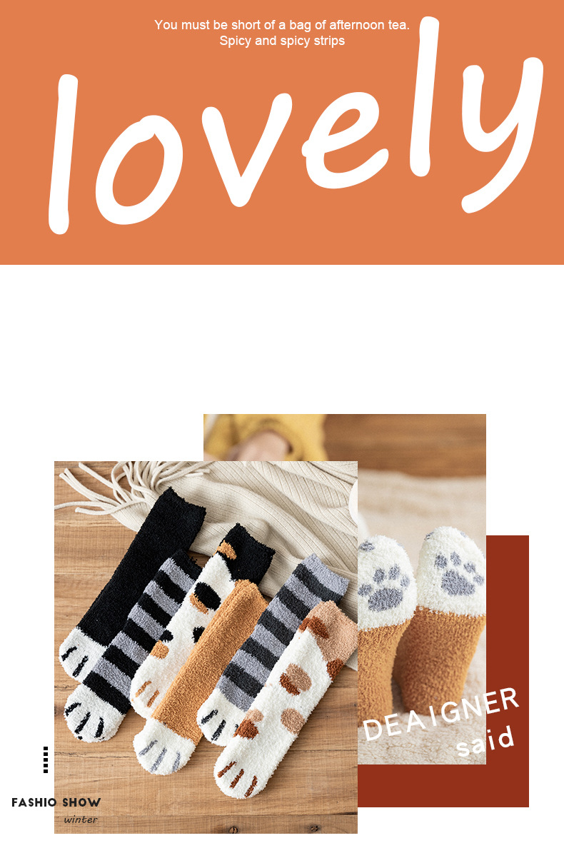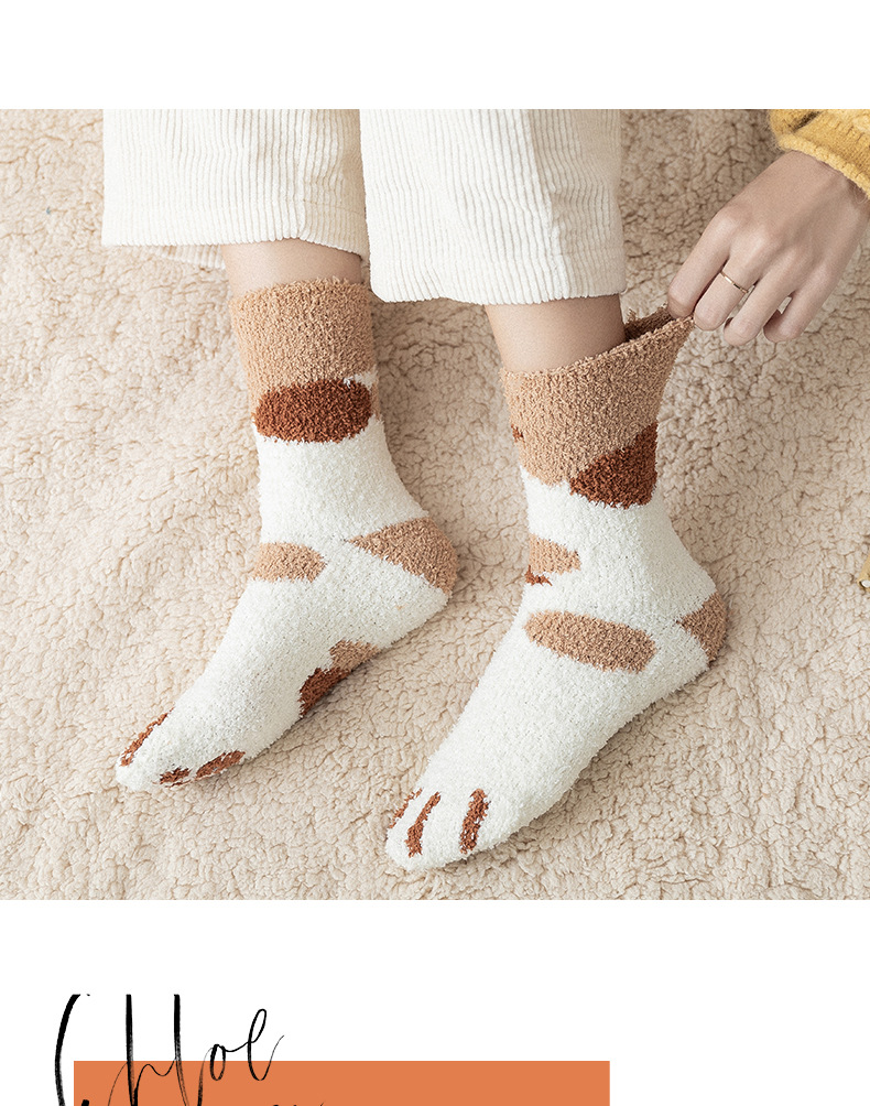 【如云朵般软糯】珊瑚绒中筒袜猫爪保暖毛秋冬加厚加绒袜子女睡眠地板袜长筒月子袜