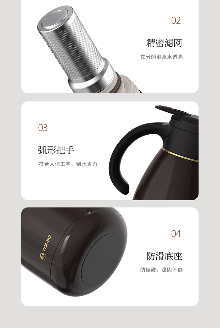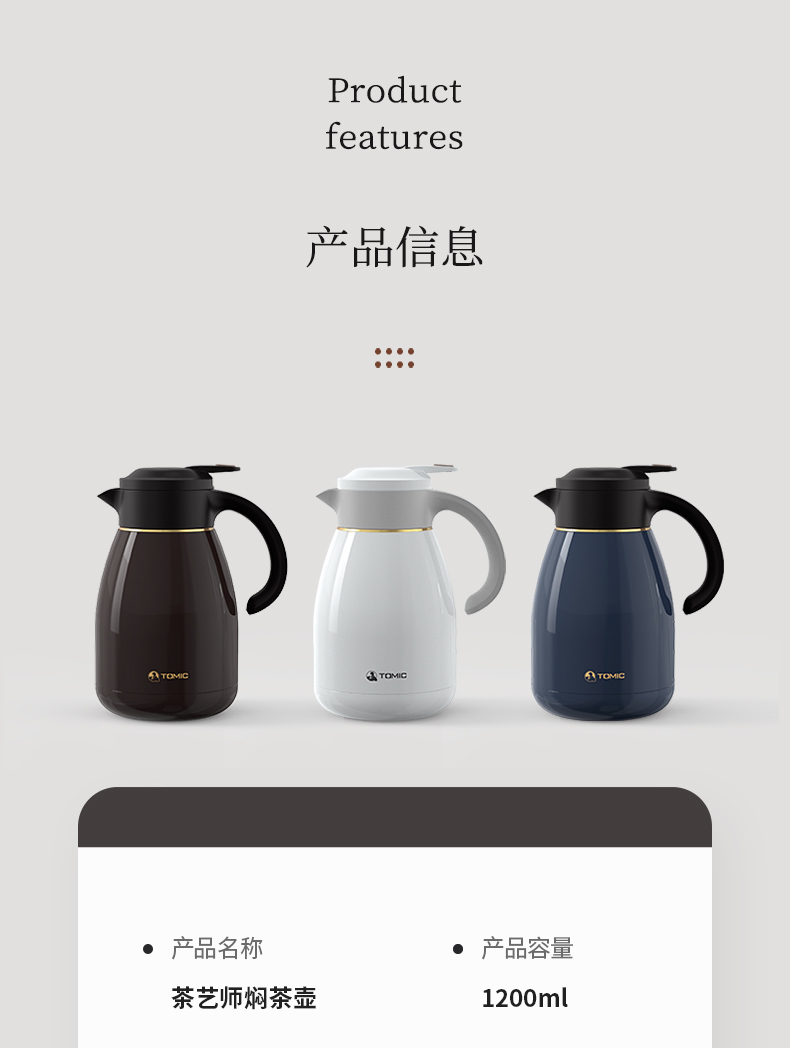 特美刻TOMIC陶瓷内胆钛茶隔焖茶壶白茶陈皮普洱泡茶壶养生茶闷泡保温壶TJ70023Ti宝蓝色 1.2L