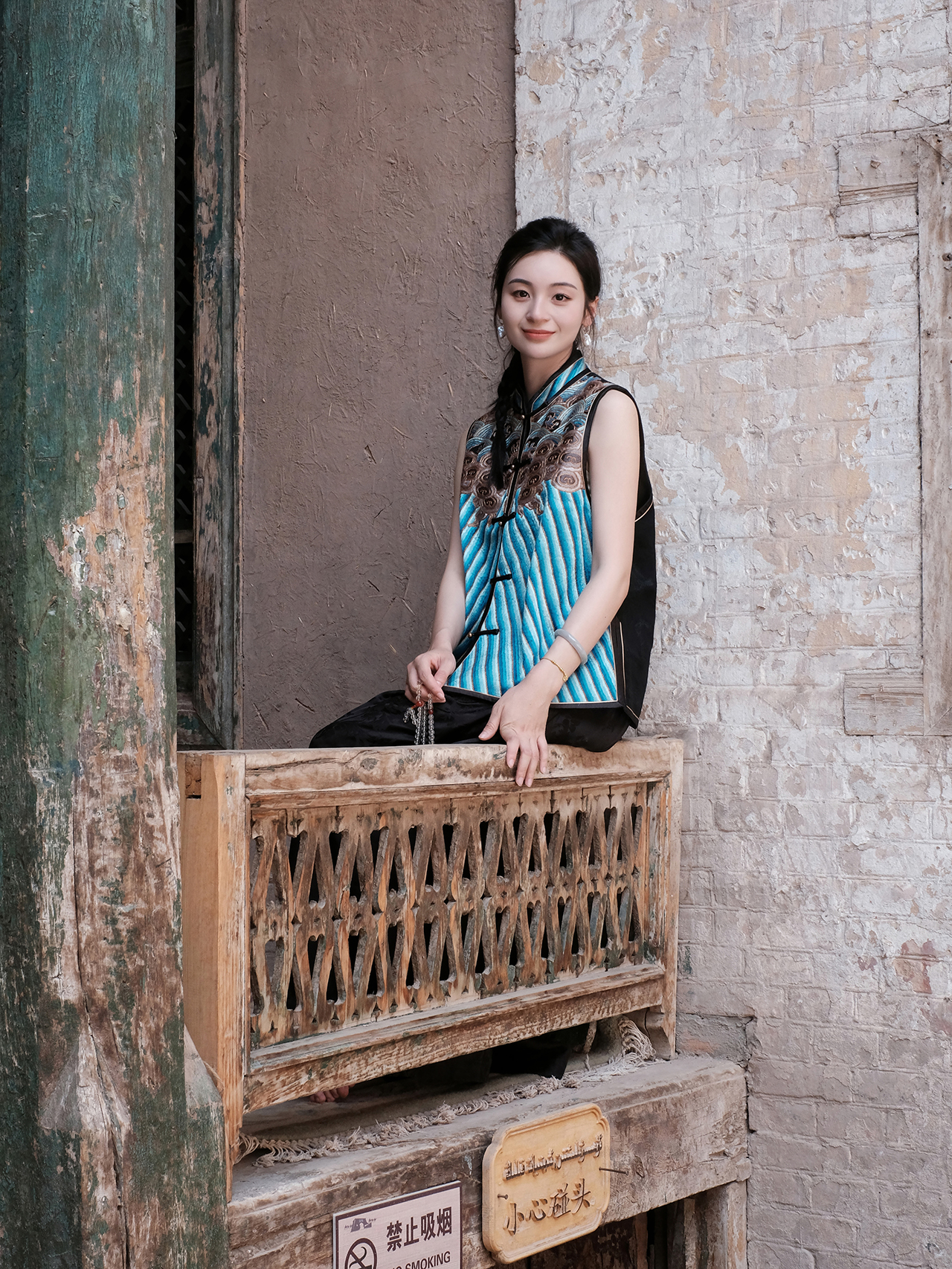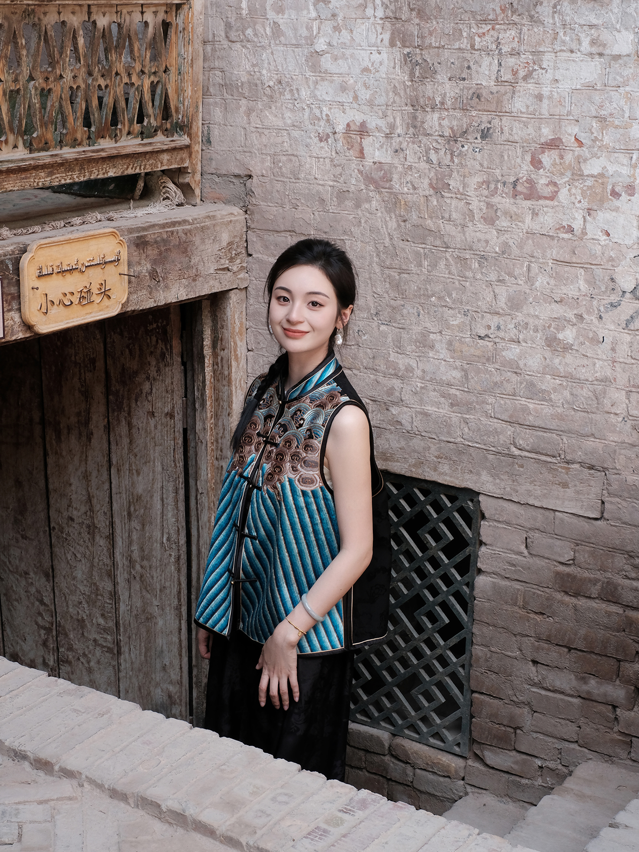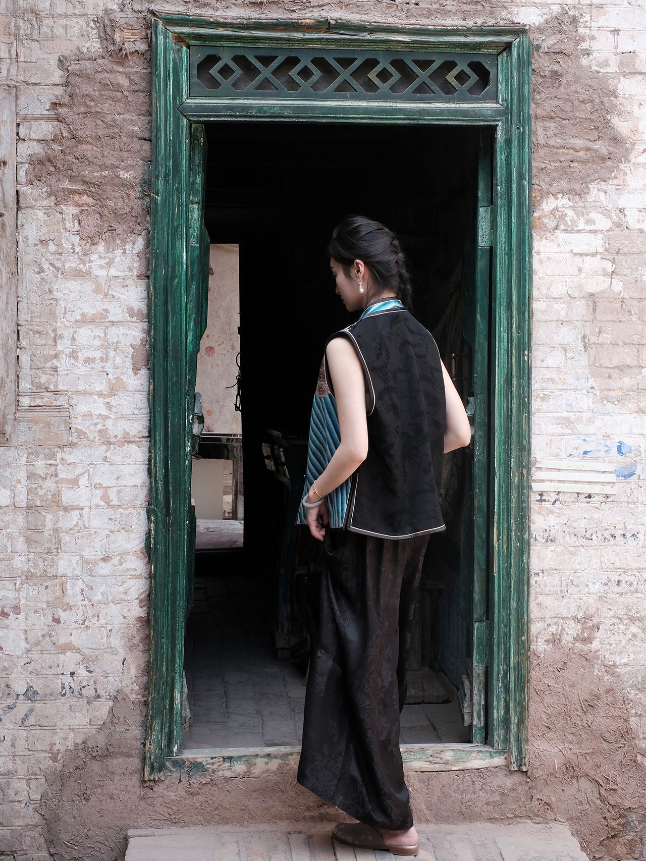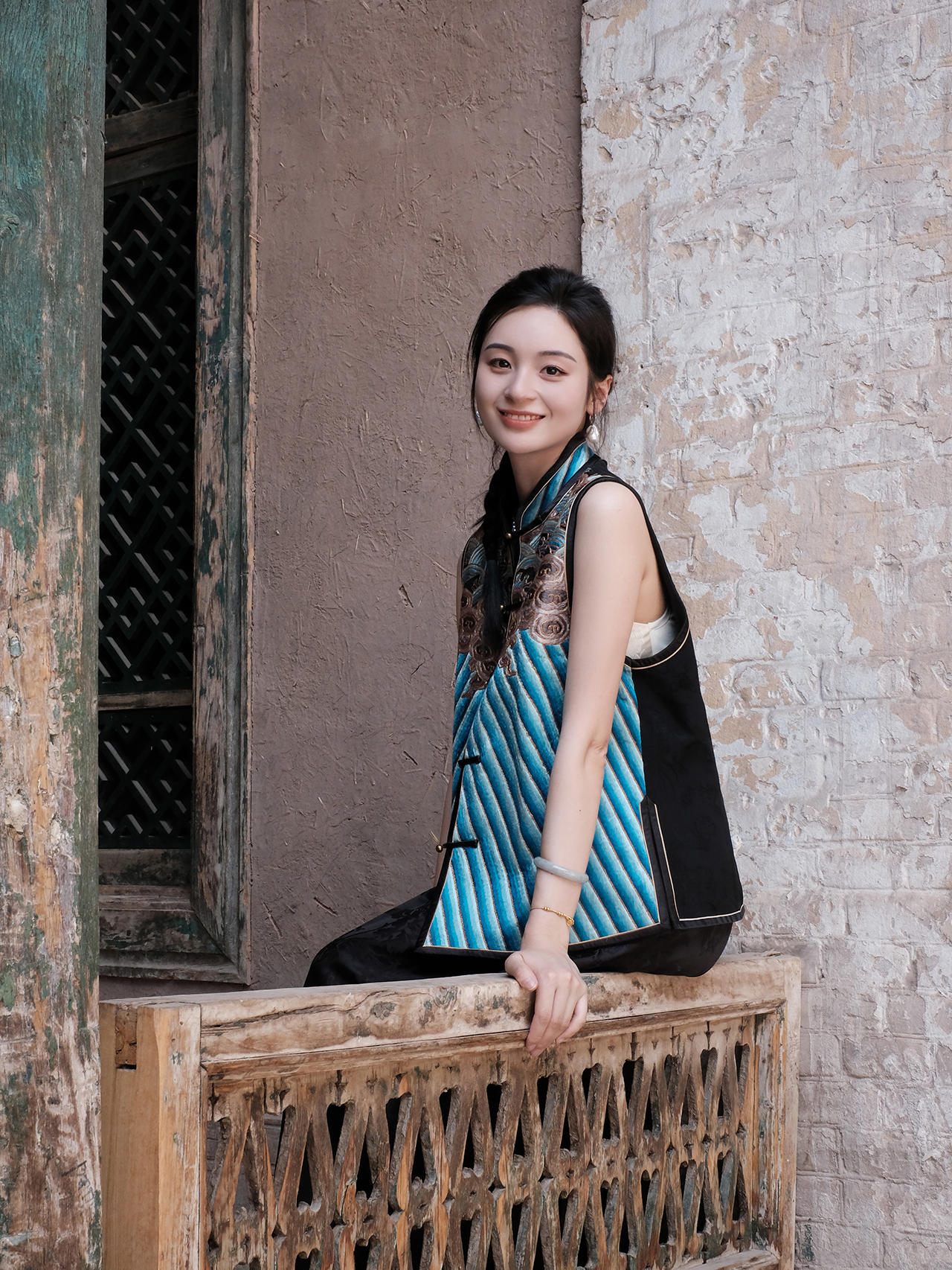 盛唐牡丹盛奢系列|老绣片江崖海水纹马夹(特殊商品不退不换)