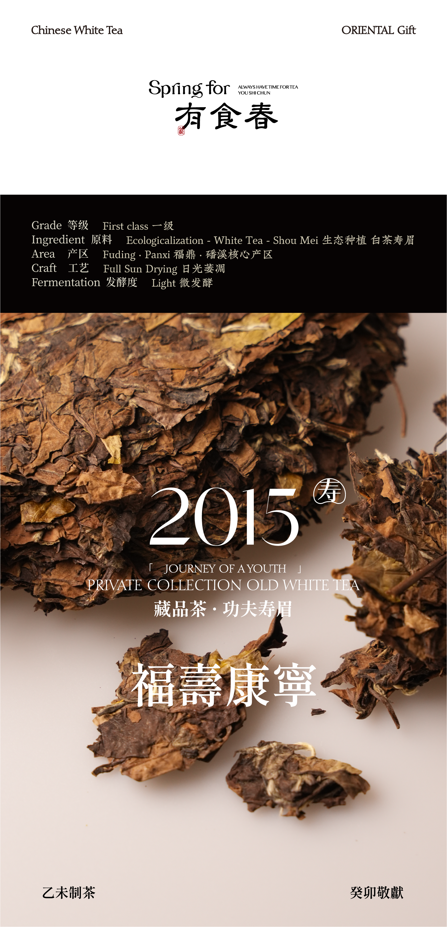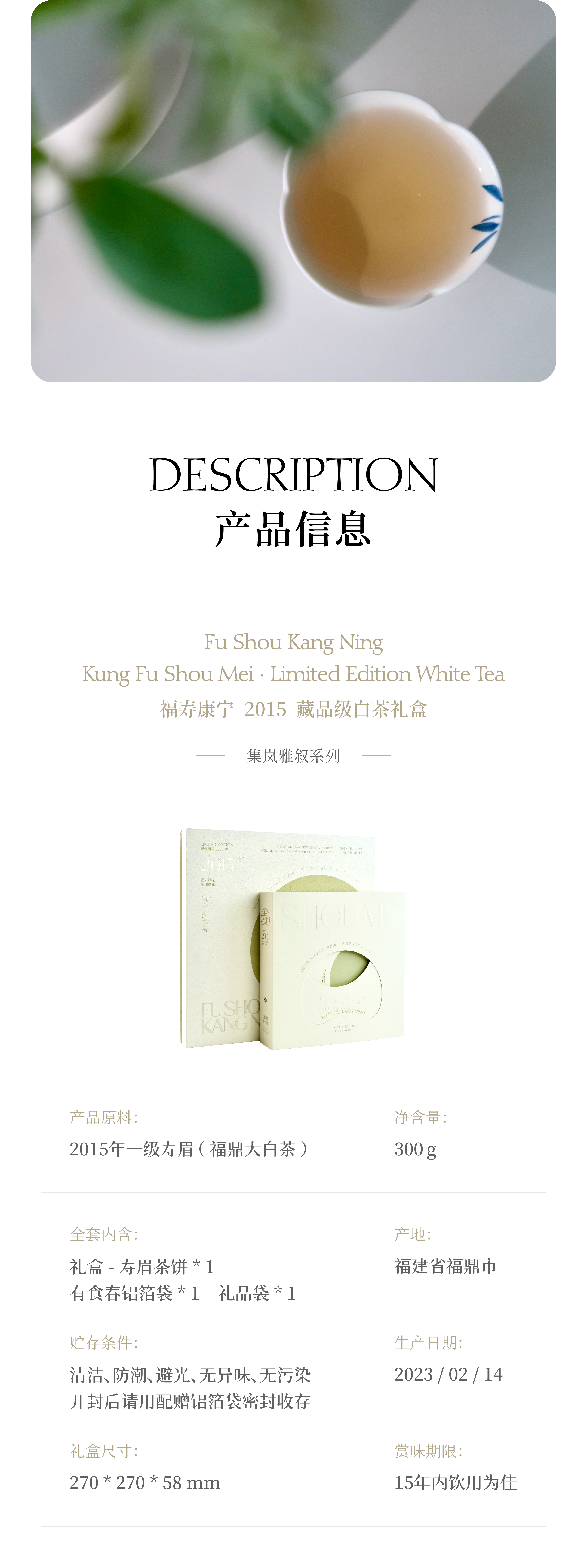 【限量款】福寿康宁2015功夫寿眉·福鼎大白茶 藏品级白茶礼盒 300g