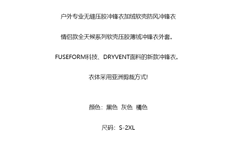 【jc1】男子户外无缝压胶冲锋软壳防风外套!!