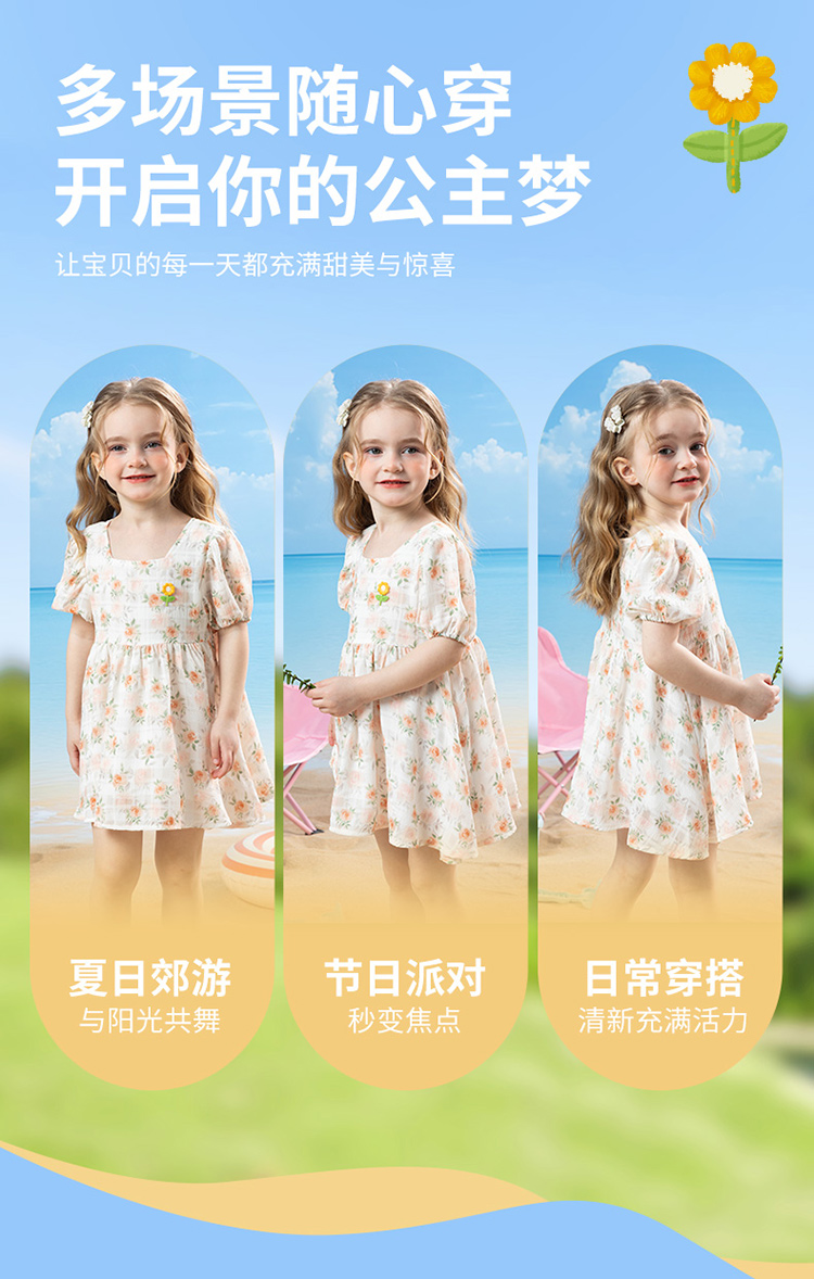 贝贝怡夏季女童短袖连衣裙ZB2EQ007