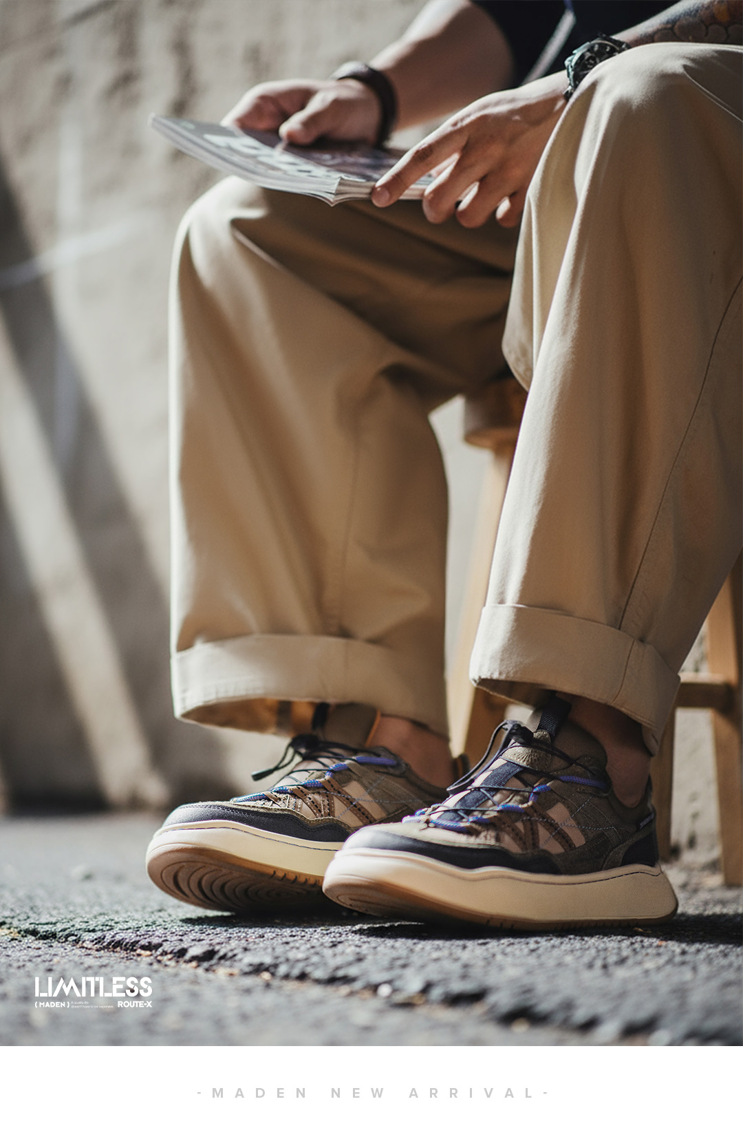 马登无境新款男士厚底增高山系板鞋机能风通勤鞋运动免系休闲鞋子