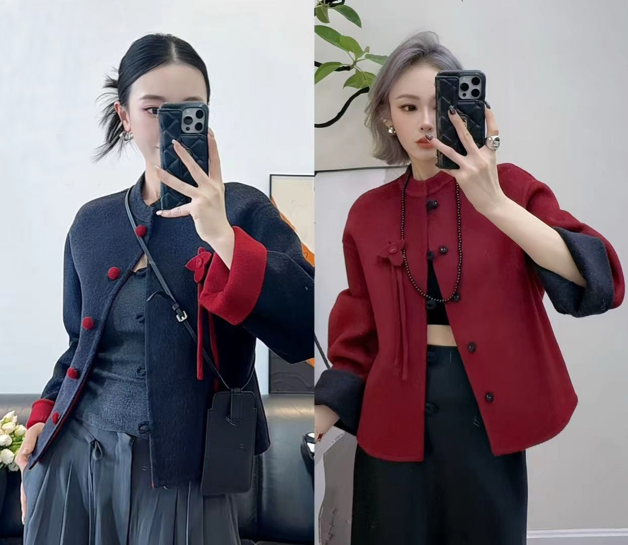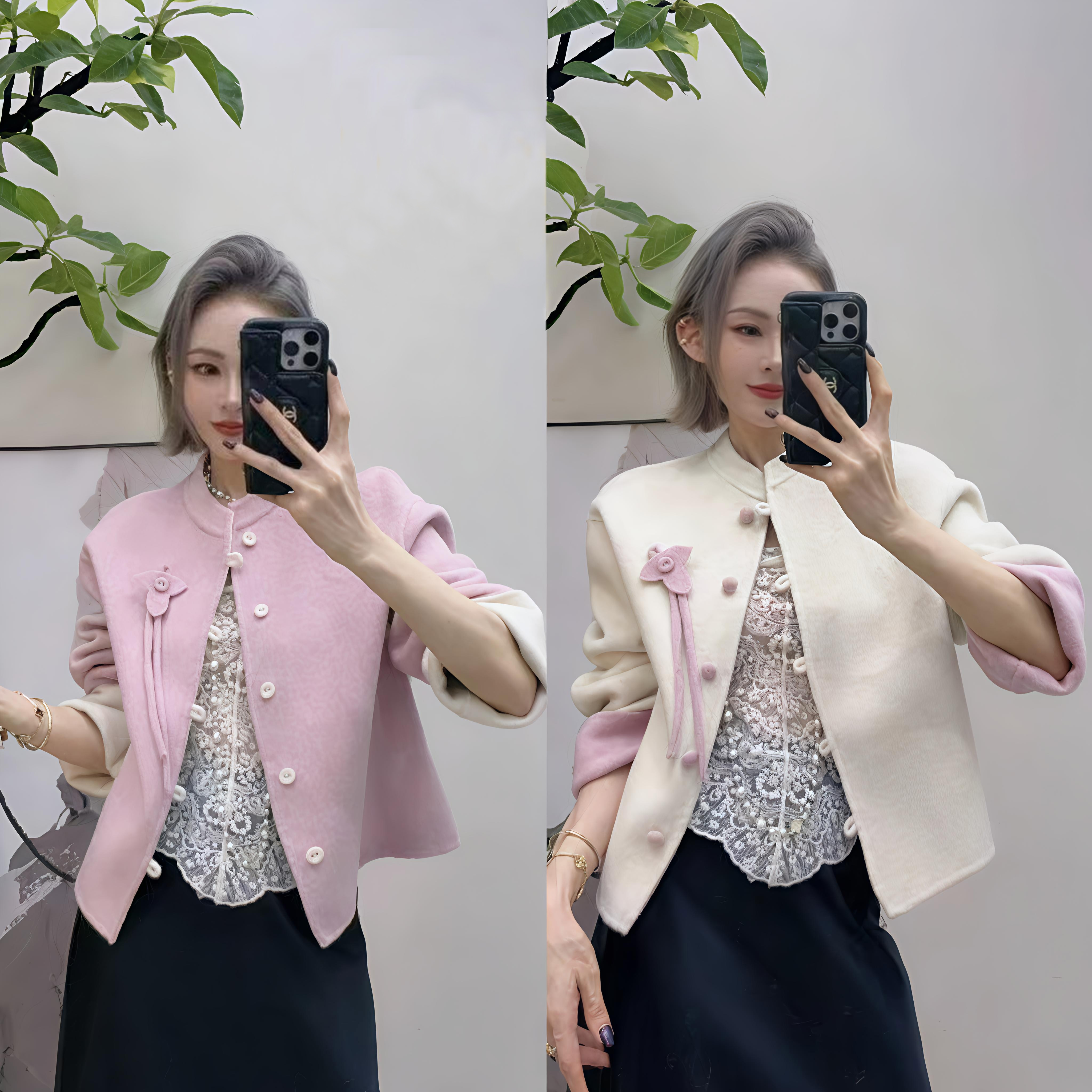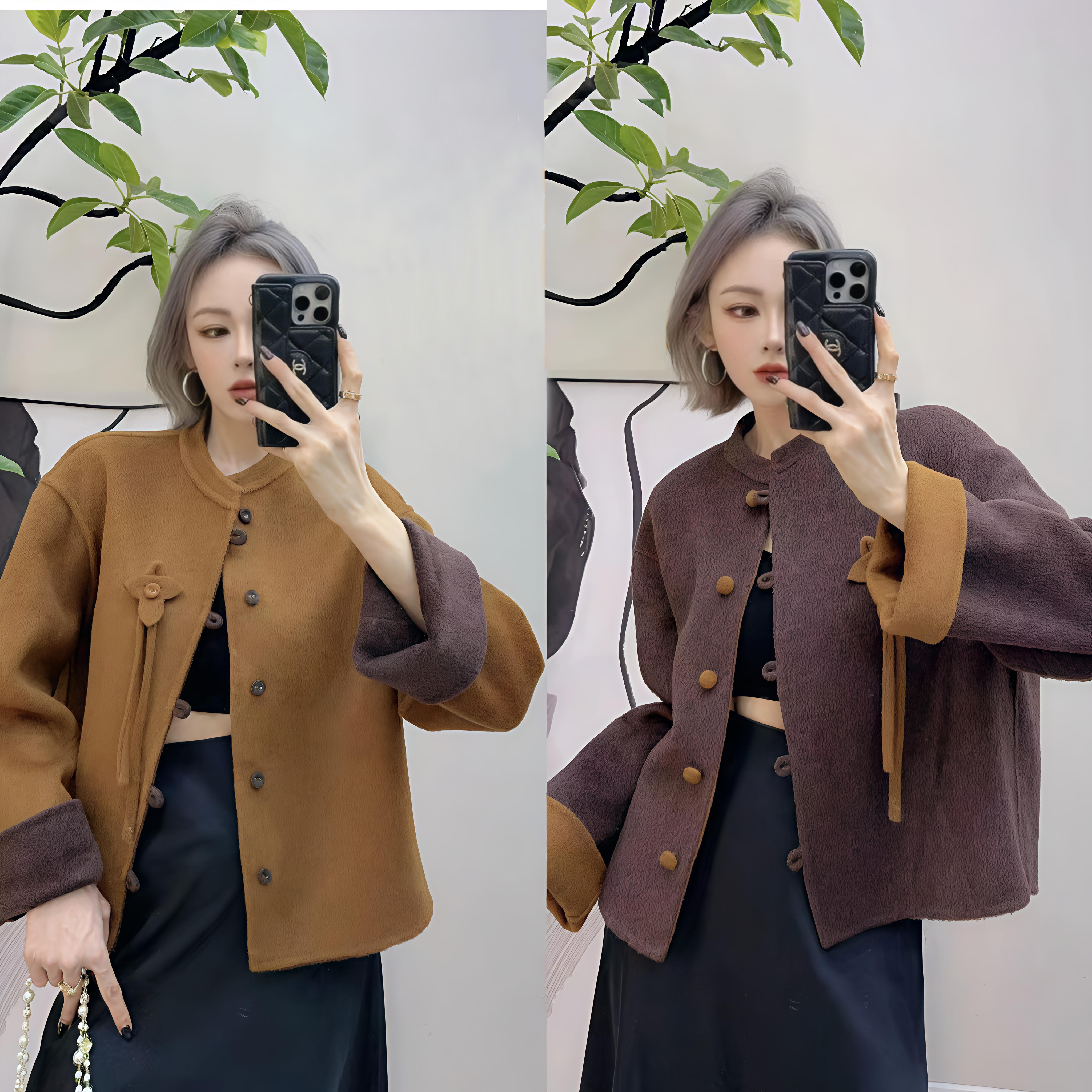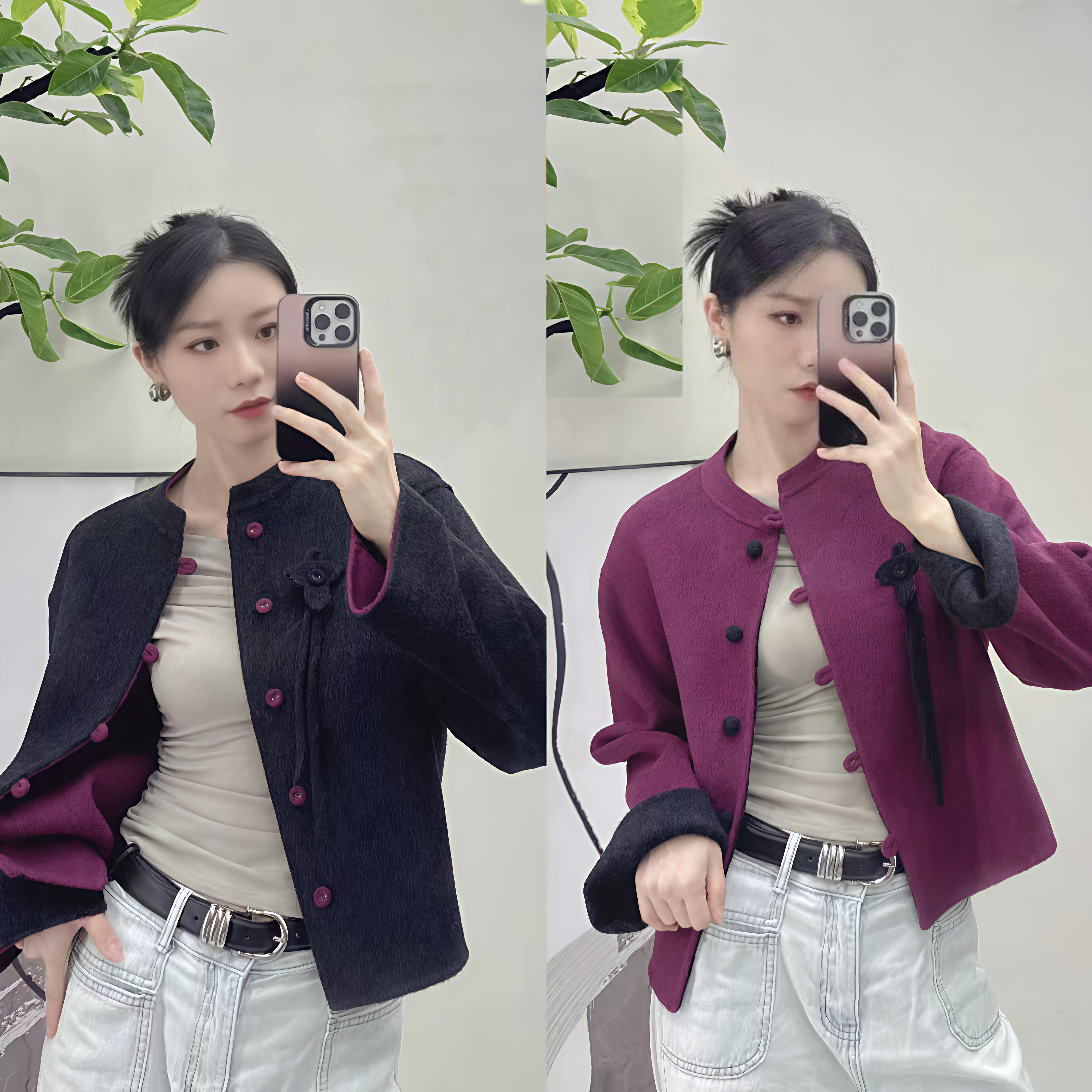 SZ6A02_凝脂色/栗壳色/烟墨色_大衣_秋冬_圆领中式盘扣流苏装饰宽松落肩短款_高级女装_BERNIEELEN 伯妮斯茵