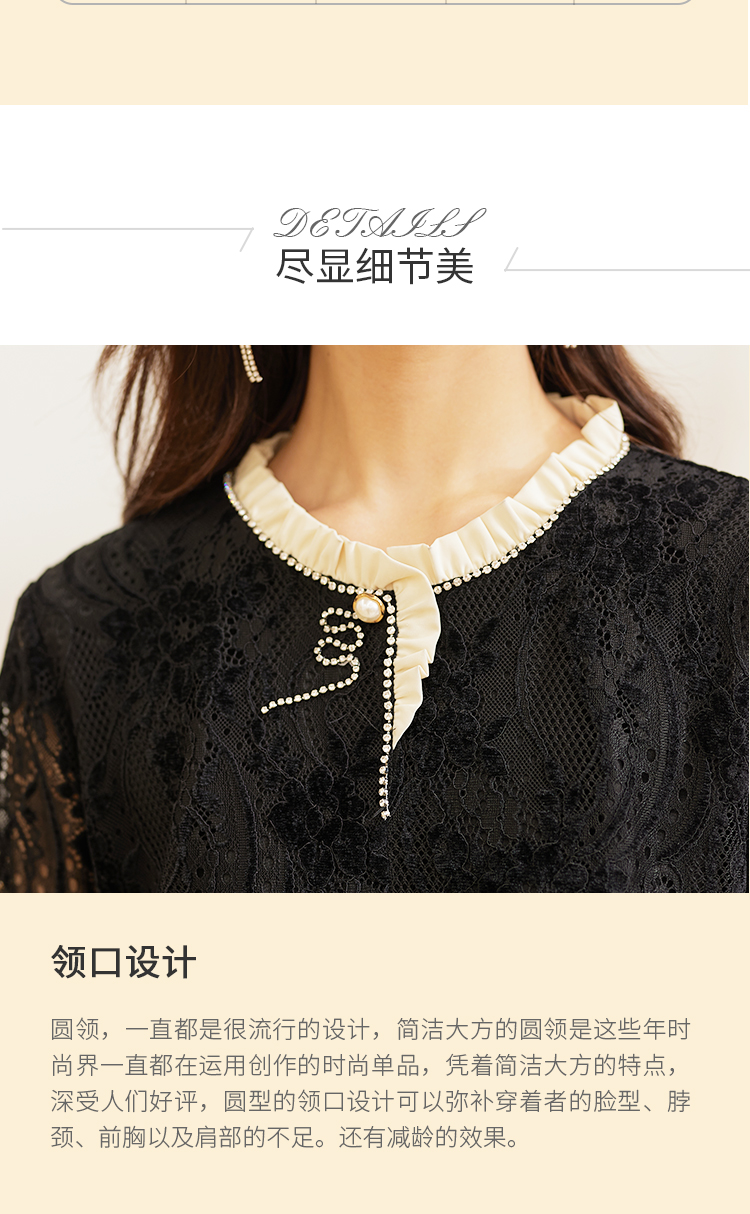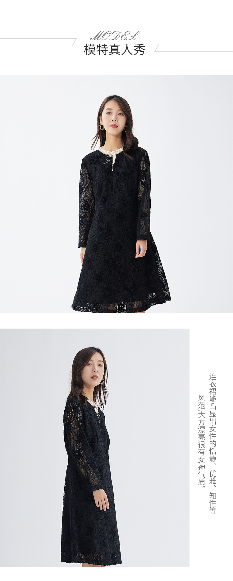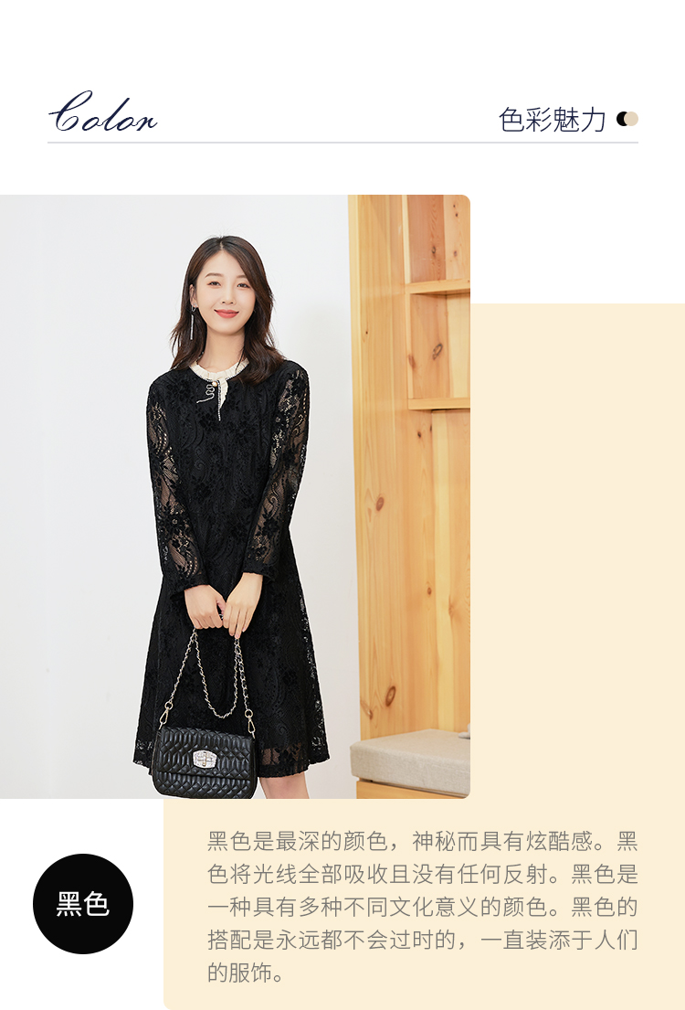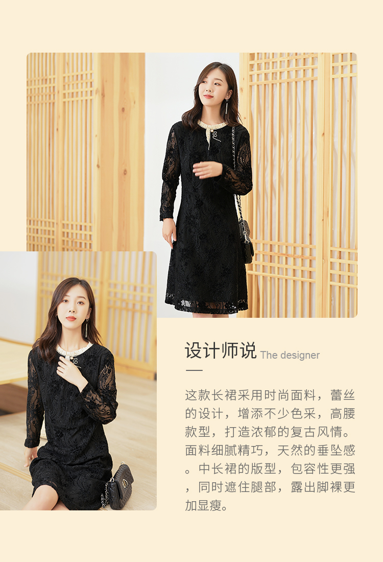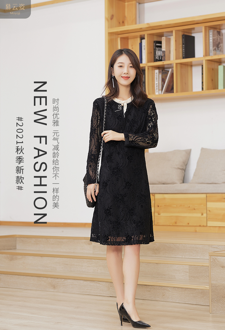 【时尚优雅,简洁大方】慕云姿2021秋季新款气质蕾丝提花连衣裙