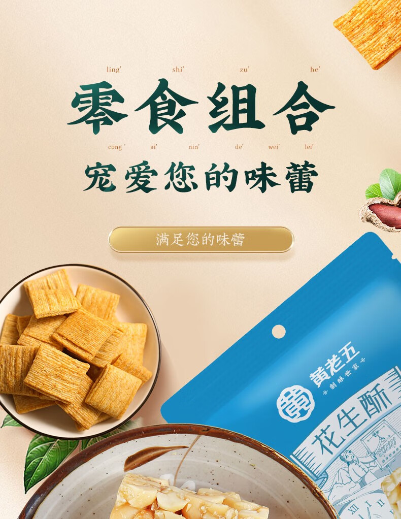 (分两个包裹)黄老五 零食组合1015g + 三只松鼠蜀香牛肉麻辣味100g/袋*3【鲜享1.5】