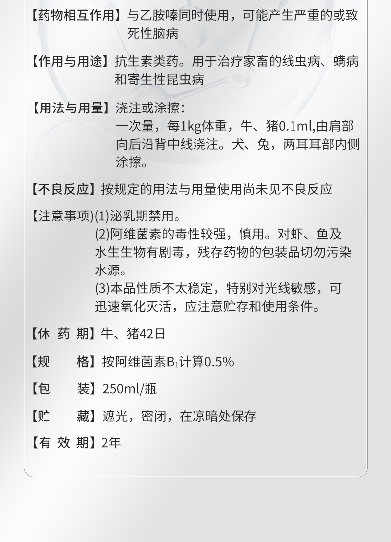 【社群专享】0.5%阿维菌素透皮溶液250ml 体内外驱虫 无应激