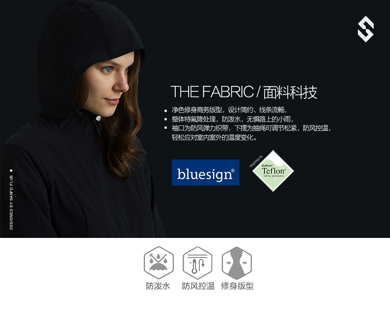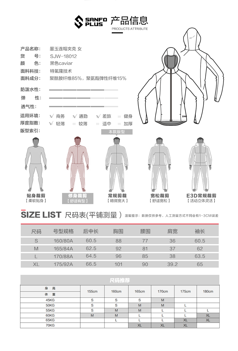SanfoPlus防风防泼户外皮肤衣连帽修身夹克外套 女 18012