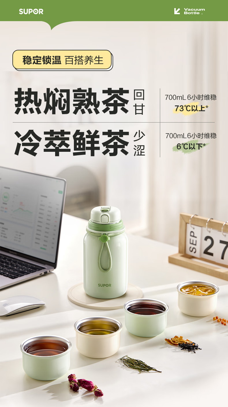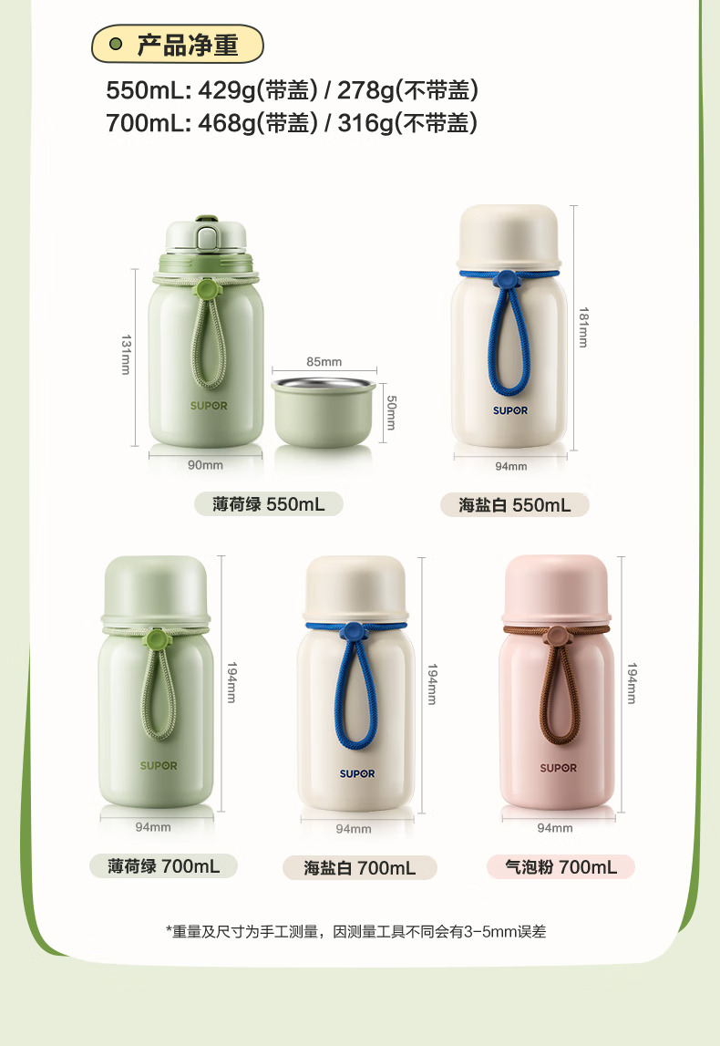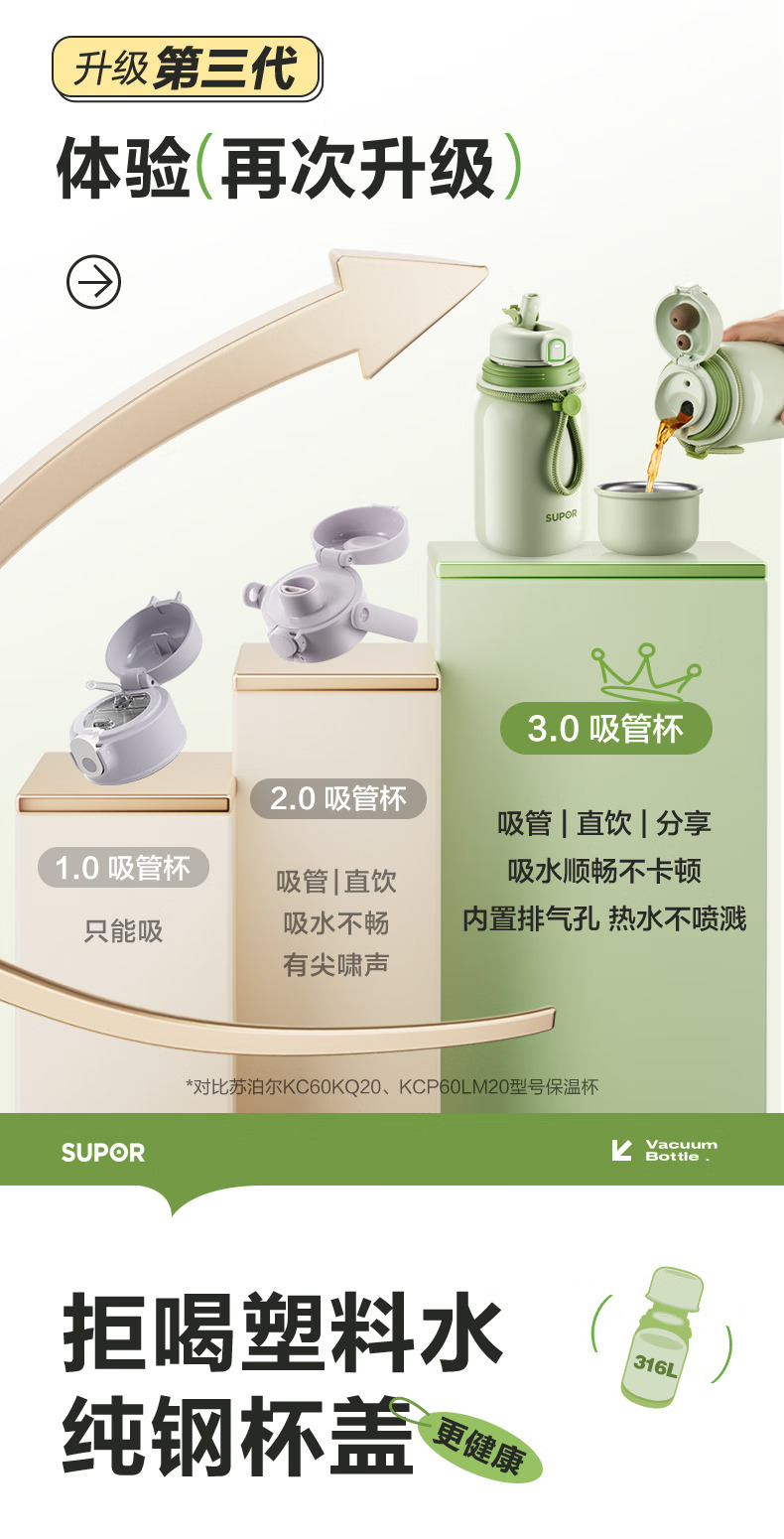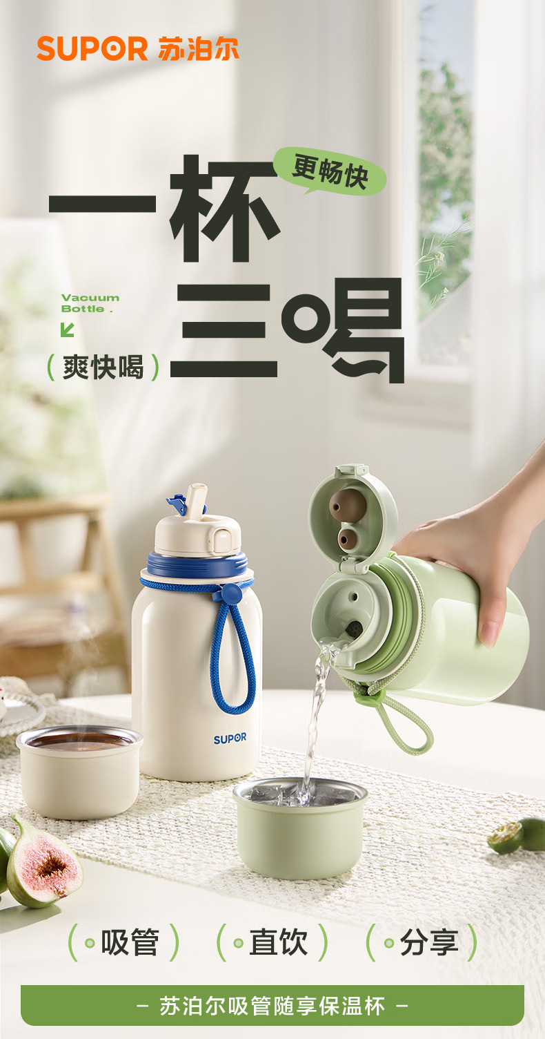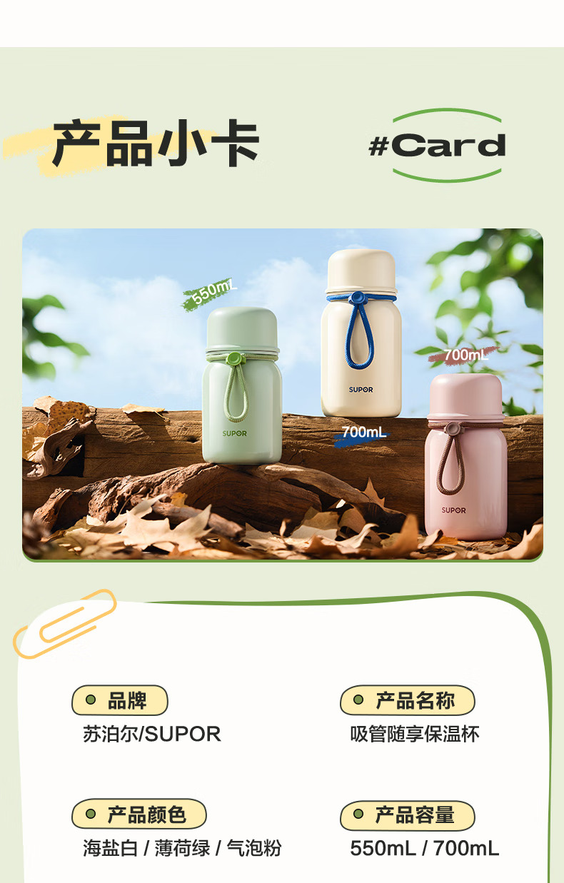 SUPOR苏泊尔苏泊尔吸管随享保温杯KCV70BJ10气泡粉700mL.