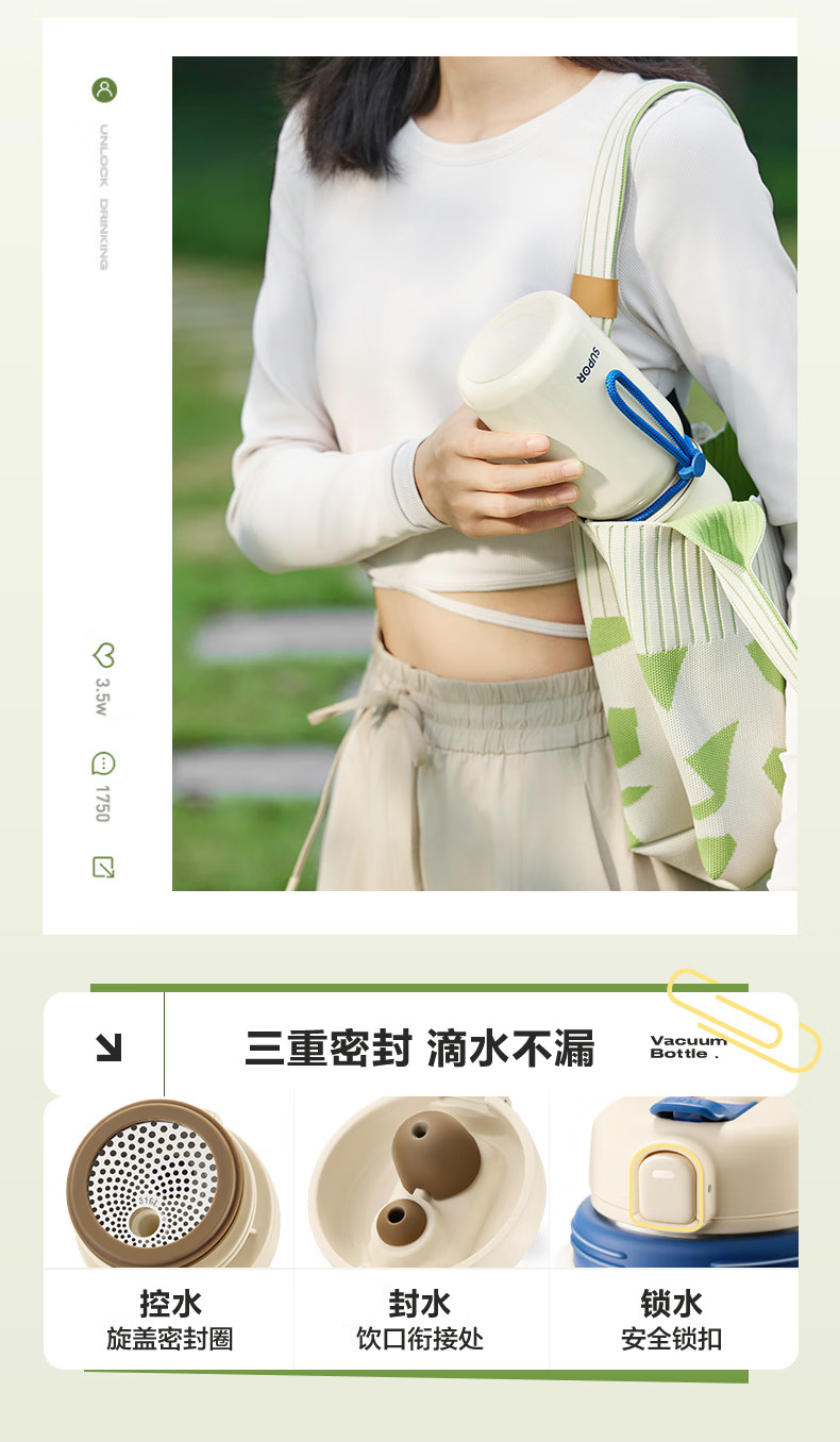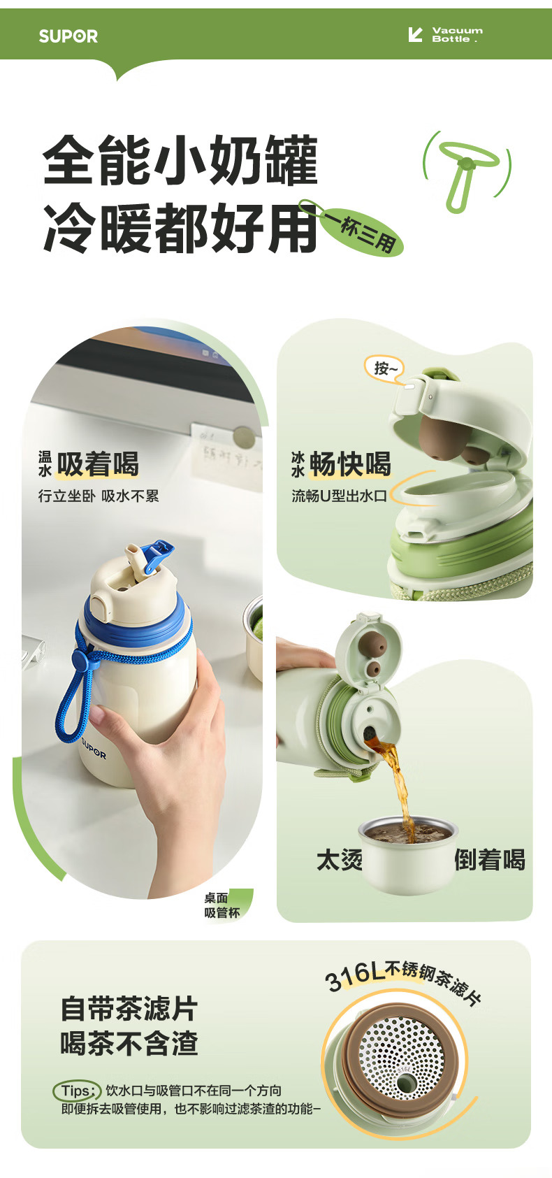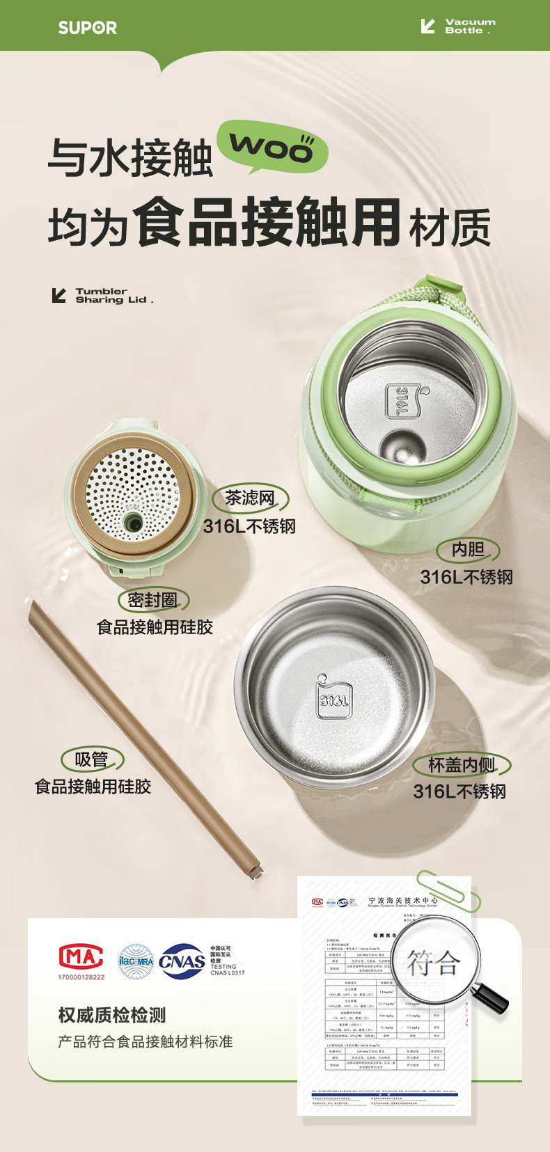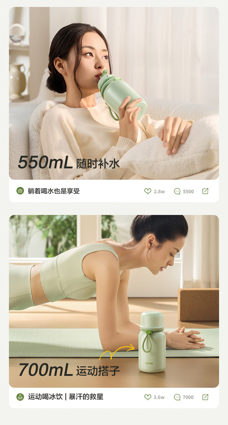 SUPOR苏泊尔苏泊尔吸管随享保温杯KCV70BJ10气泡粉700mL.