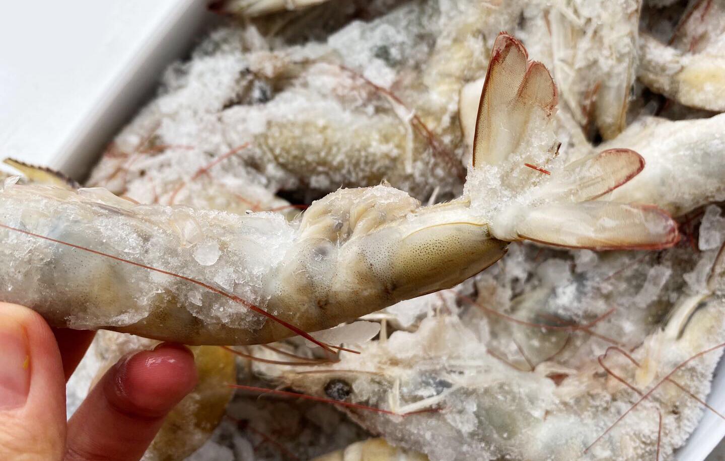 我们的虾表面有一些海盐颗粒~只有这样极速冷冻的状态,才能更好的保证虾的新鲜程度~更好的锁住它的营养!