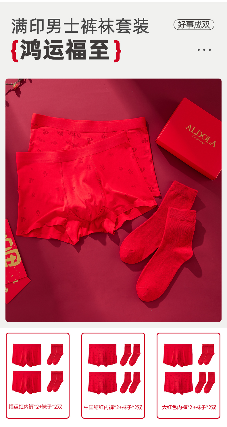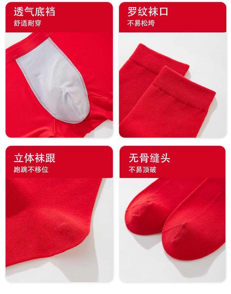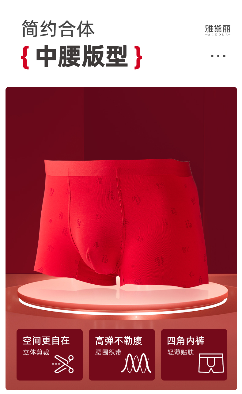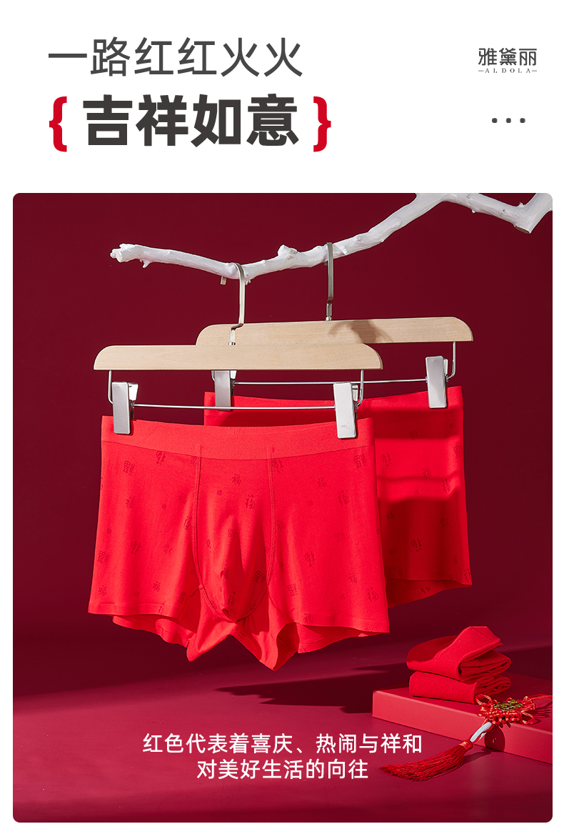 雅黛丽红色内裤男生本命年无痕舒适平角裤袜子大码四角短裤2024