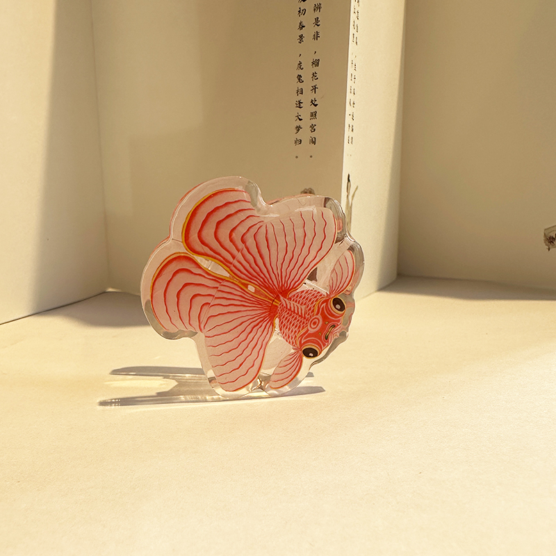 金鱼谐音“金玉”,寓意吉祥。红色金鱼摆尾灵动,栩栩如生。