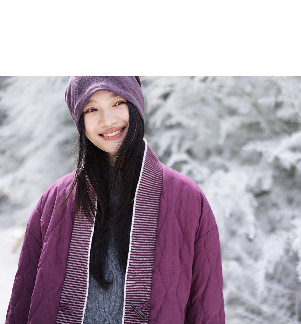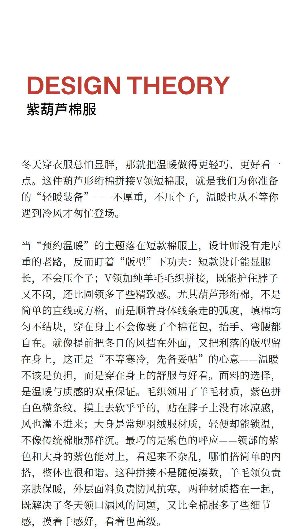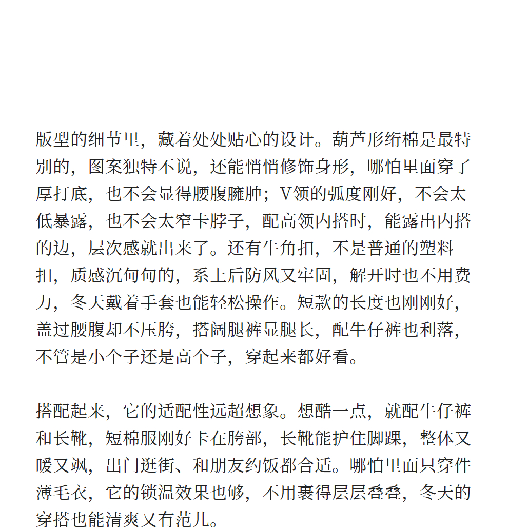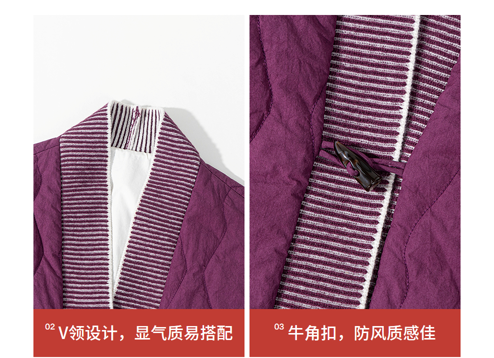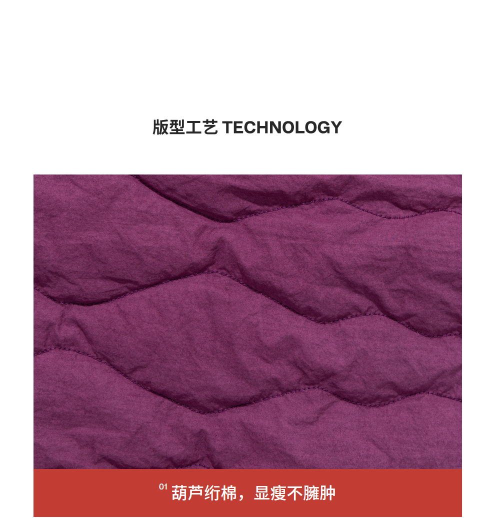绽放736朵/紫葫芦棉服·葫芦形绗棉毛织拼接v领短棉衣新款厚外套