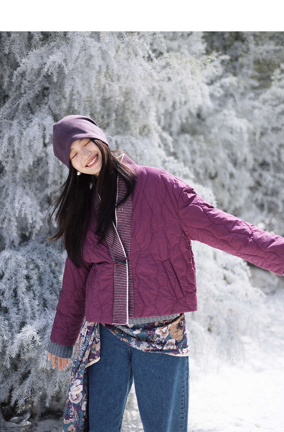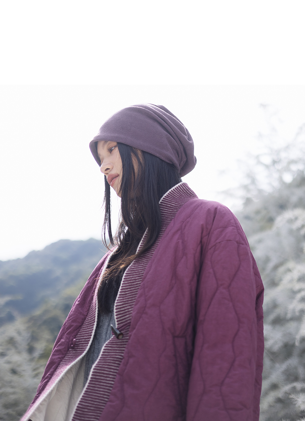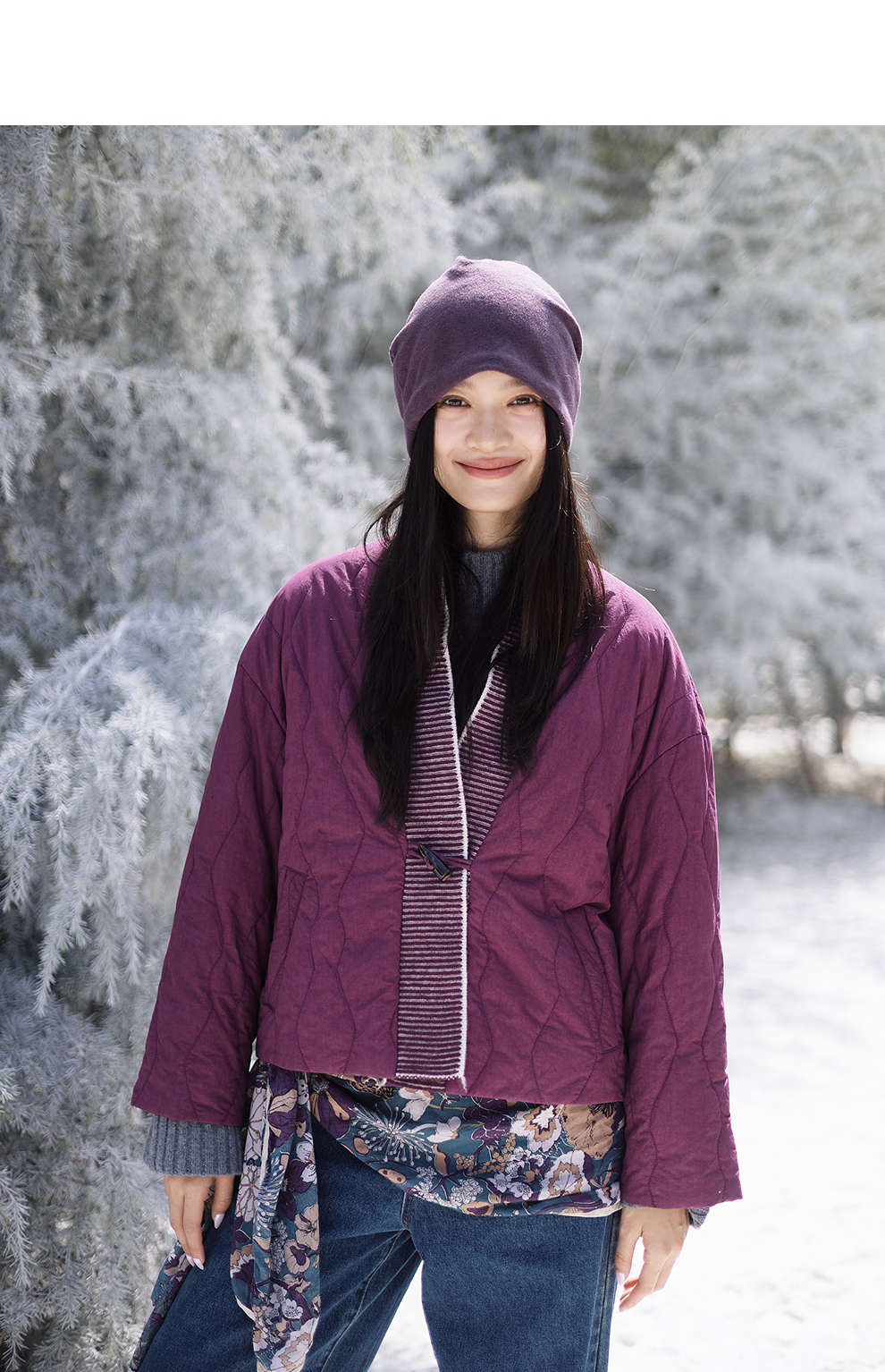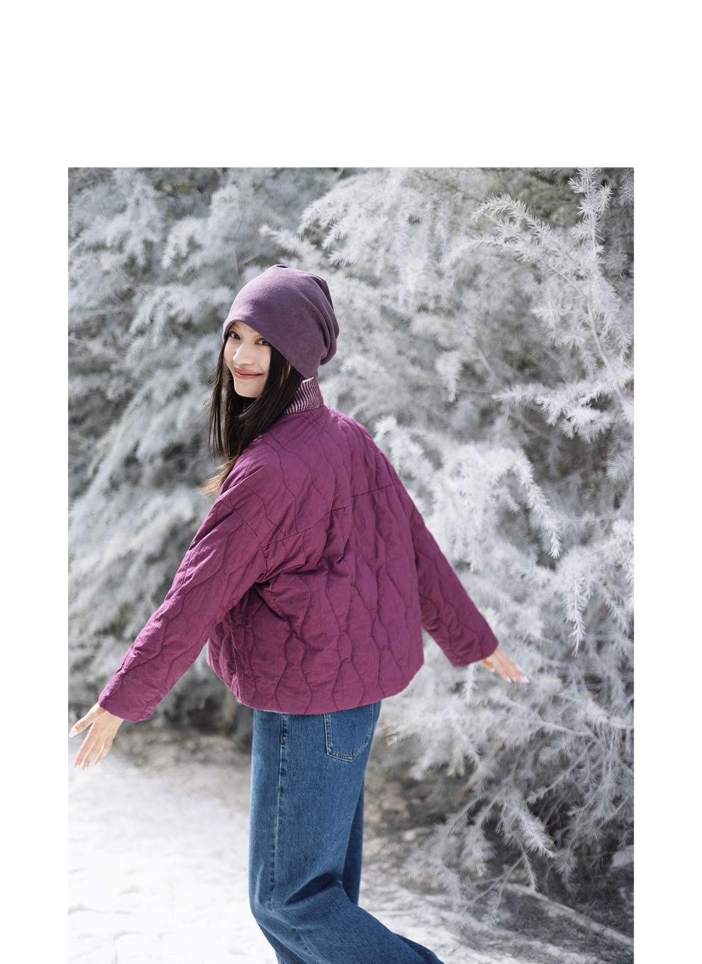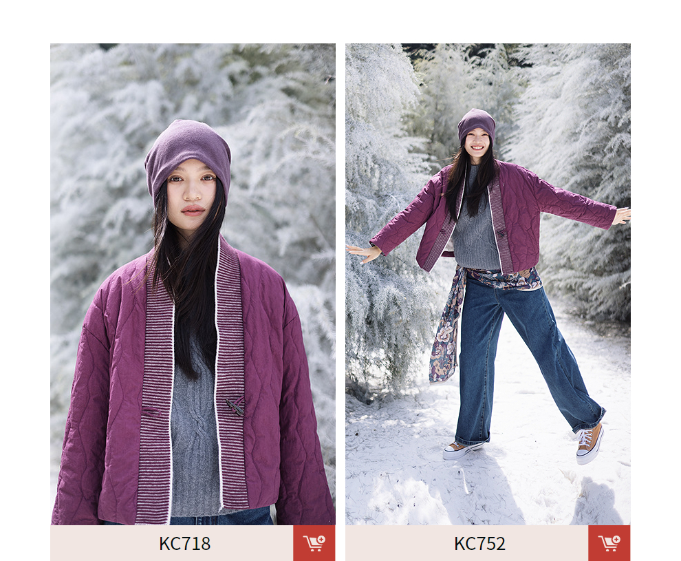 绽放736朵/紫葫芦棉服·葫芦形绗棉毛织拼接v领短棉衣新款厚外套