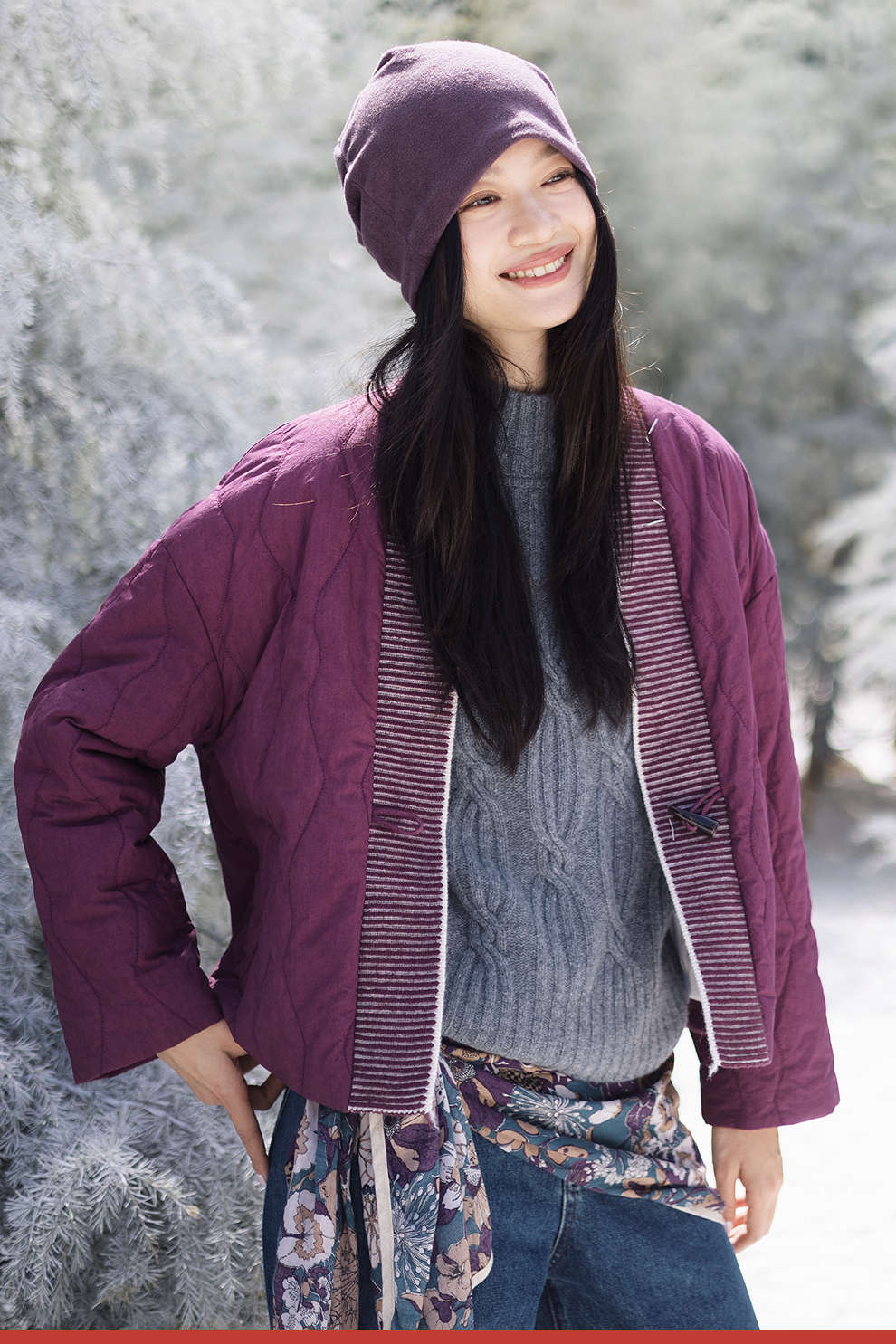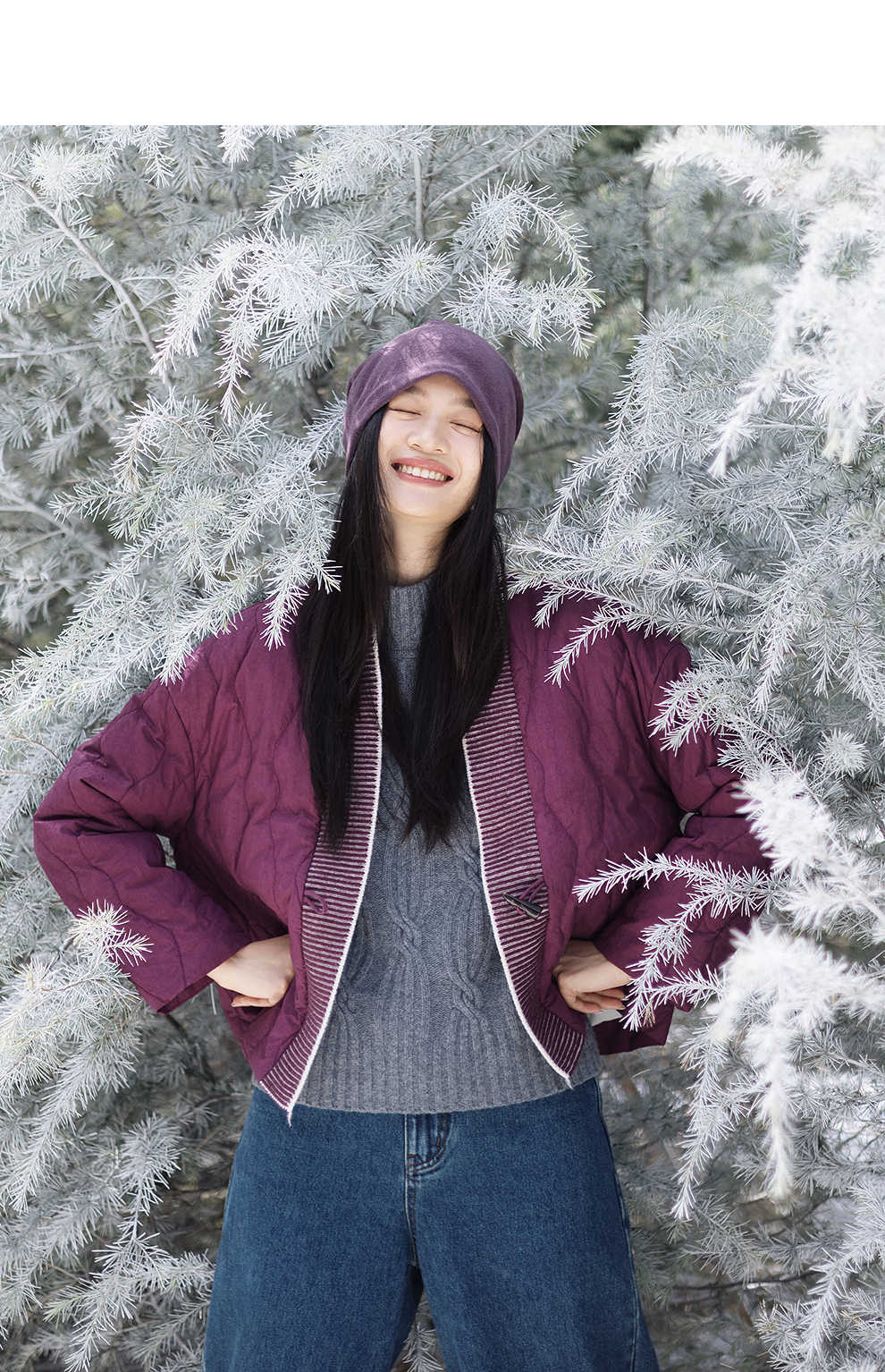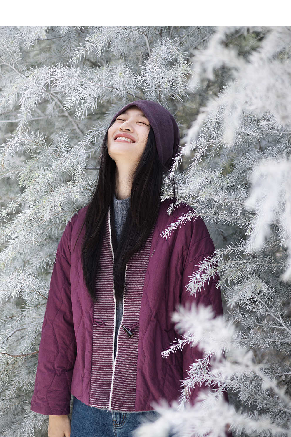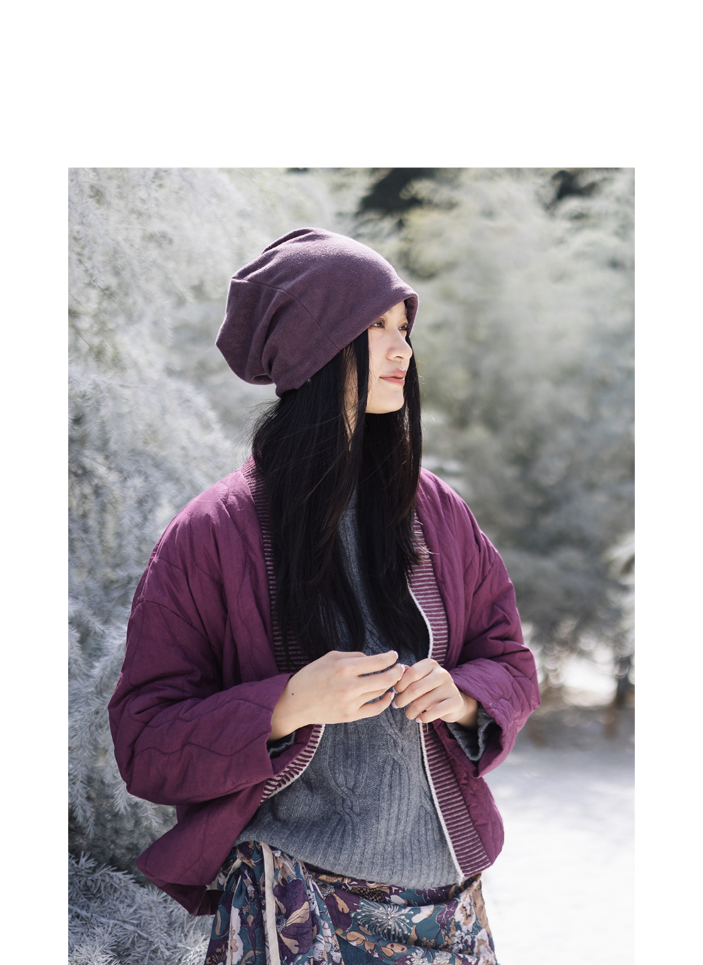 绽放736朵/紫葫芦棉服·葫芦形绗棉毛织拼接v领短棉衣新款厚外套