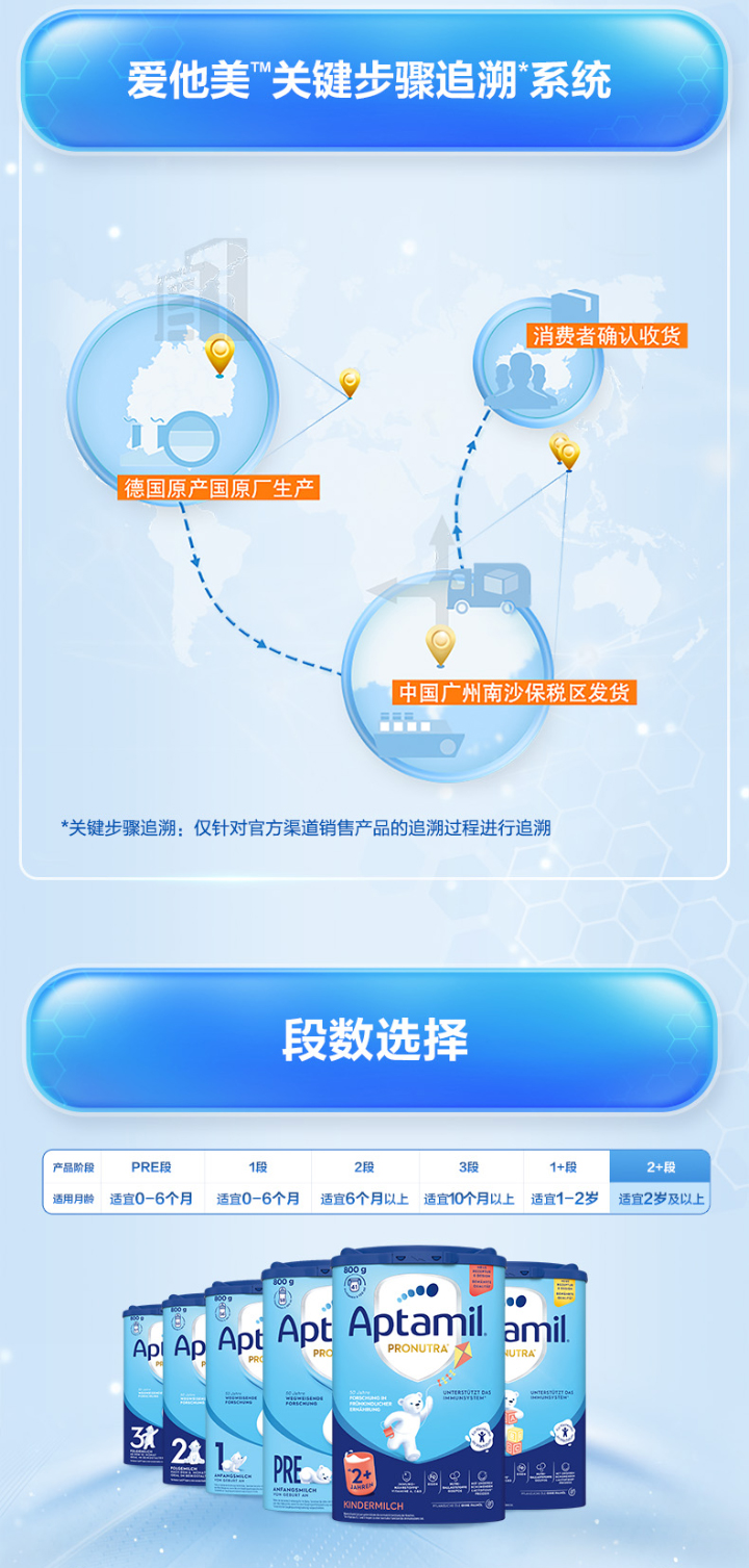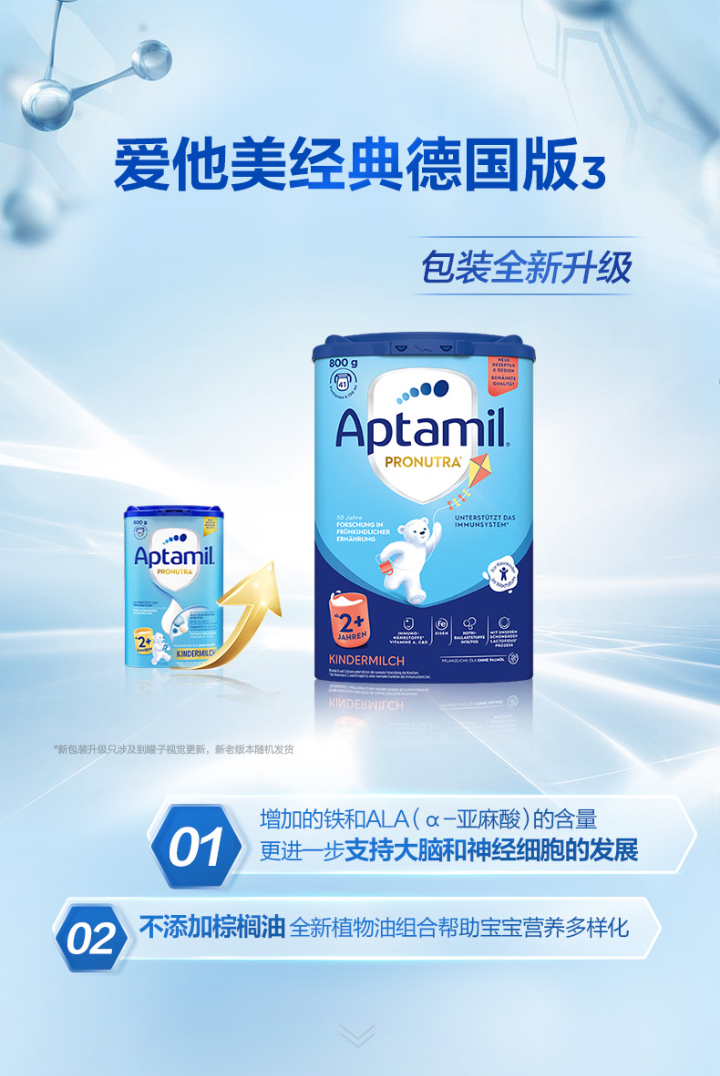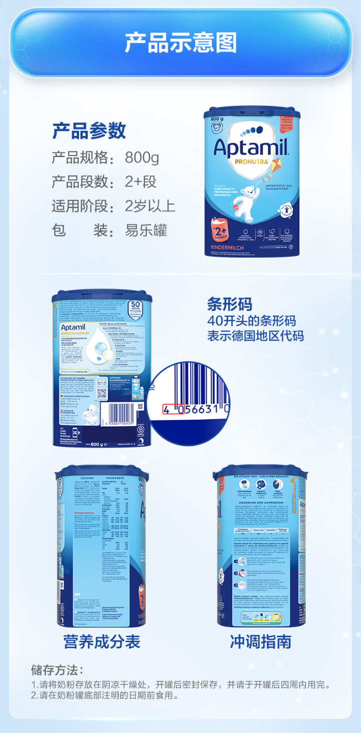 [极速送达]德国 爱他美(Aptamil)婴儿配方奶粉易乐罐蓝罐 800g 2+段
