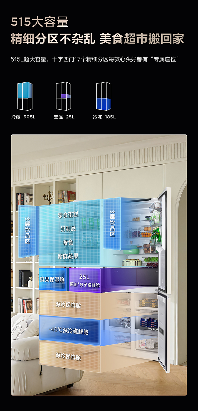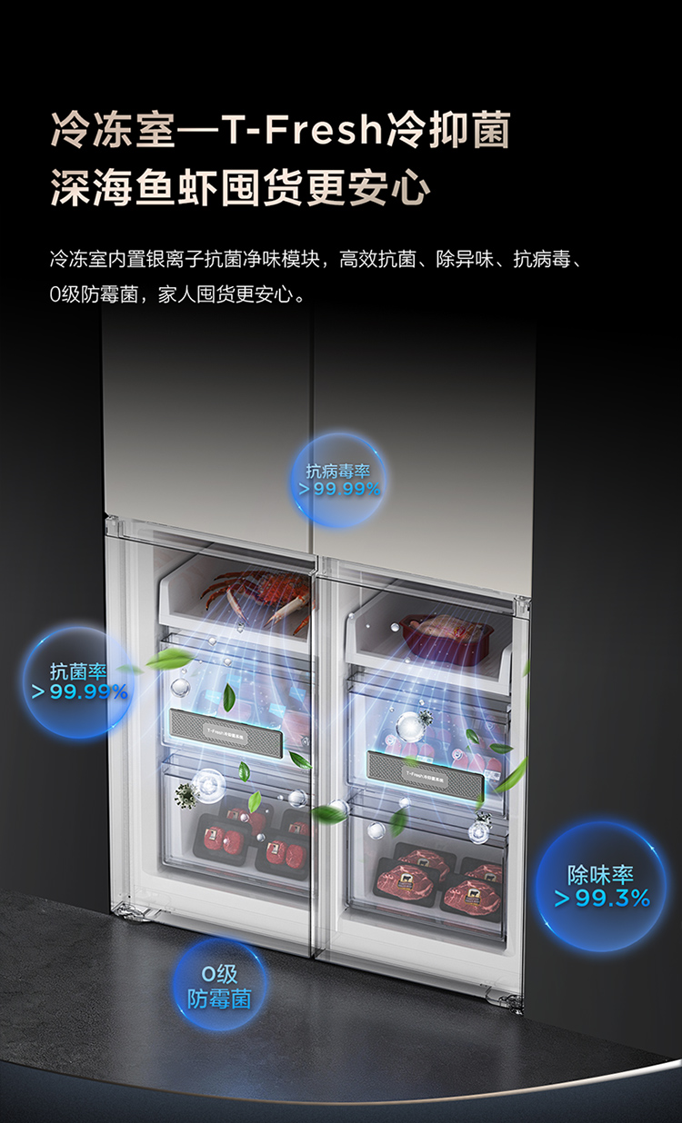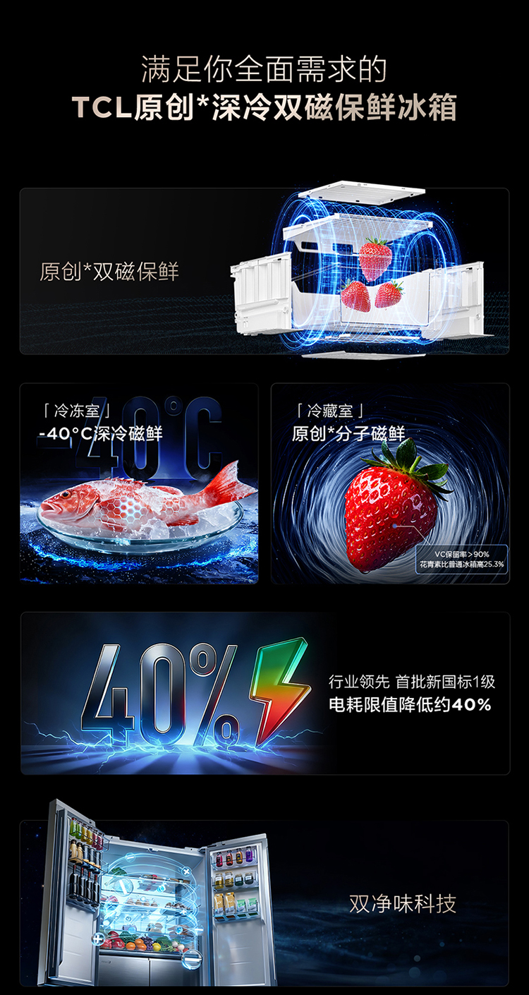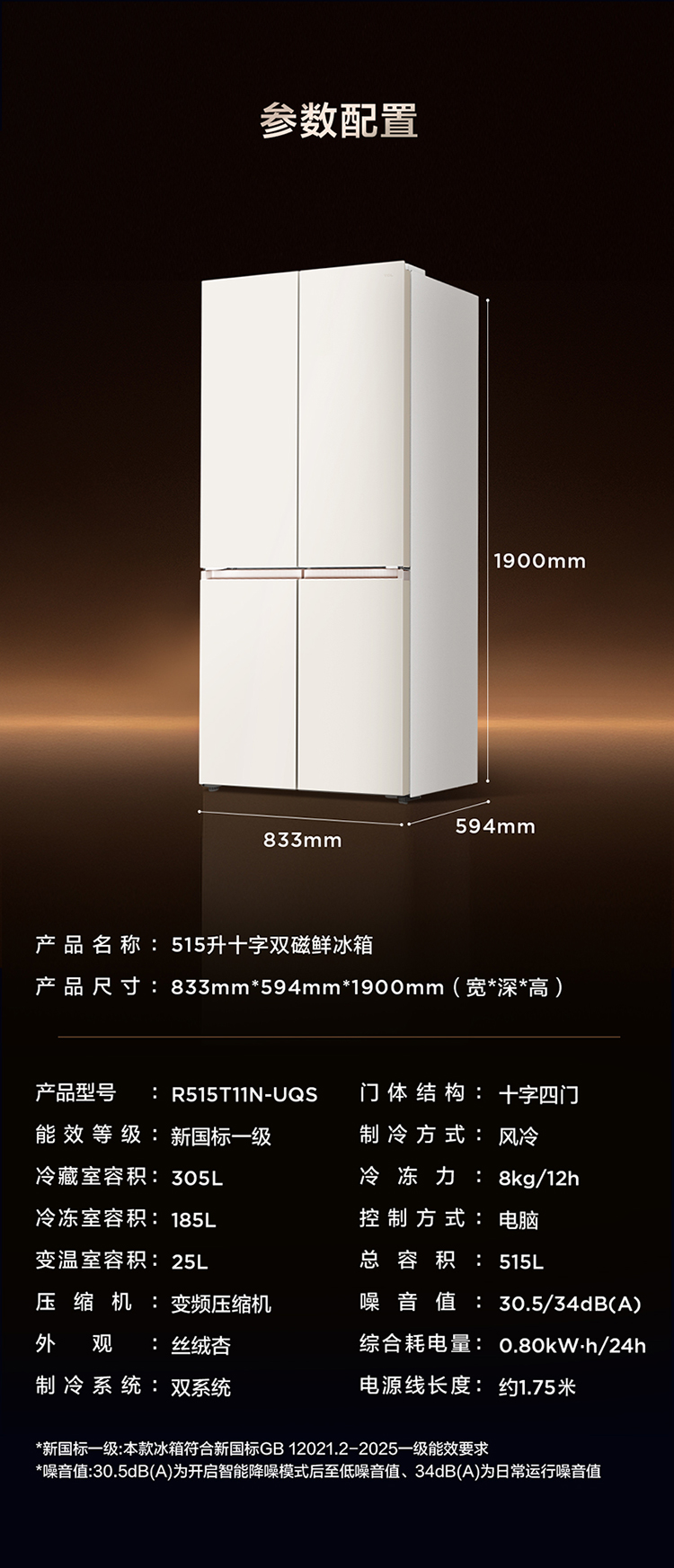 【新品上市】TCL 双磁鲜515升十字门深冷磁鲜双系统双净味零嵌冰箱新一级R515T11N-UQS