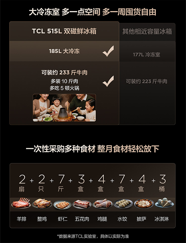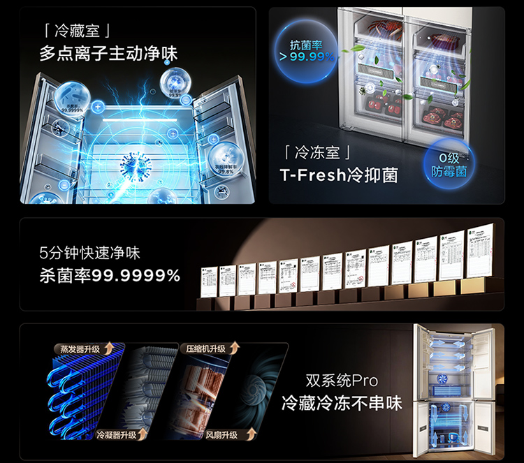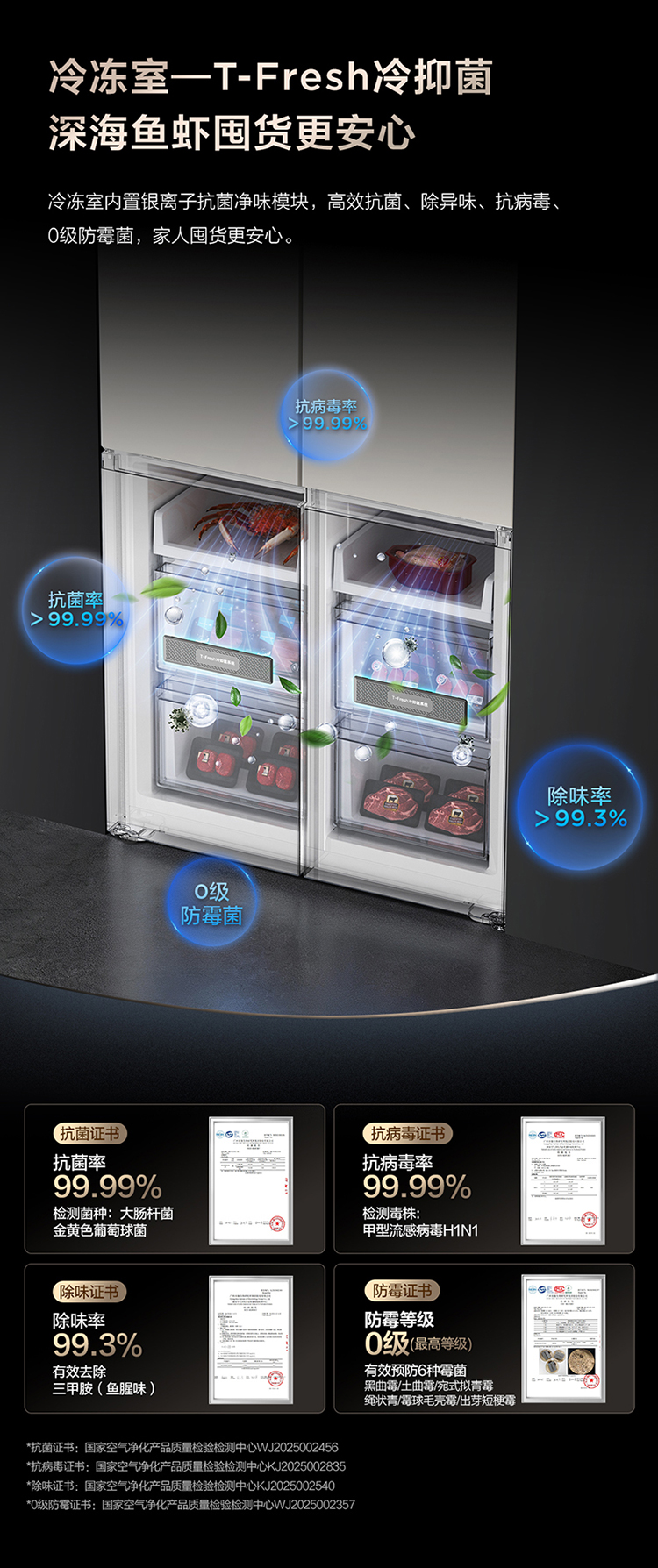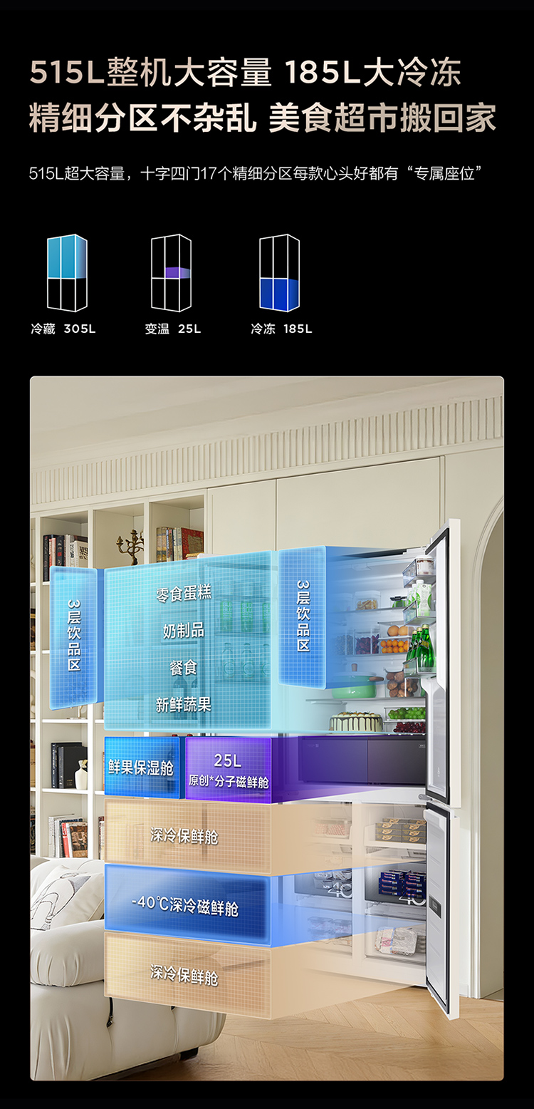 【新品上市】TCL 双磁鲜515升十字门深冷磁鲜双系统双净味零嵌冰箱新一级R515T11N-UQS
