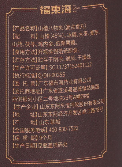 福东海山楂八物丸鸡内金丸宝宝不爱吃饭儿童茯苓山药山楂膏零食消