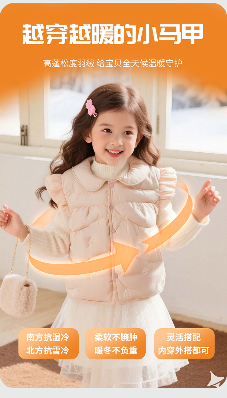 贝贝怡秋冬女童羽绒马甲ZB4ES004