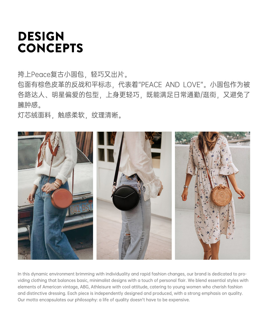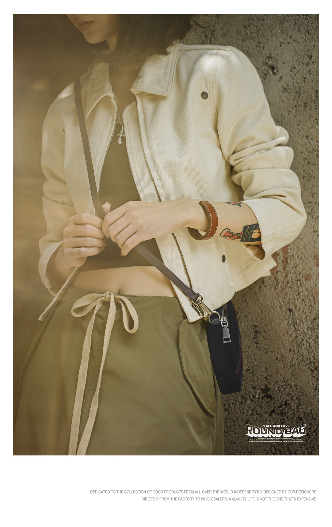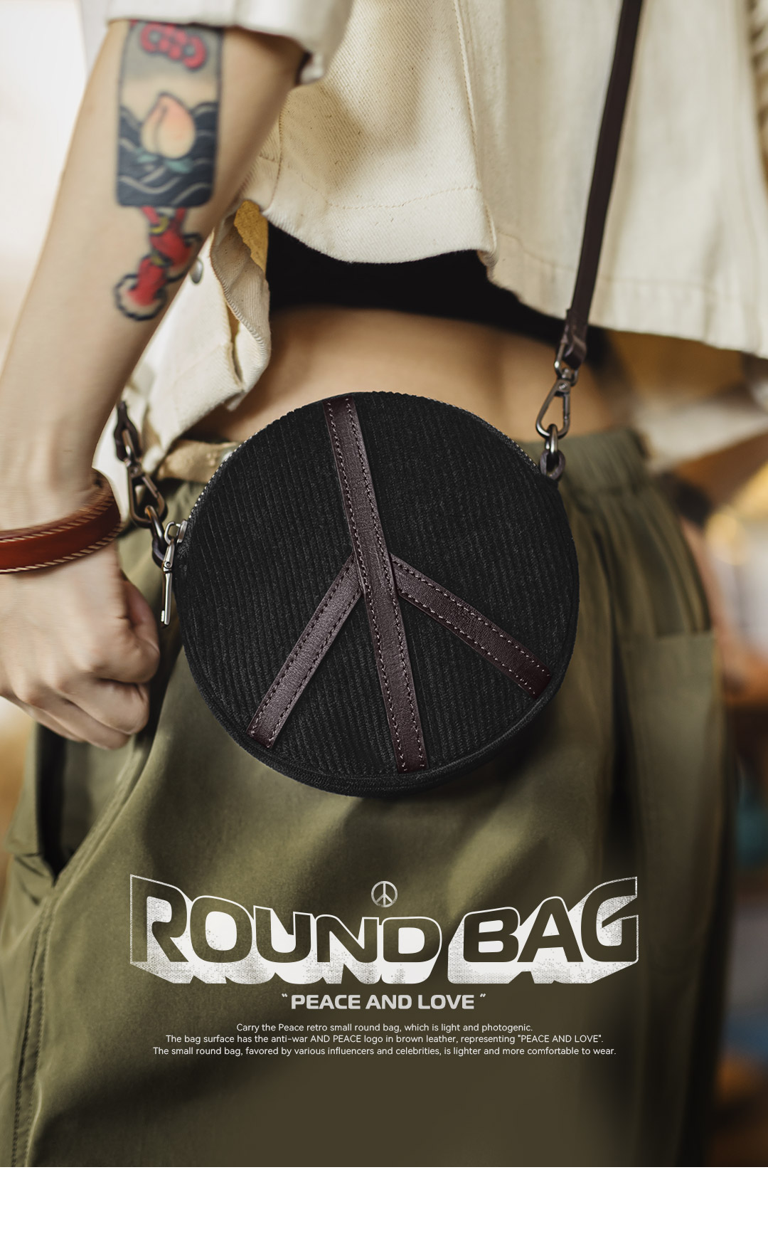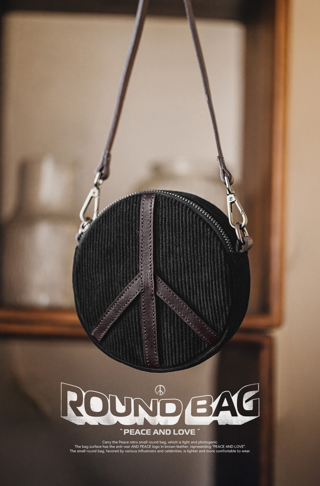马登黑色灯芯绒斜挎小型圆包超轻便迷你精致复古随身单肩包包女士