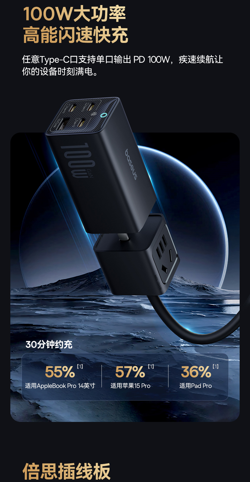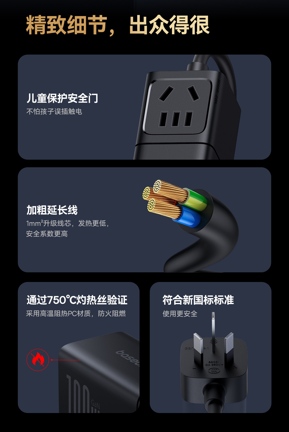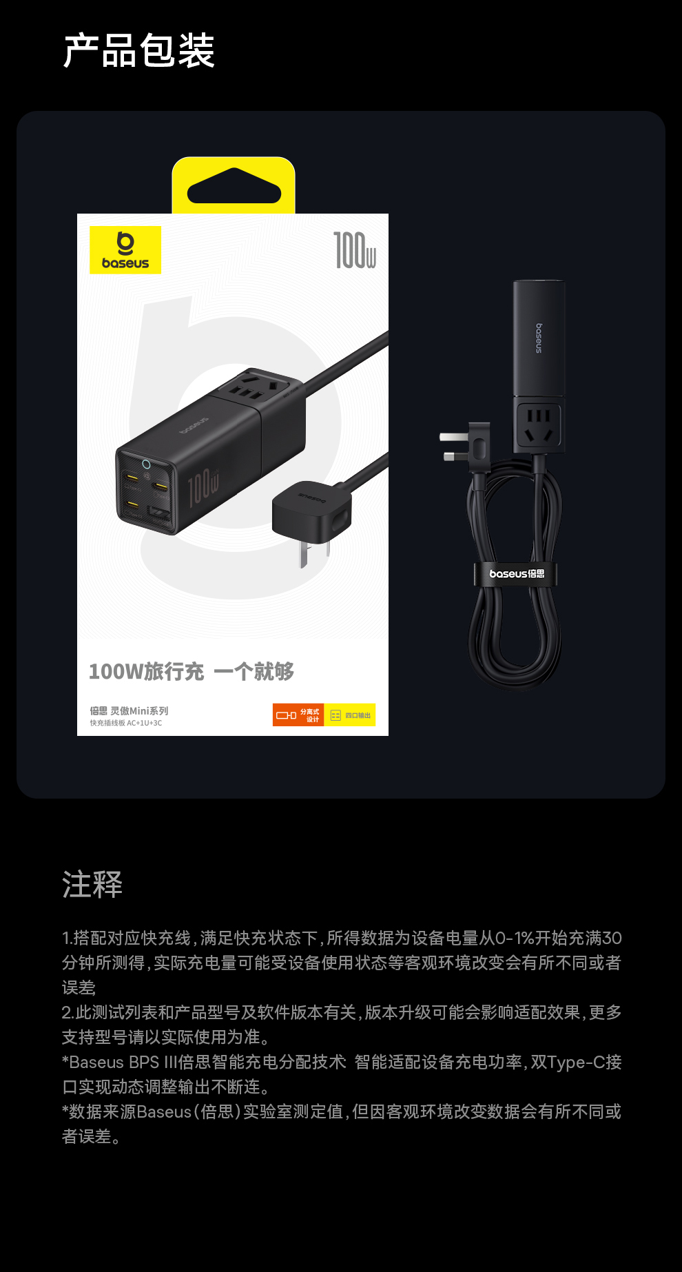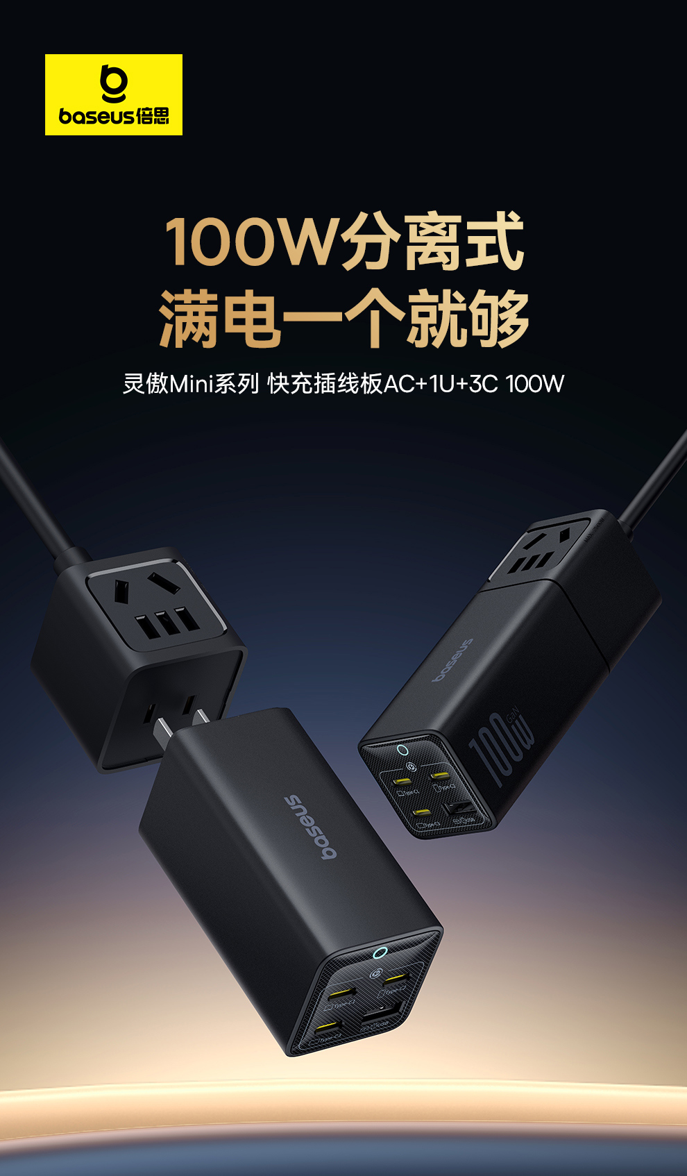 倍思 灵傲Mini系列 快充插线板 AC+1U+3C 100W