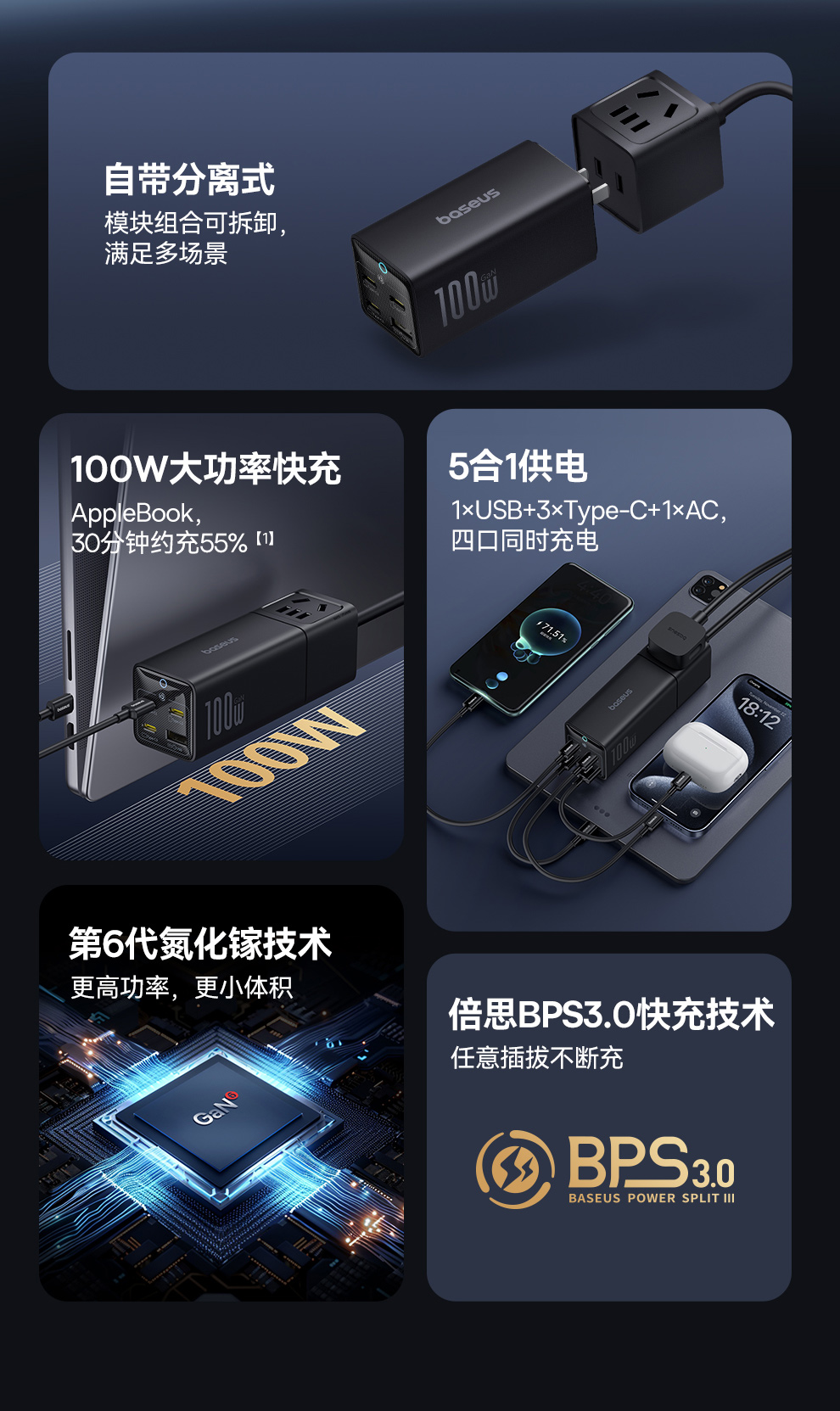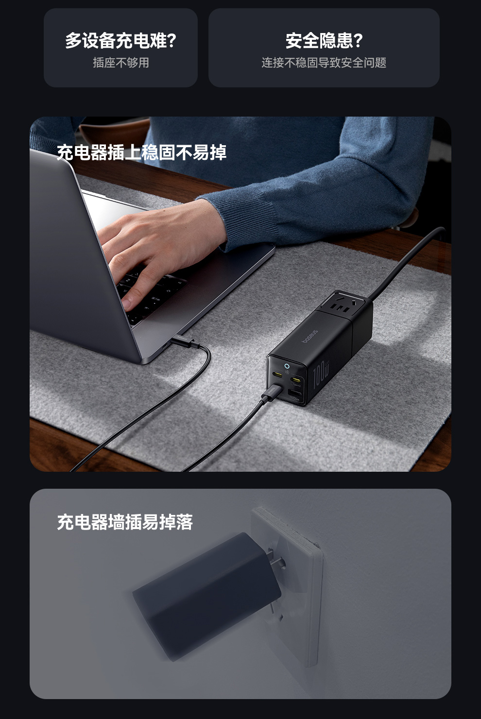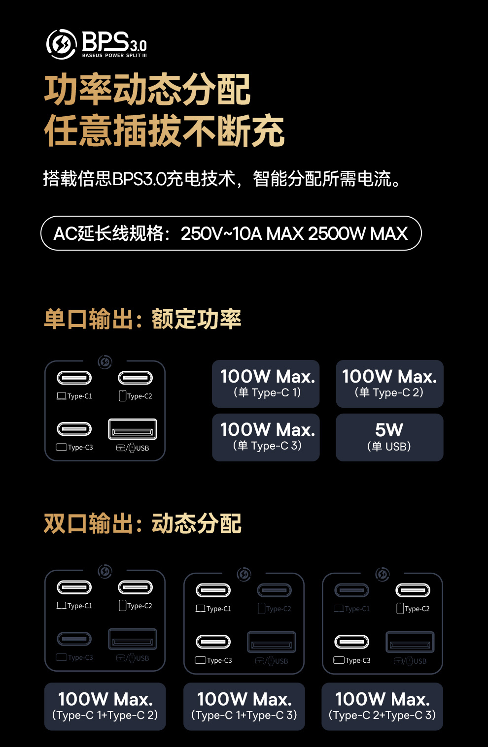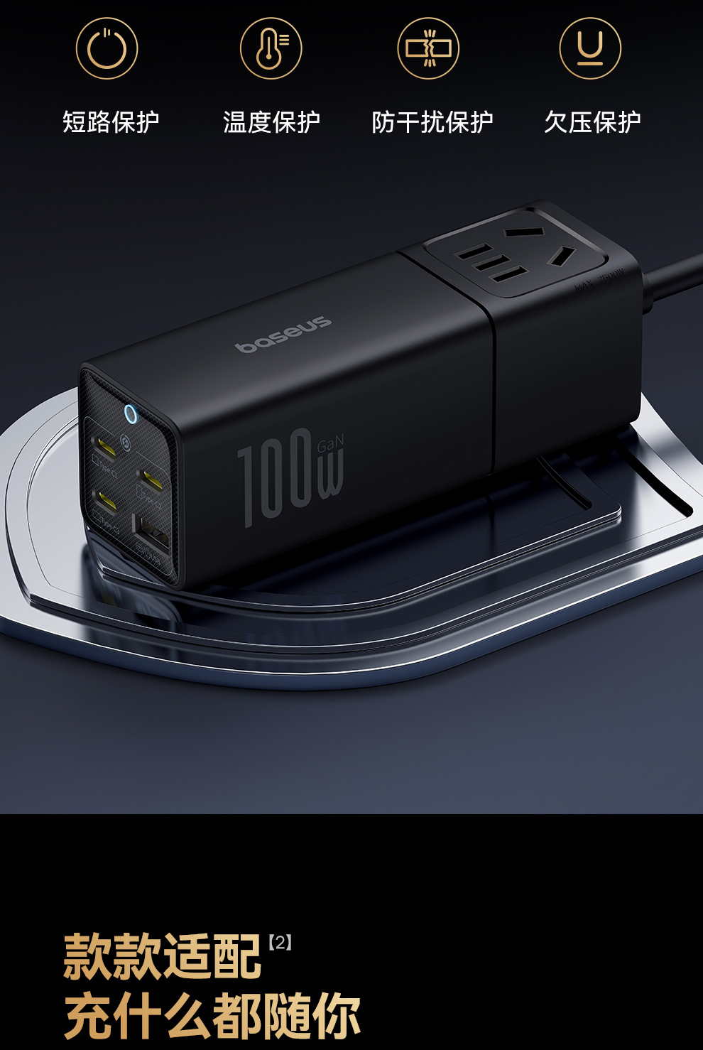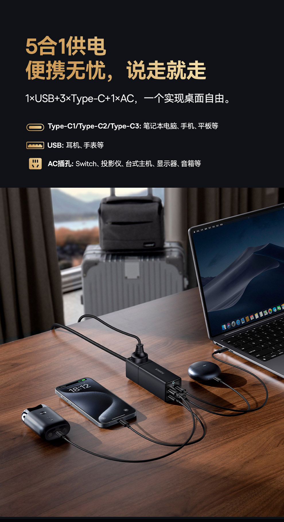 倍思 灵傲Mini系列 快充插线板 AC+1U+3C 100W