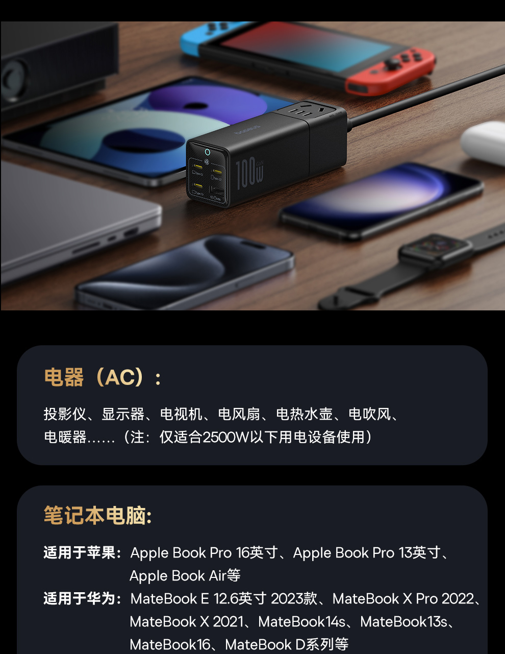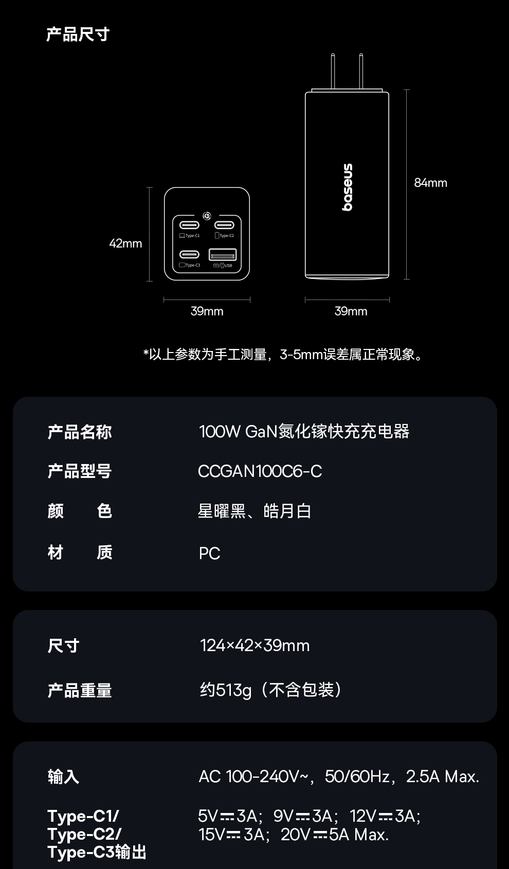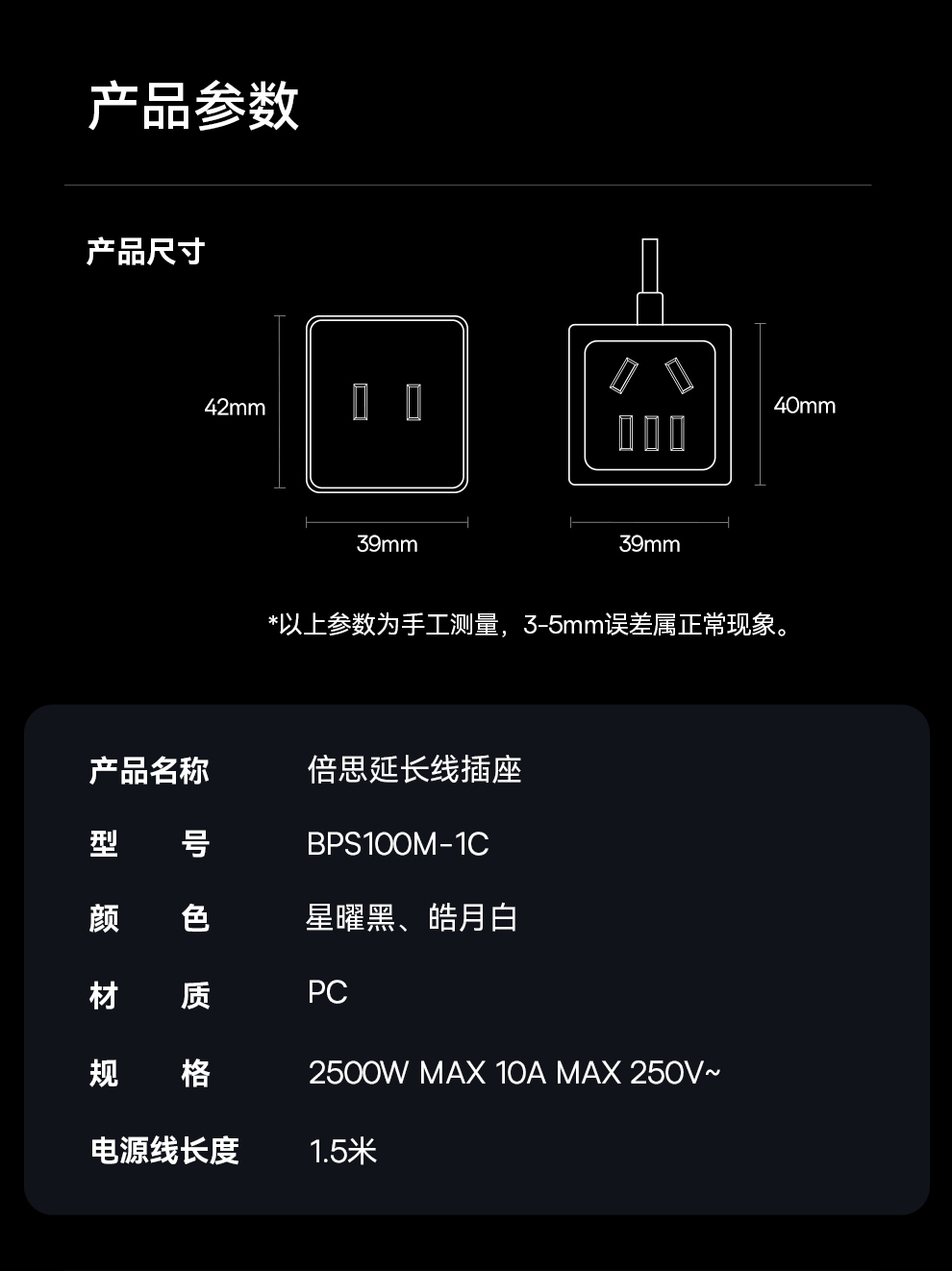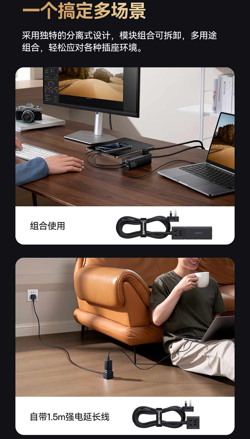 倍思 灵傲Mini系列 快充插线板 AC+1U+3C 100W