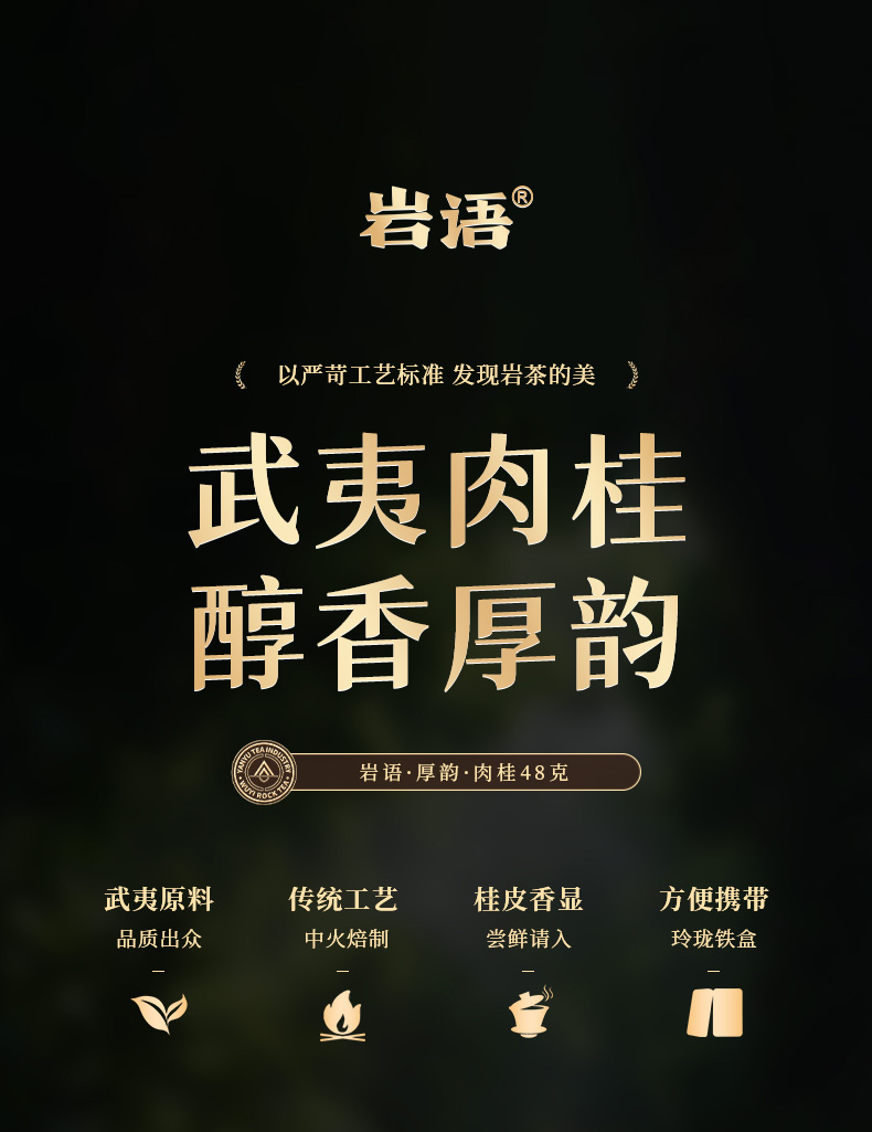 岩语 厚韵肉桂 茶叶特级武夷岩茶中火乌龙茶正宗盒装自饮口粮茶48g
