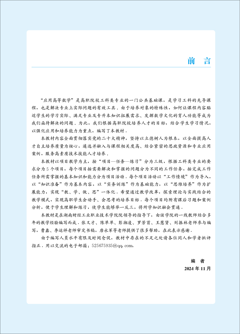 本 教 材 以 项 目 教 学 为 主 , 按 “项 目 — 任 务 — 练 习 ” 分 为 三 级 , 根 据 工 科 类 专 业 的 要