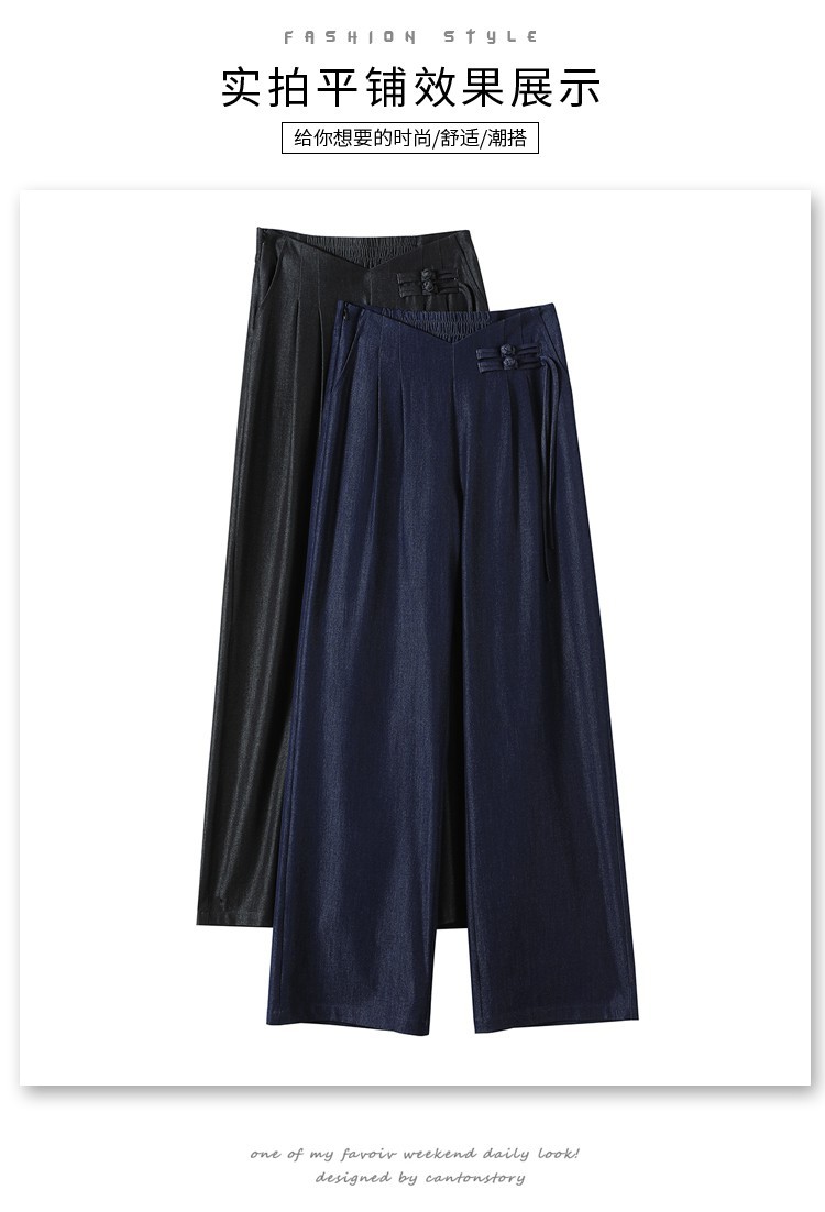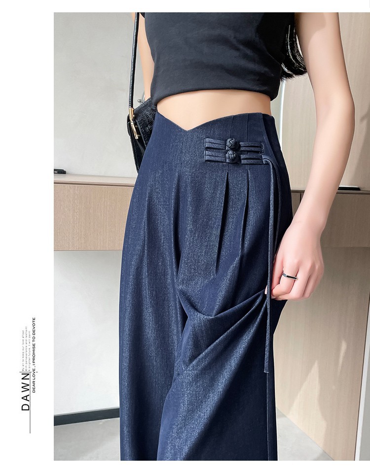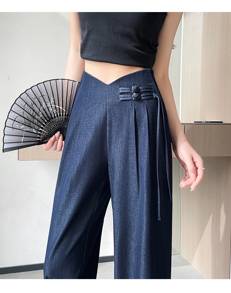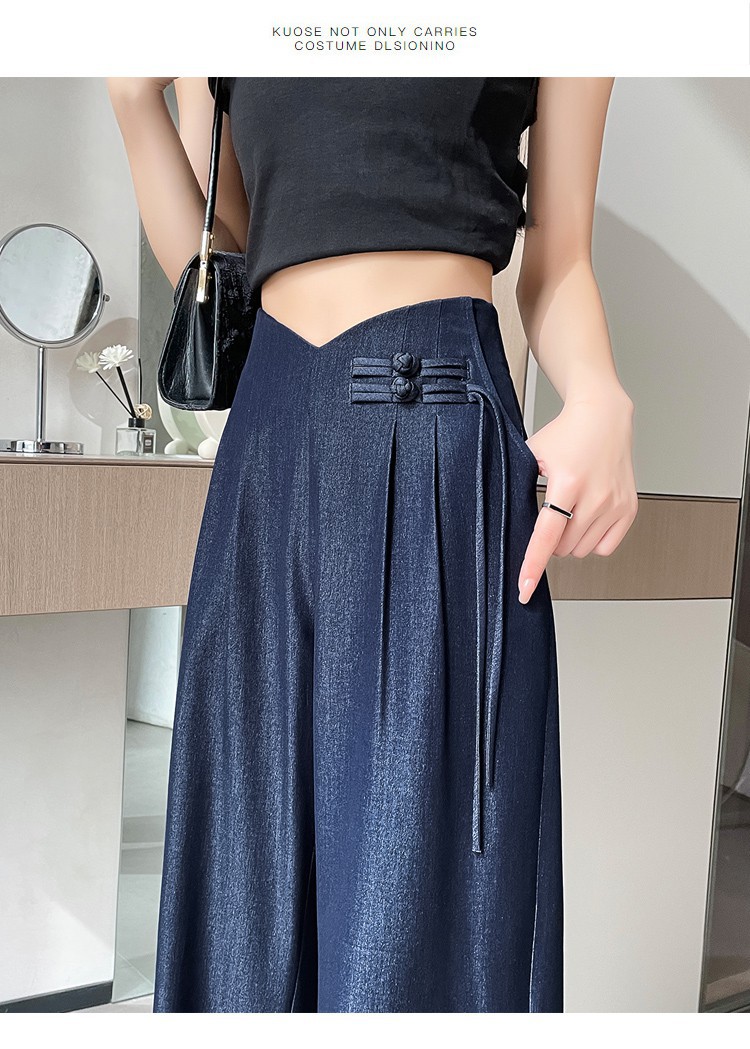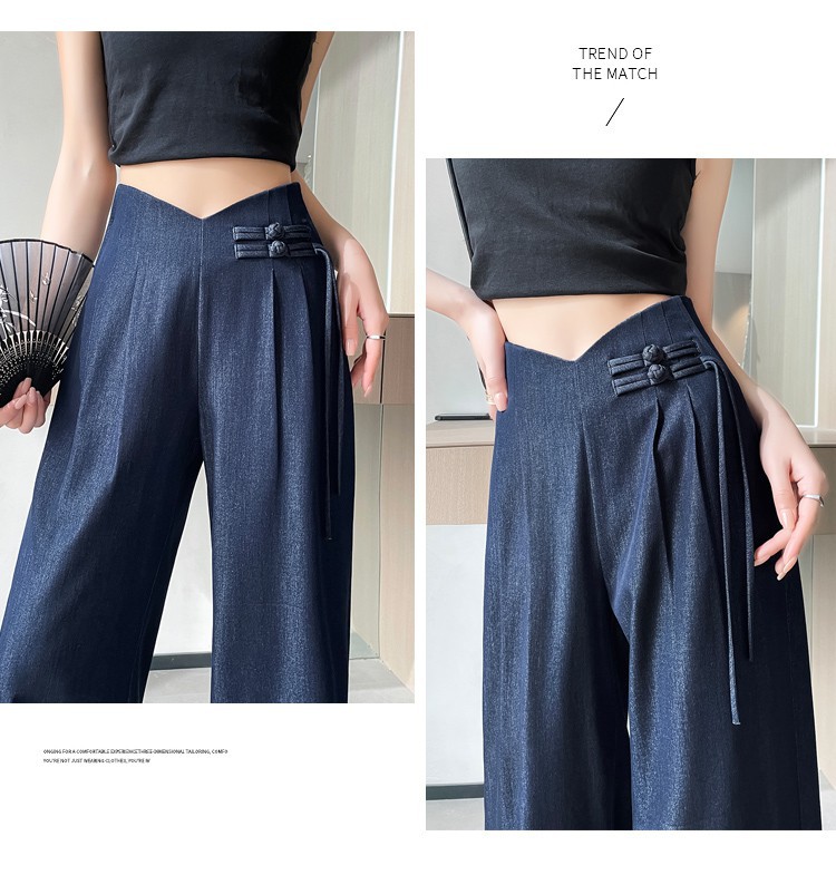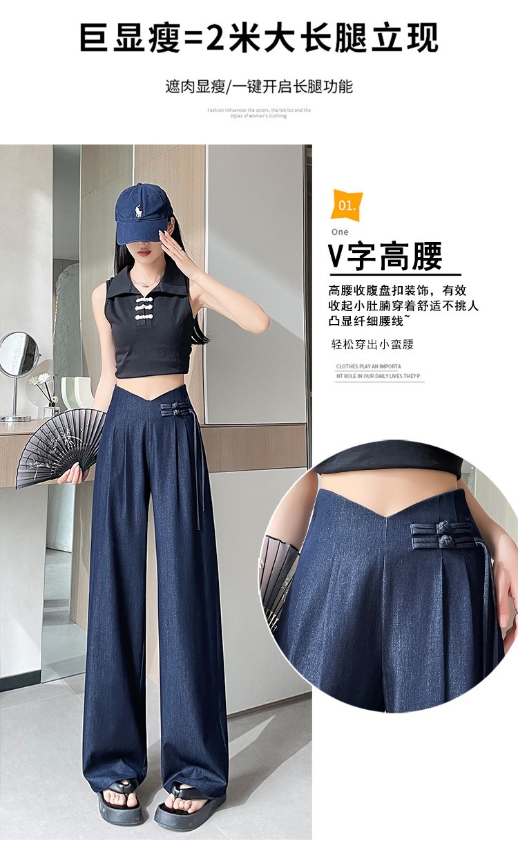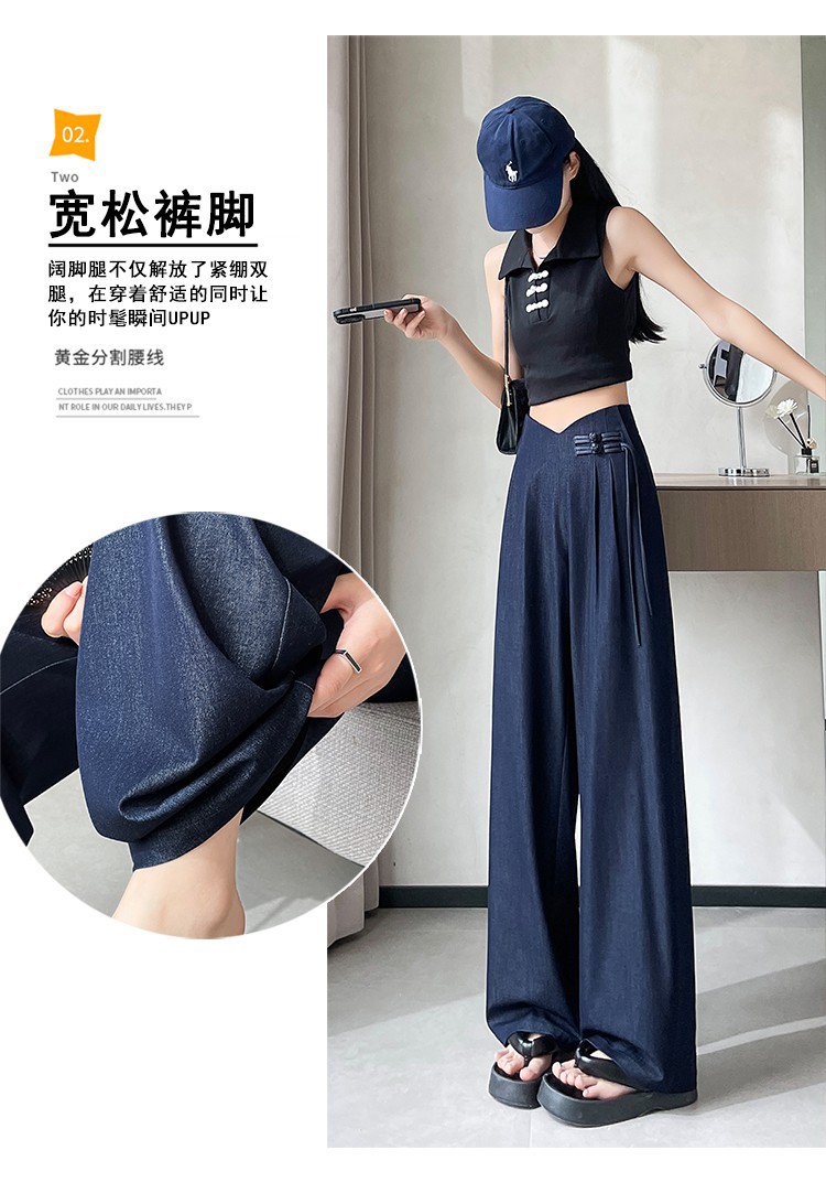 天丝牛仔阔腿裤女夏季冰丝新中式国风裤盘扣高级感垂感直筒西装裤