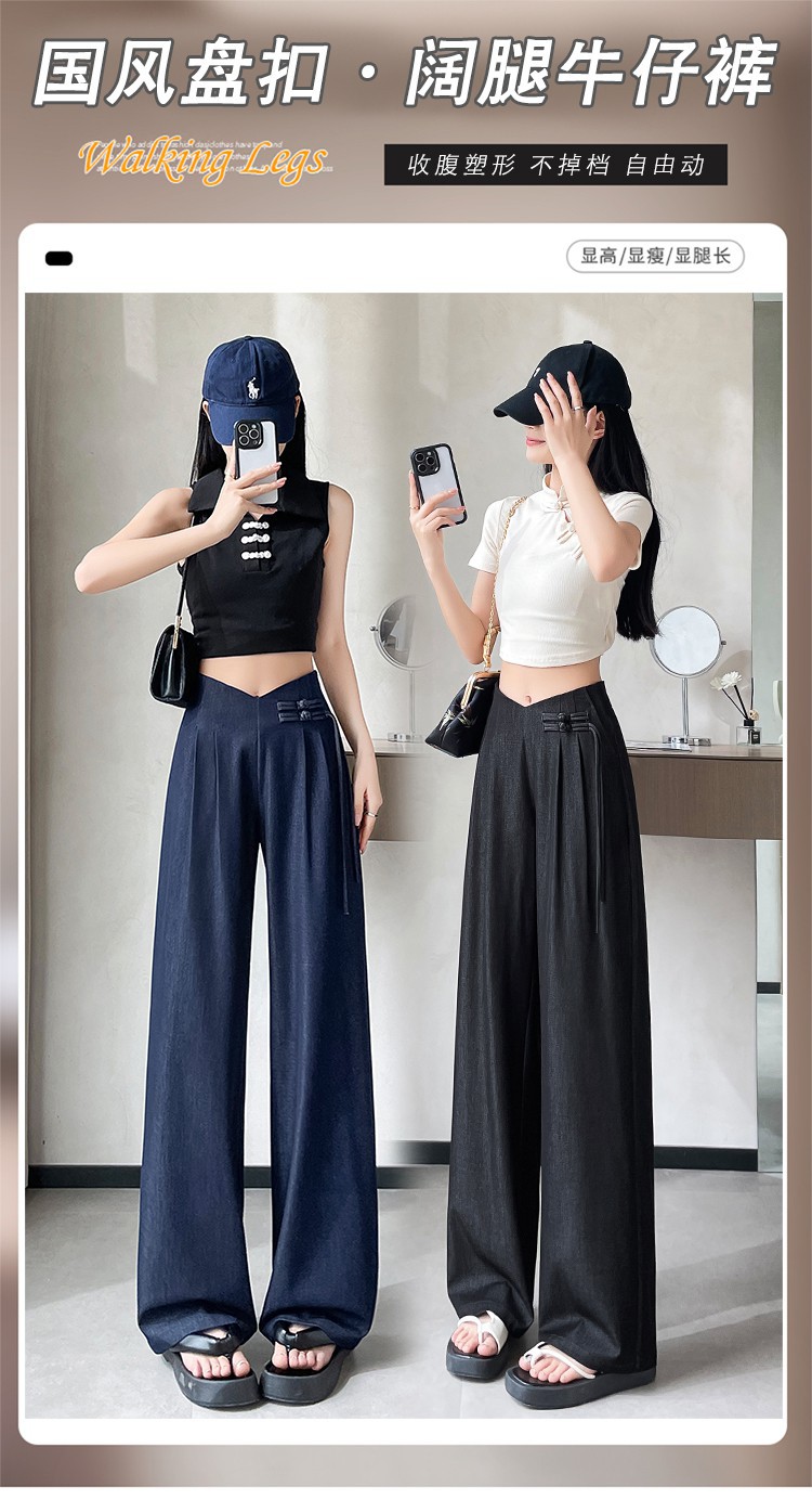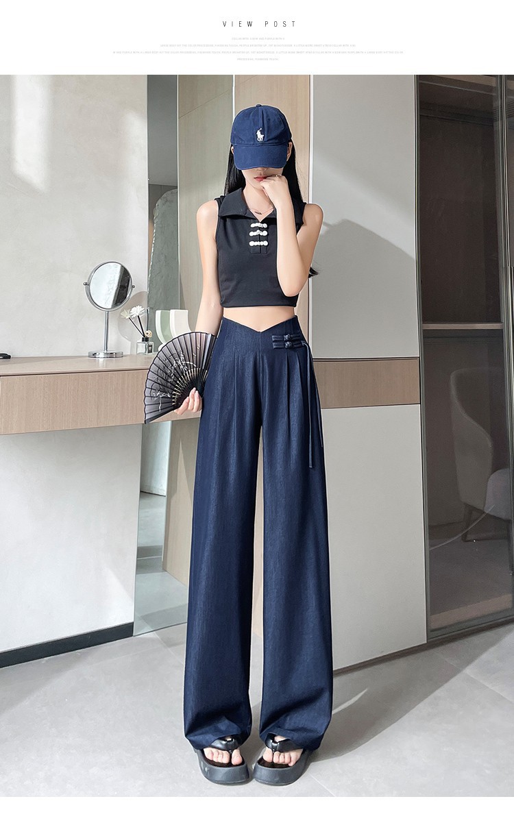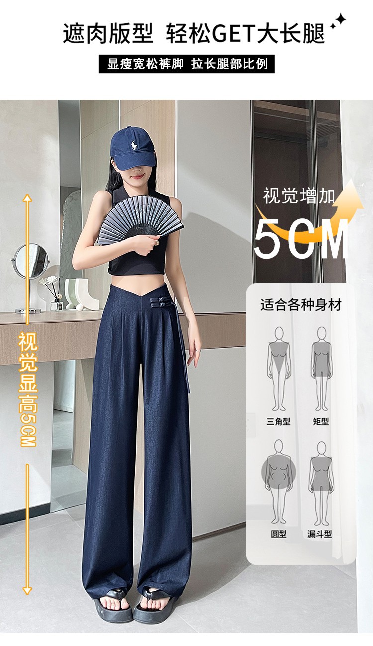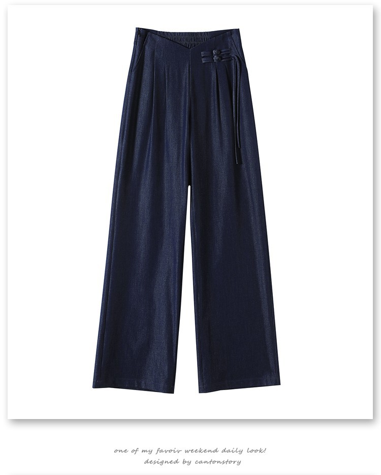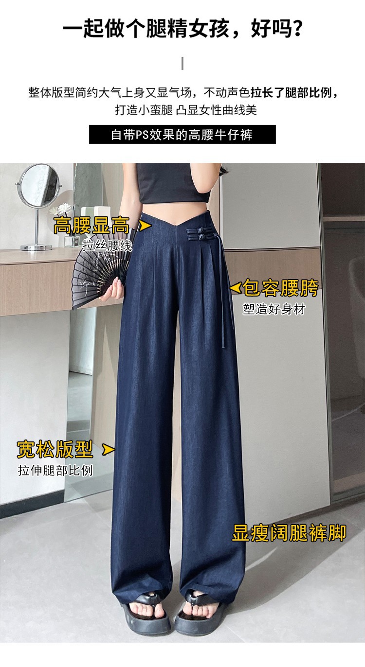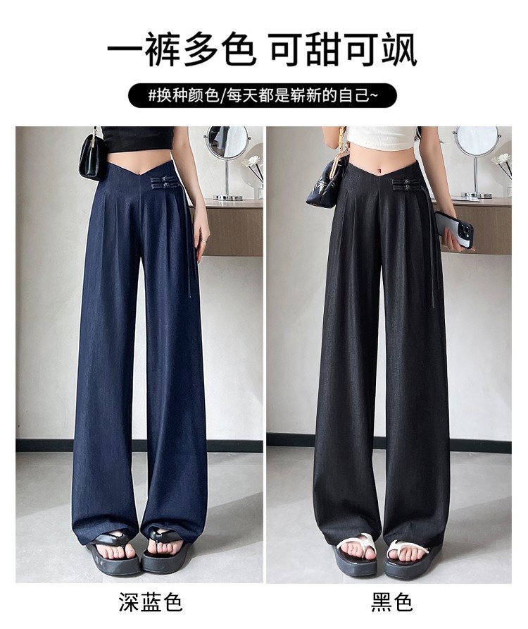 天丝牛仔阔腿裤女夏季冰丝新中式国风裤盘扣高级感垂感直筒西装裤