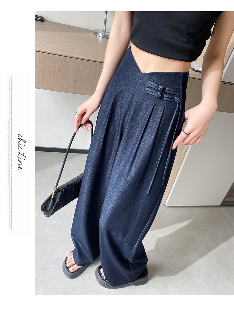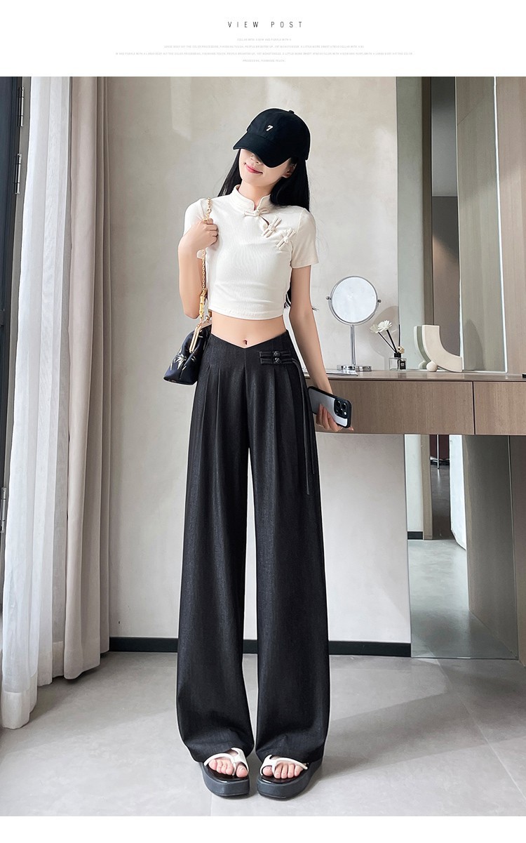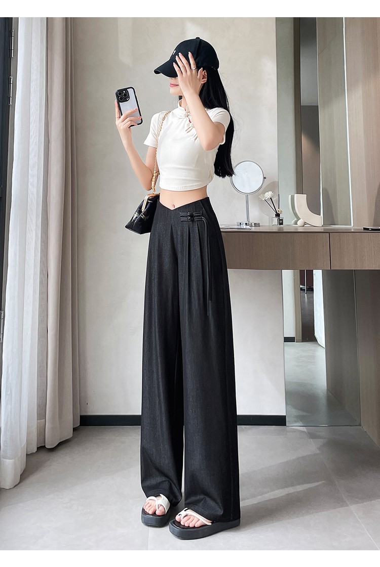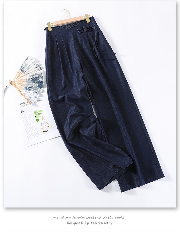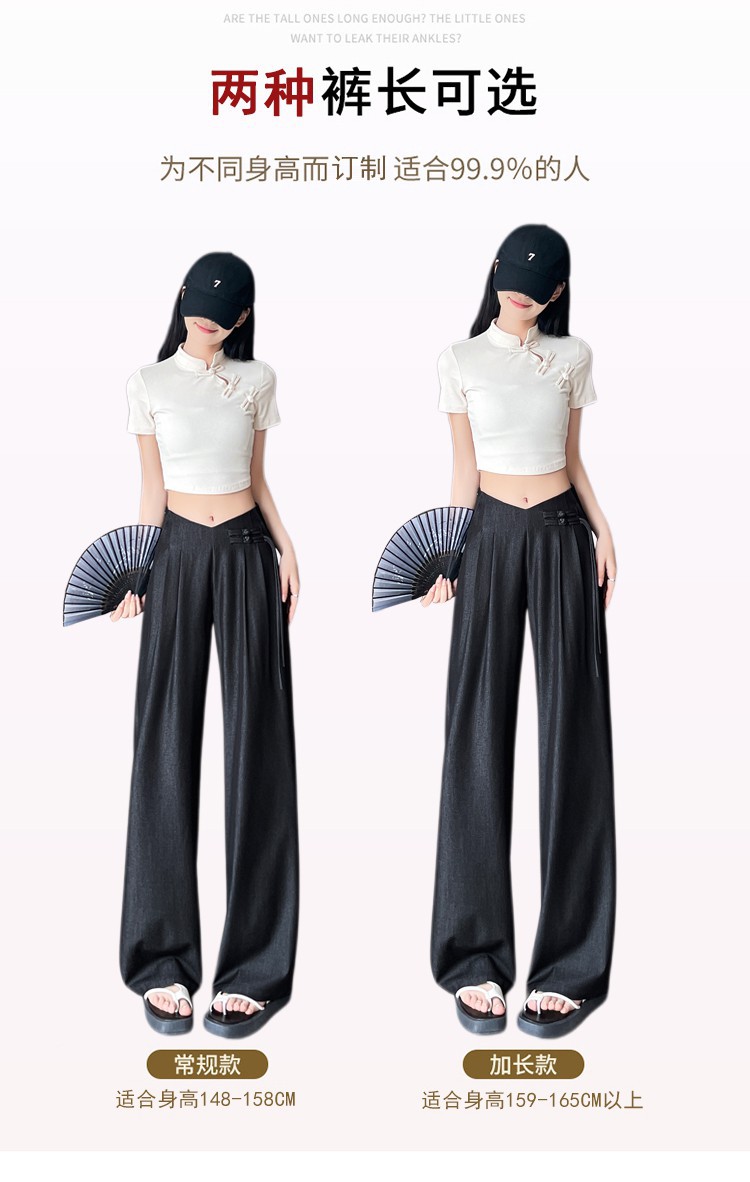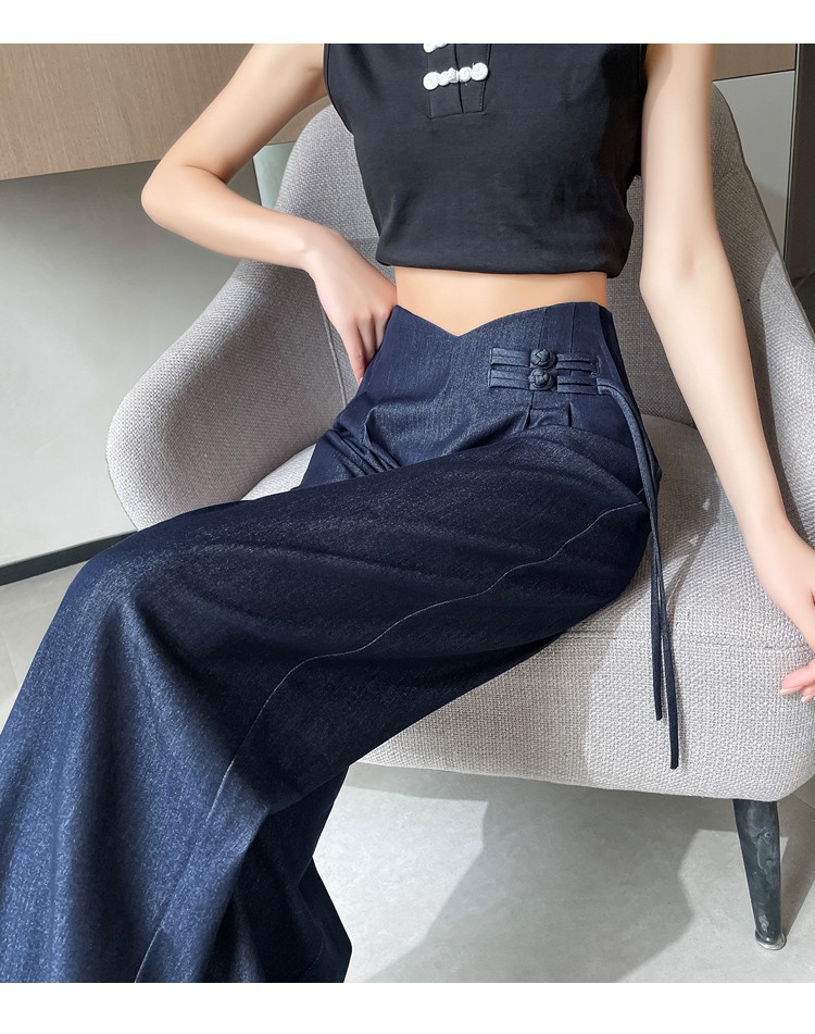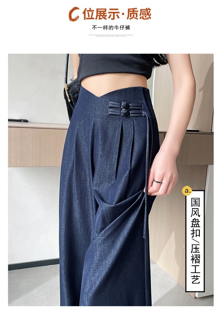 天丝牛仔阔腿裤女夏季冰丝新中式国风裤盘扣高级感垂感直筒西装裤
