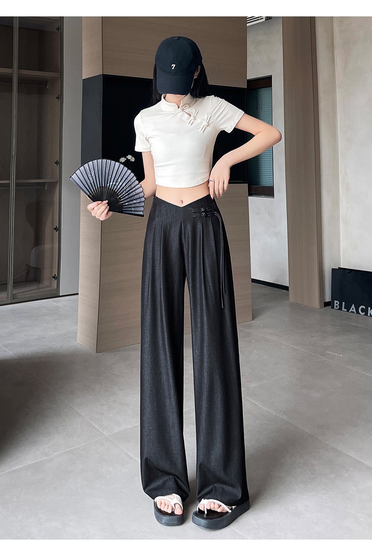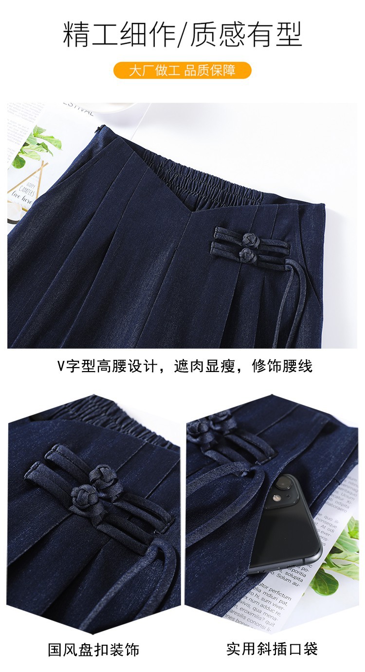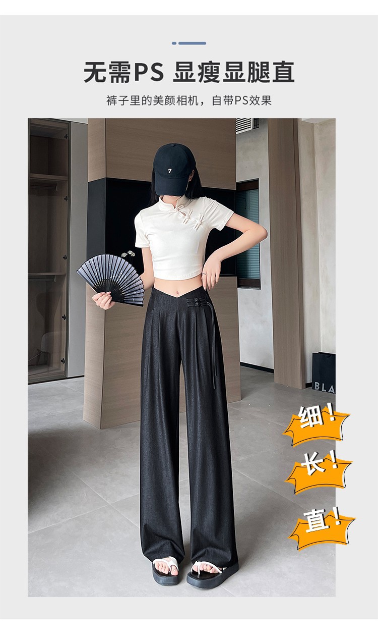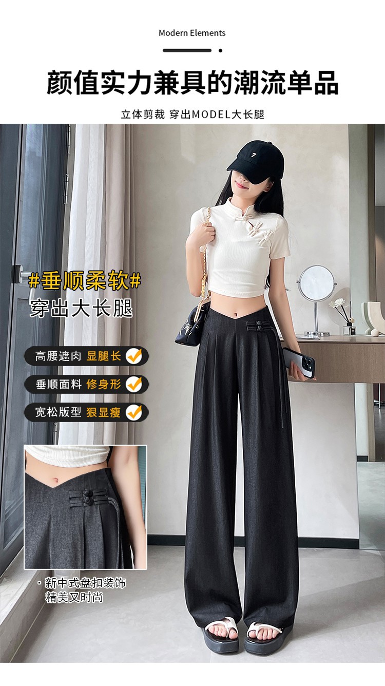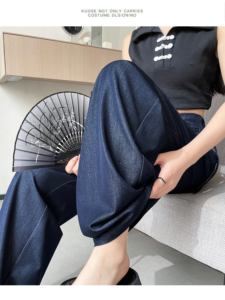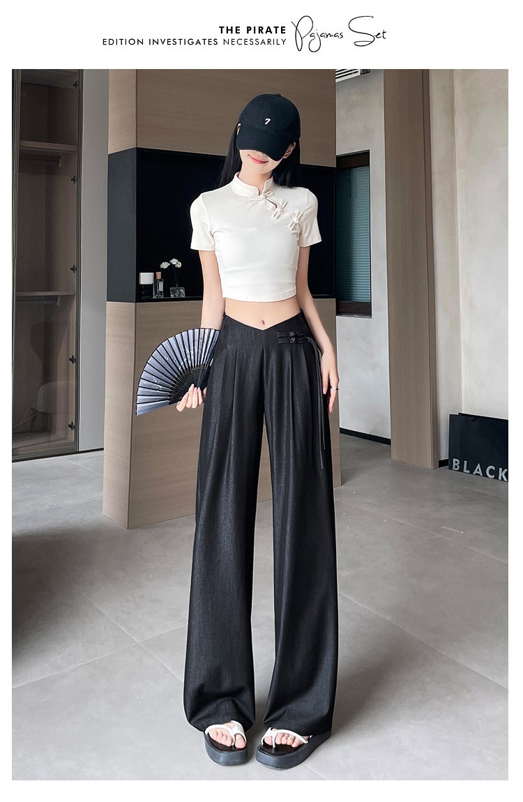 天丝牛仔阔腿裤女夏季冰丝新中式国风裤盘扣高级感垂感直筒西装裤