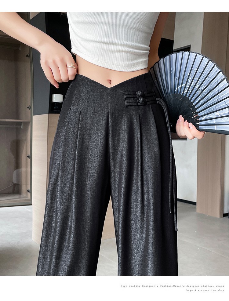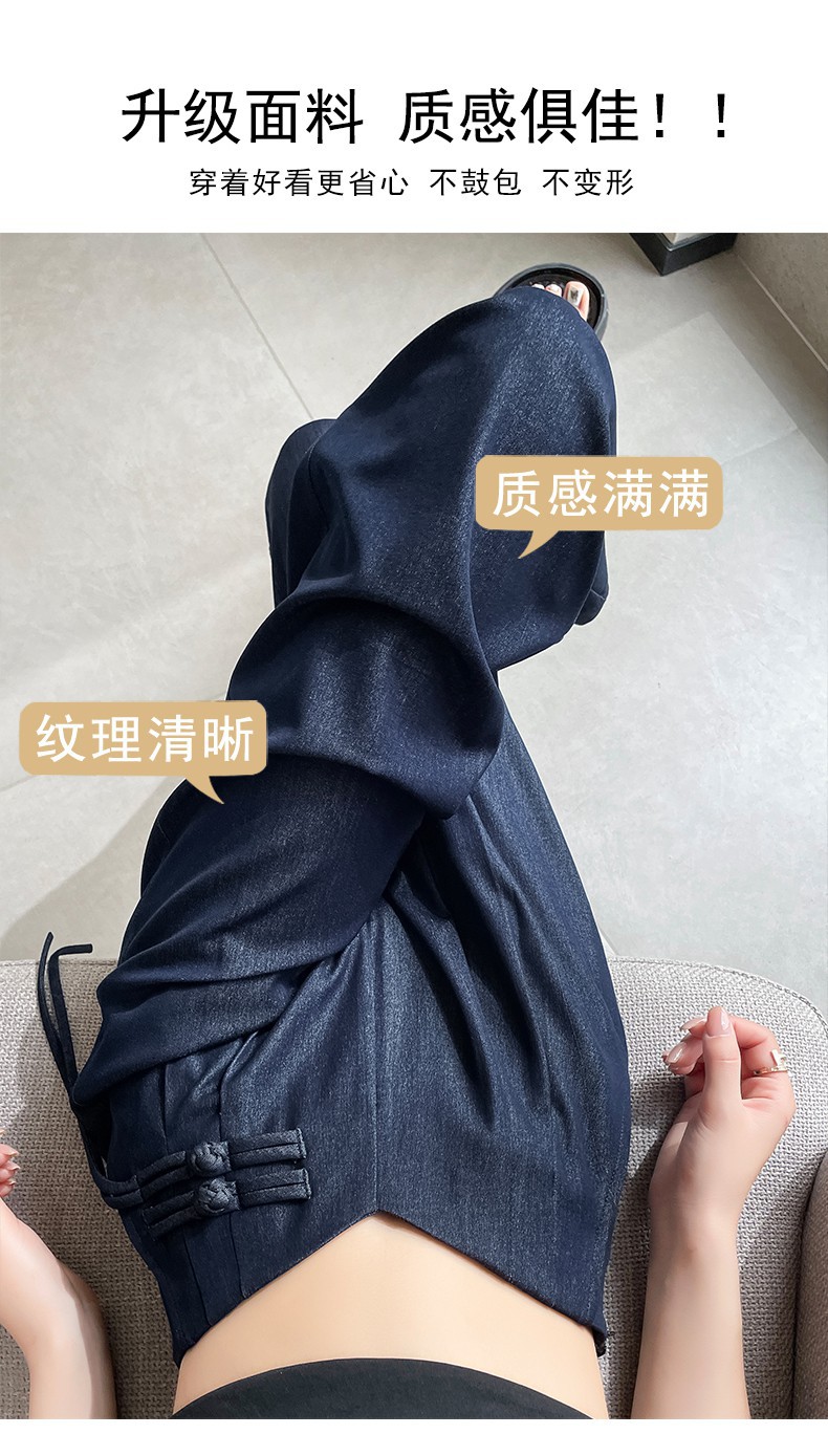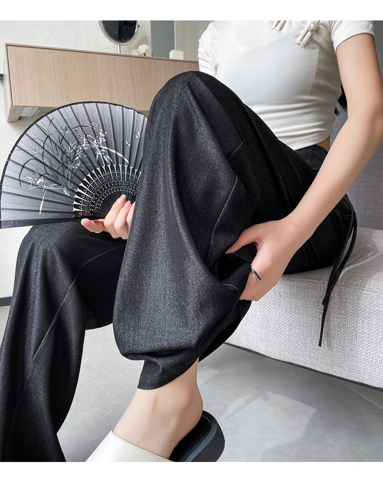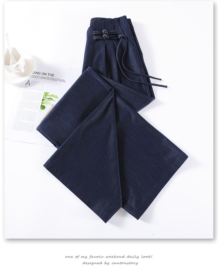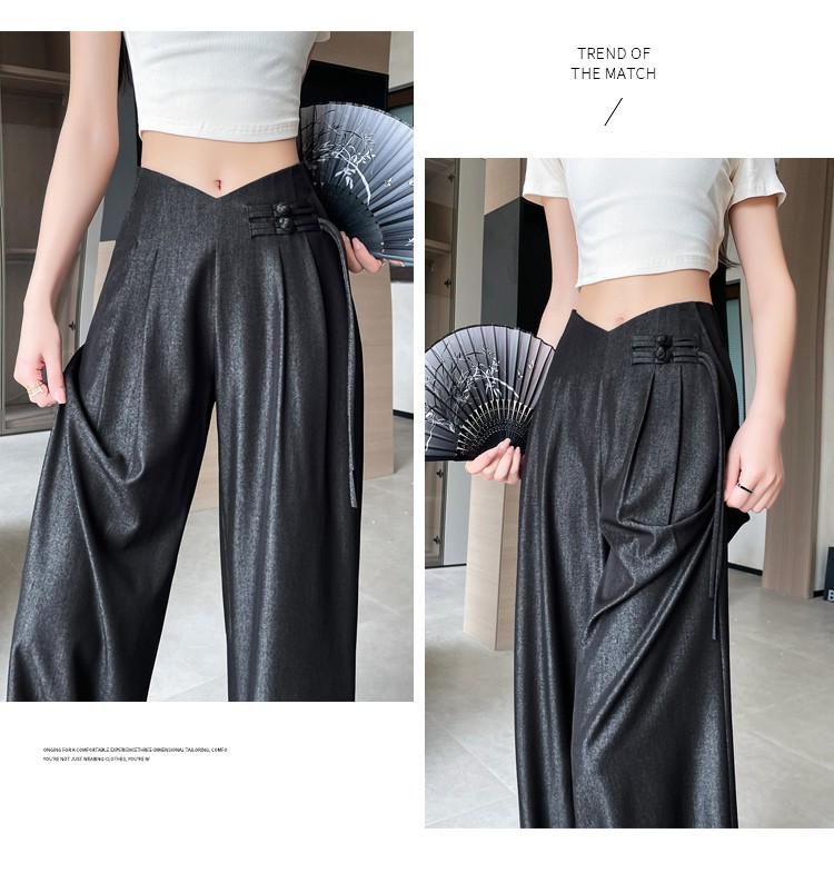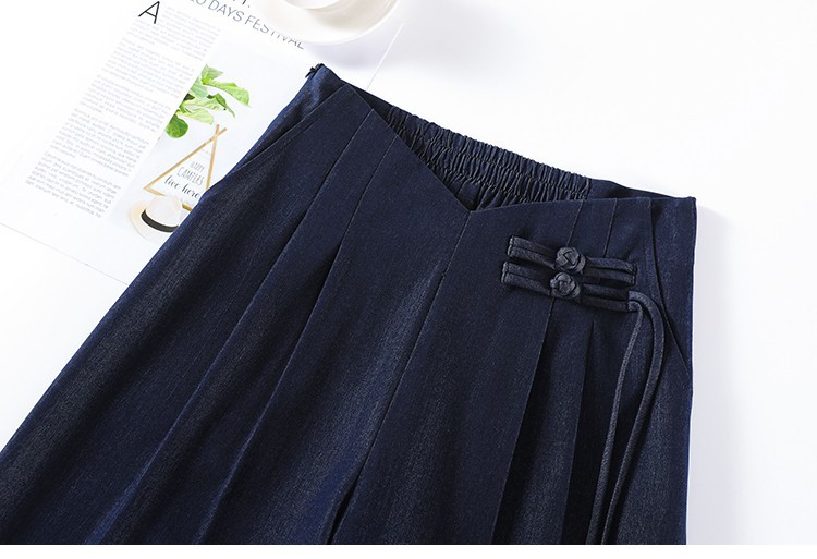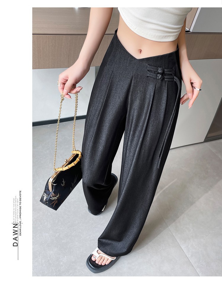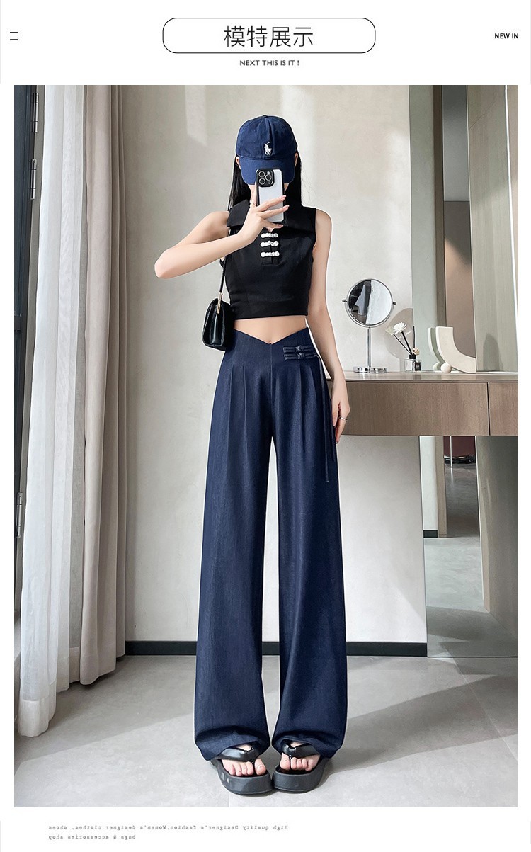 天丝牛仔阔腿裤女夏季冰丝新中式国风裤盘扣高级感垂感直筒西装裤
