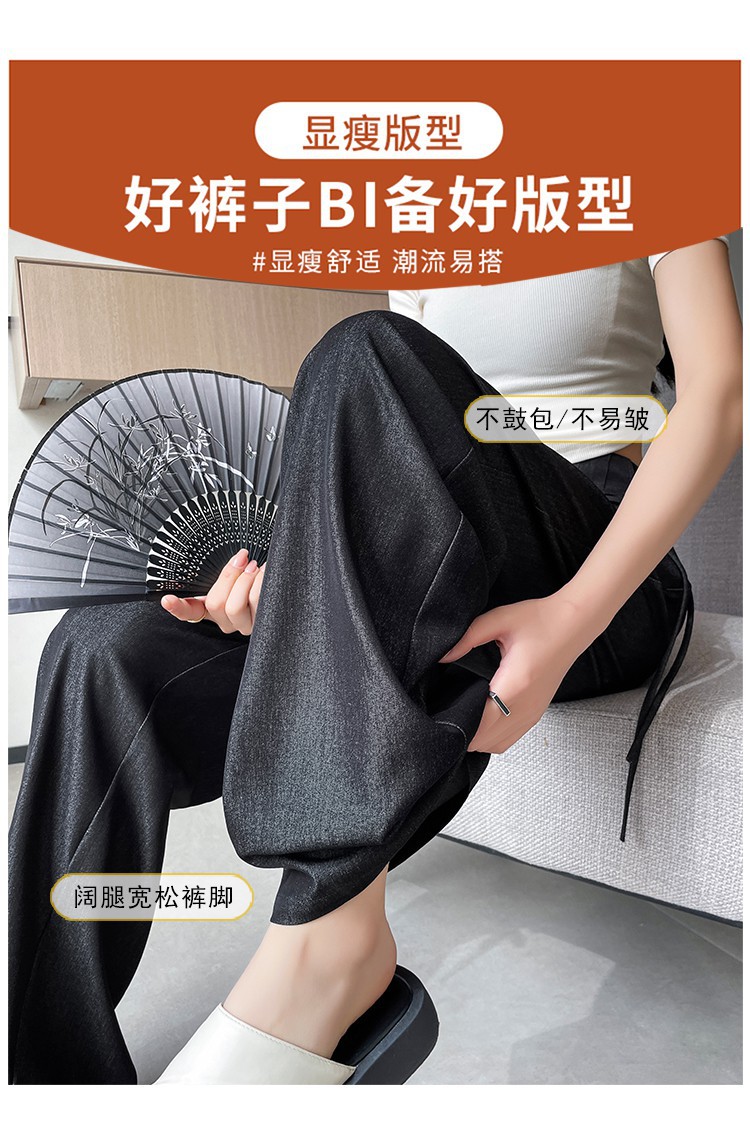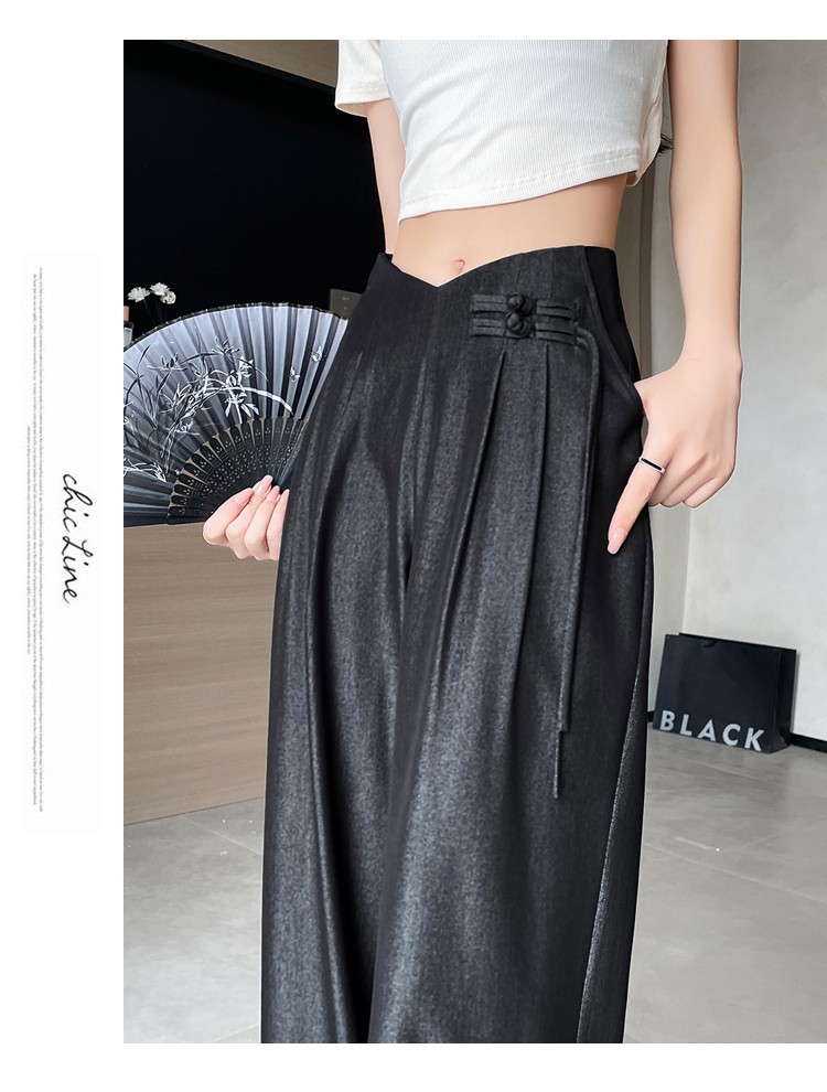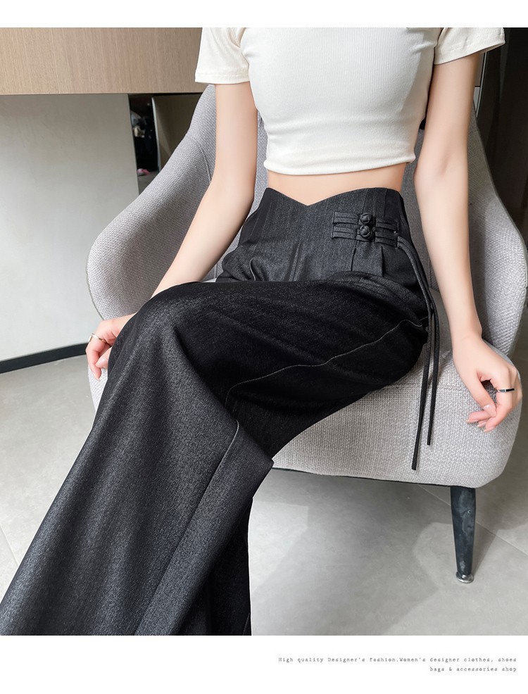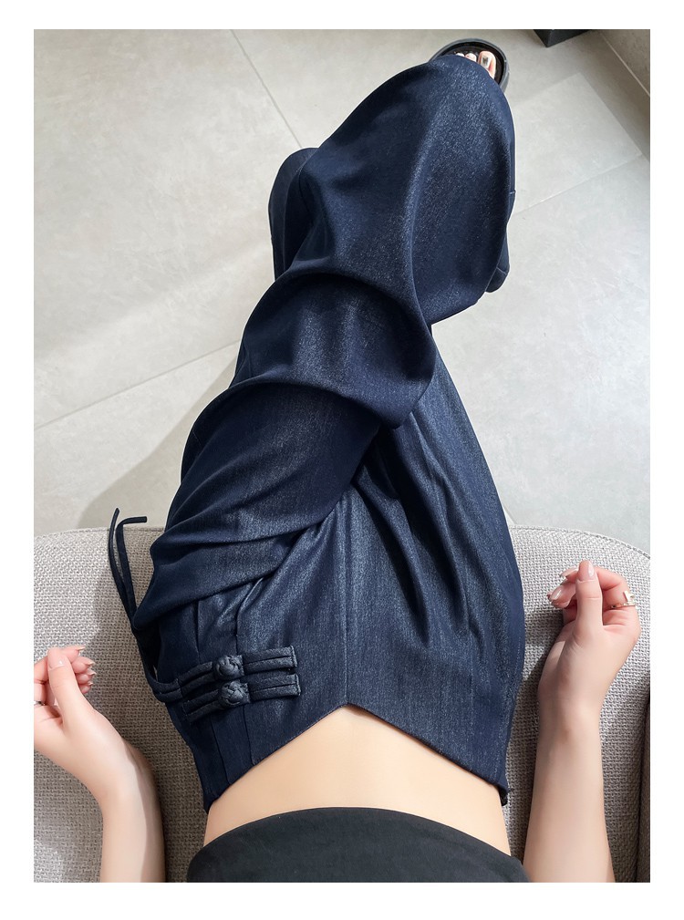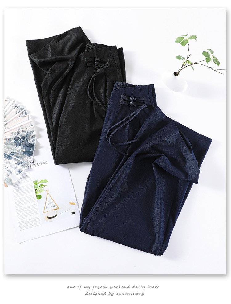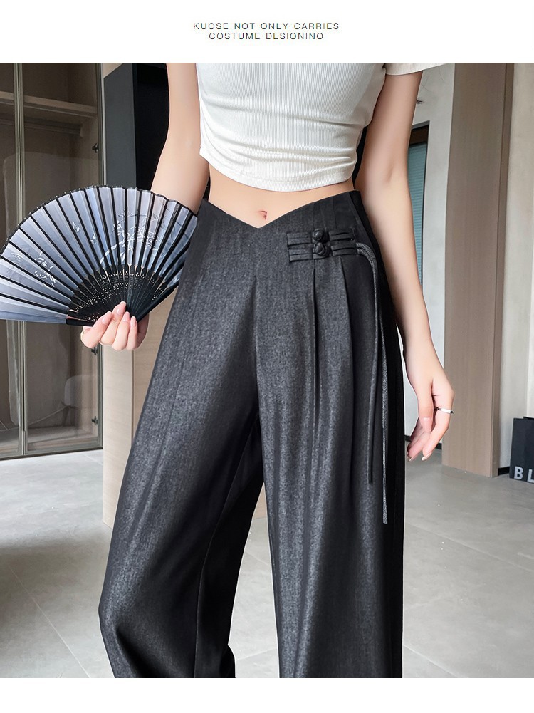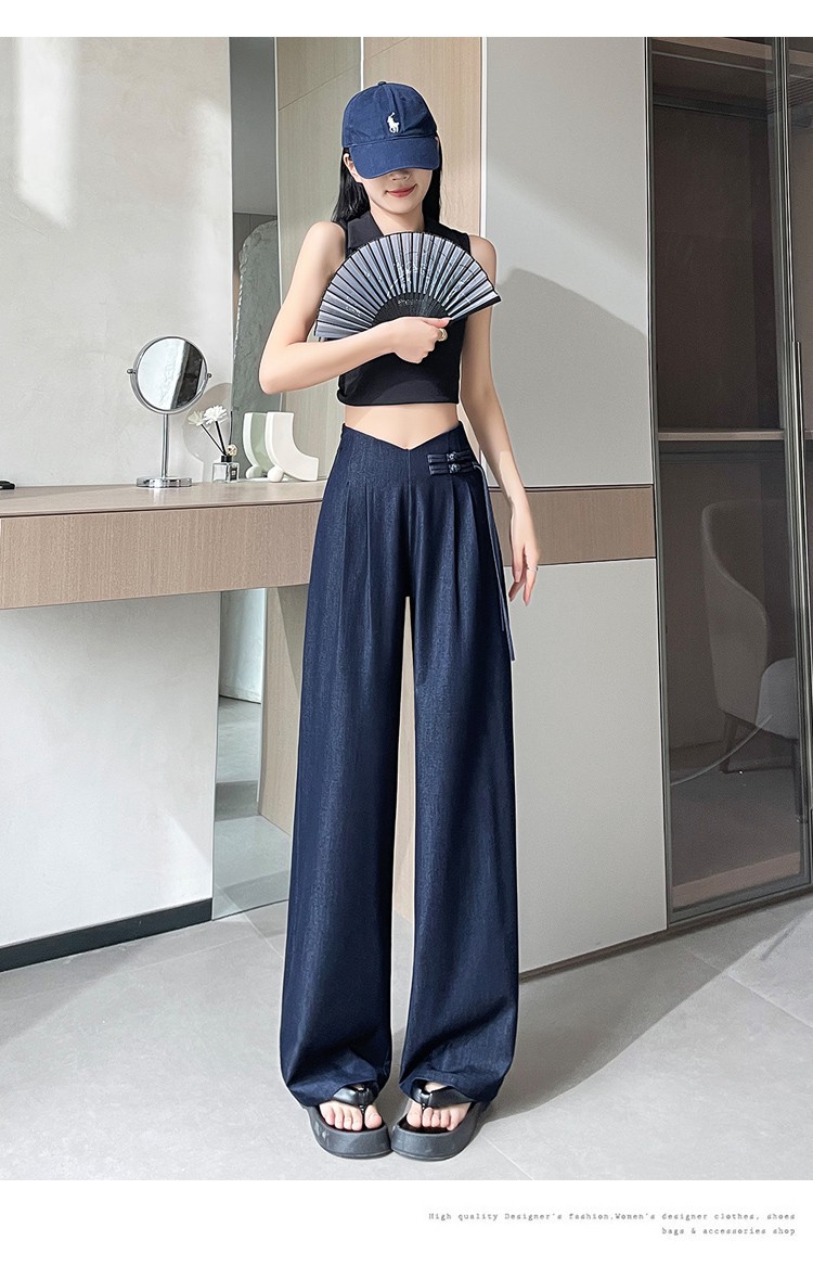 天丝牛仔阔腿裤女夏季冰丝新中式国风裤盘扣高级感垂感直筒西装裤