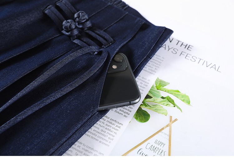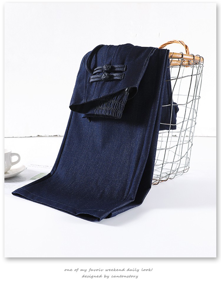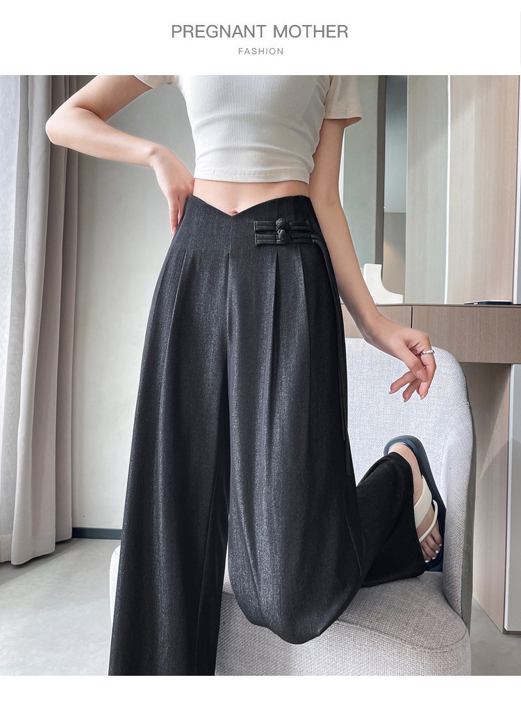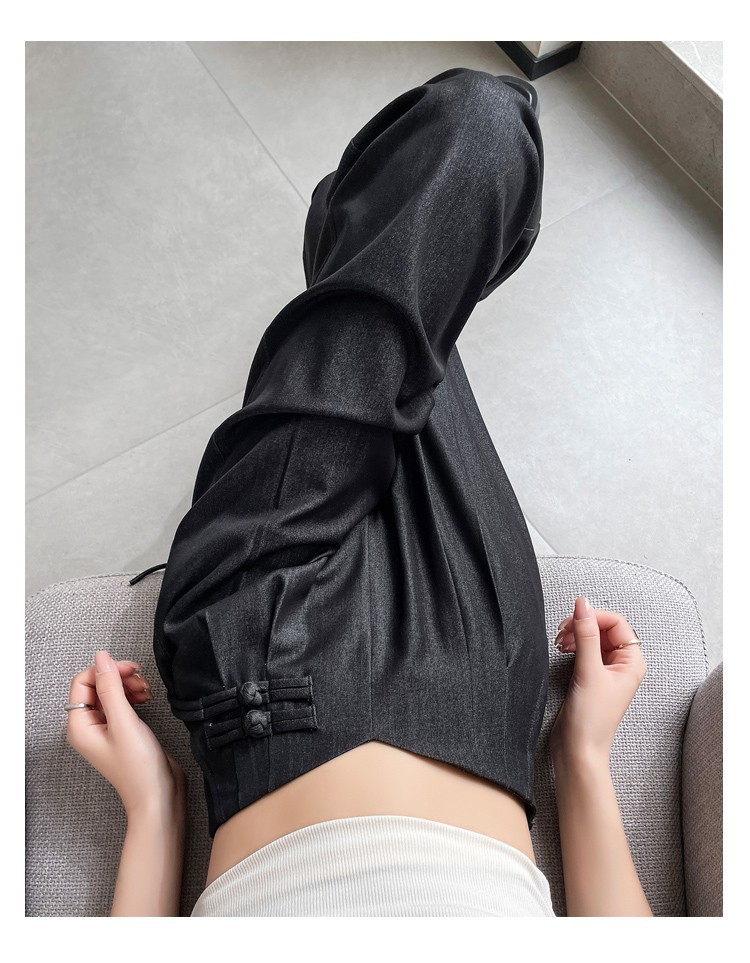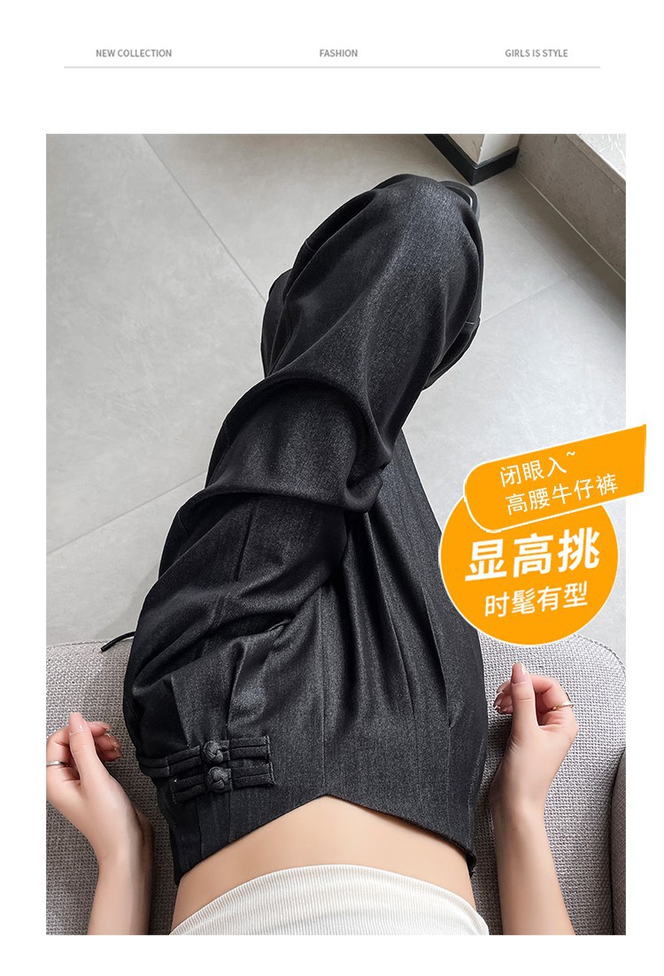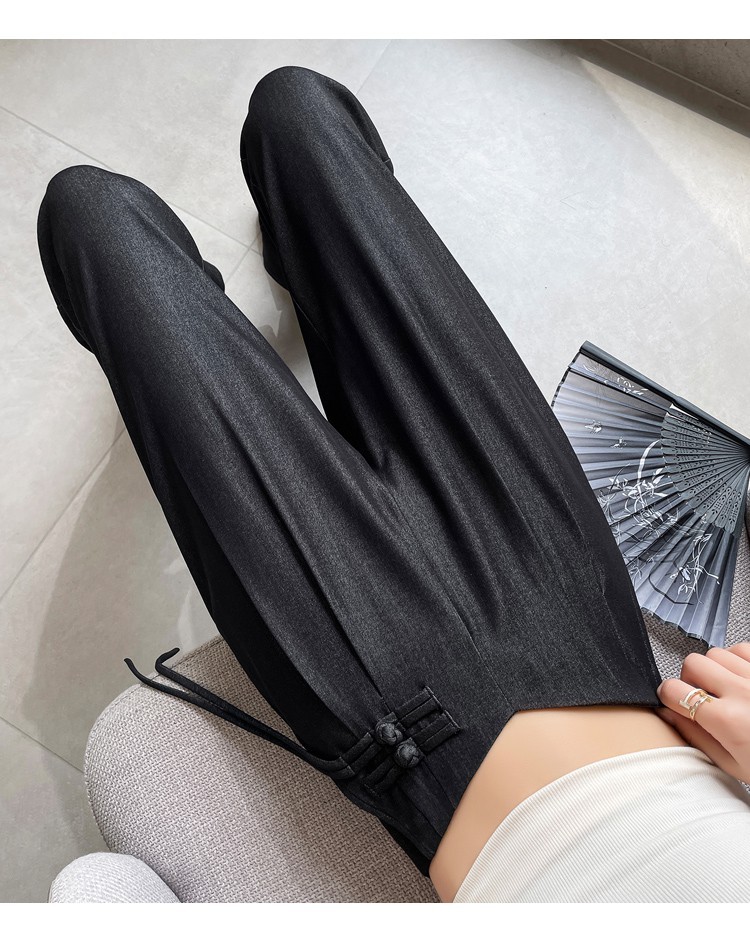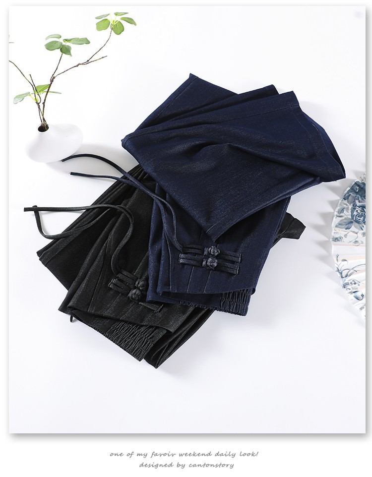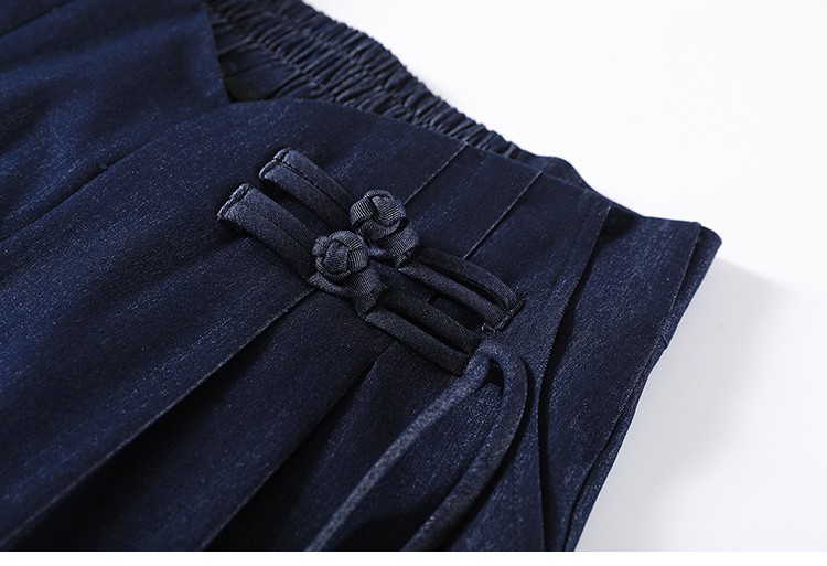 天丝牛仔阔腿裤女夏季冰丝新中式国风裤盘扣高级感垂感直筒西装裤