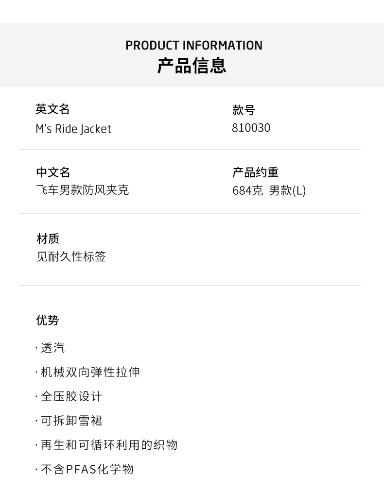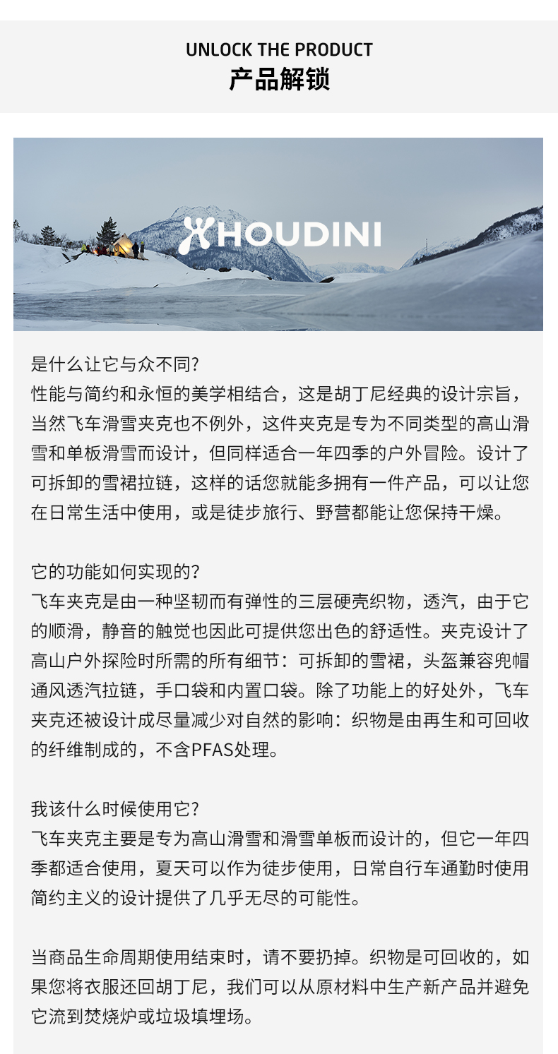 HOUDINI胡丁尼 Ride Jacket 飞车 男款户外防风夹克810030