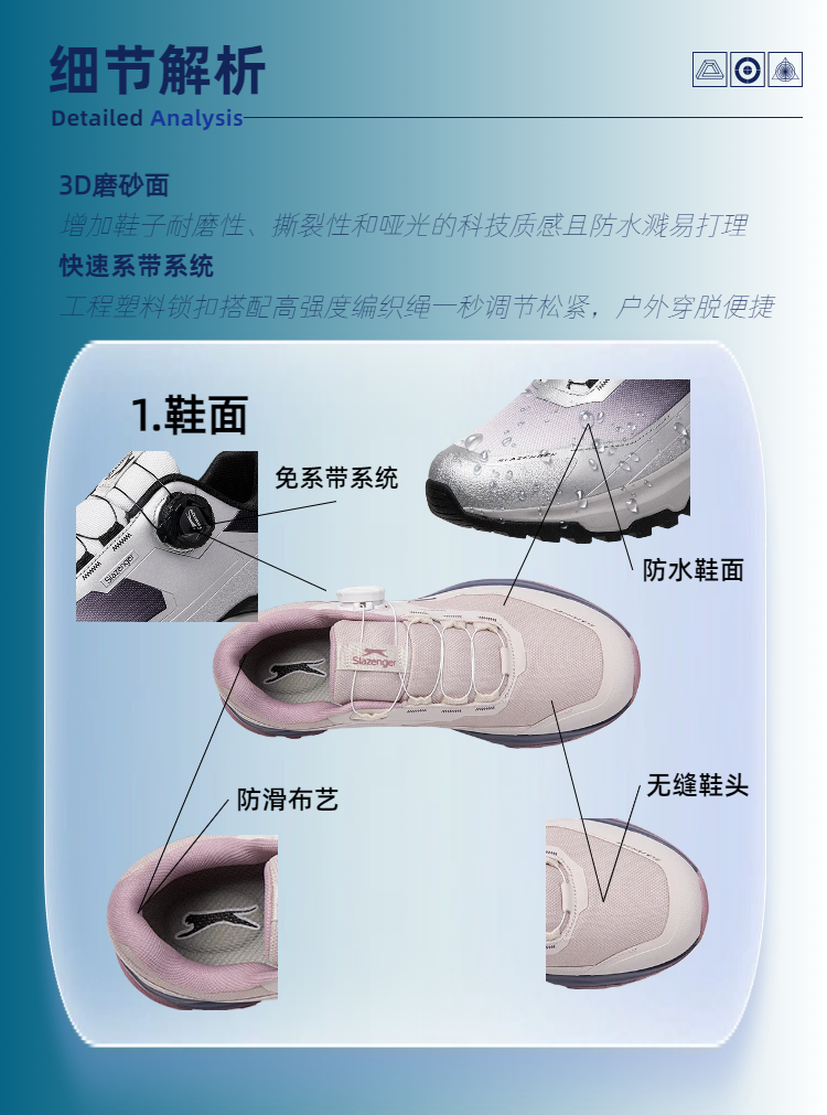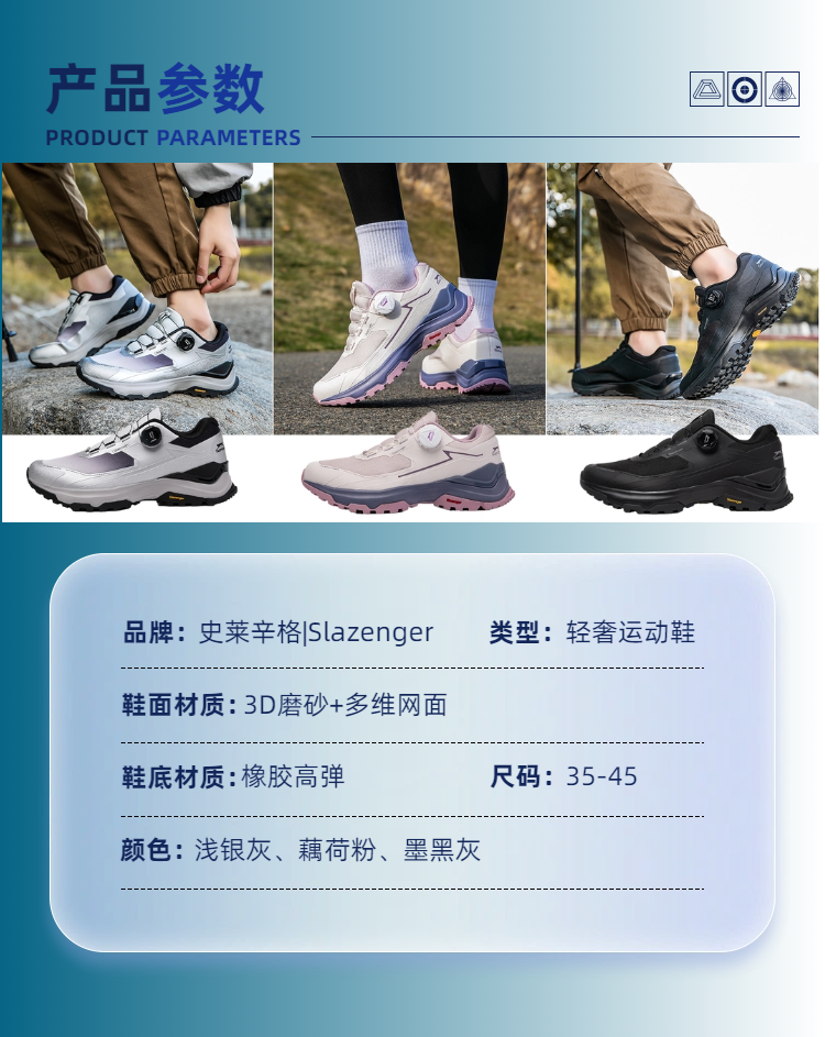 【品名】史莱辛格Slazenger 英国百年品牌 CT-驰风2.0 免系鞋带 登山徒步户外鞋 W19 【规格】墨黑灰、浅银灰、藕荷粉 【尺码】35-45 【产地】国内 【发货包装】独立包装 【发货地】河南 【发货快递】中通、圆通、申通、韵达随机发 【不发货区域】新疆、西藏、港澳台 【发货时效】48-72小时,周末节假日顺延 |