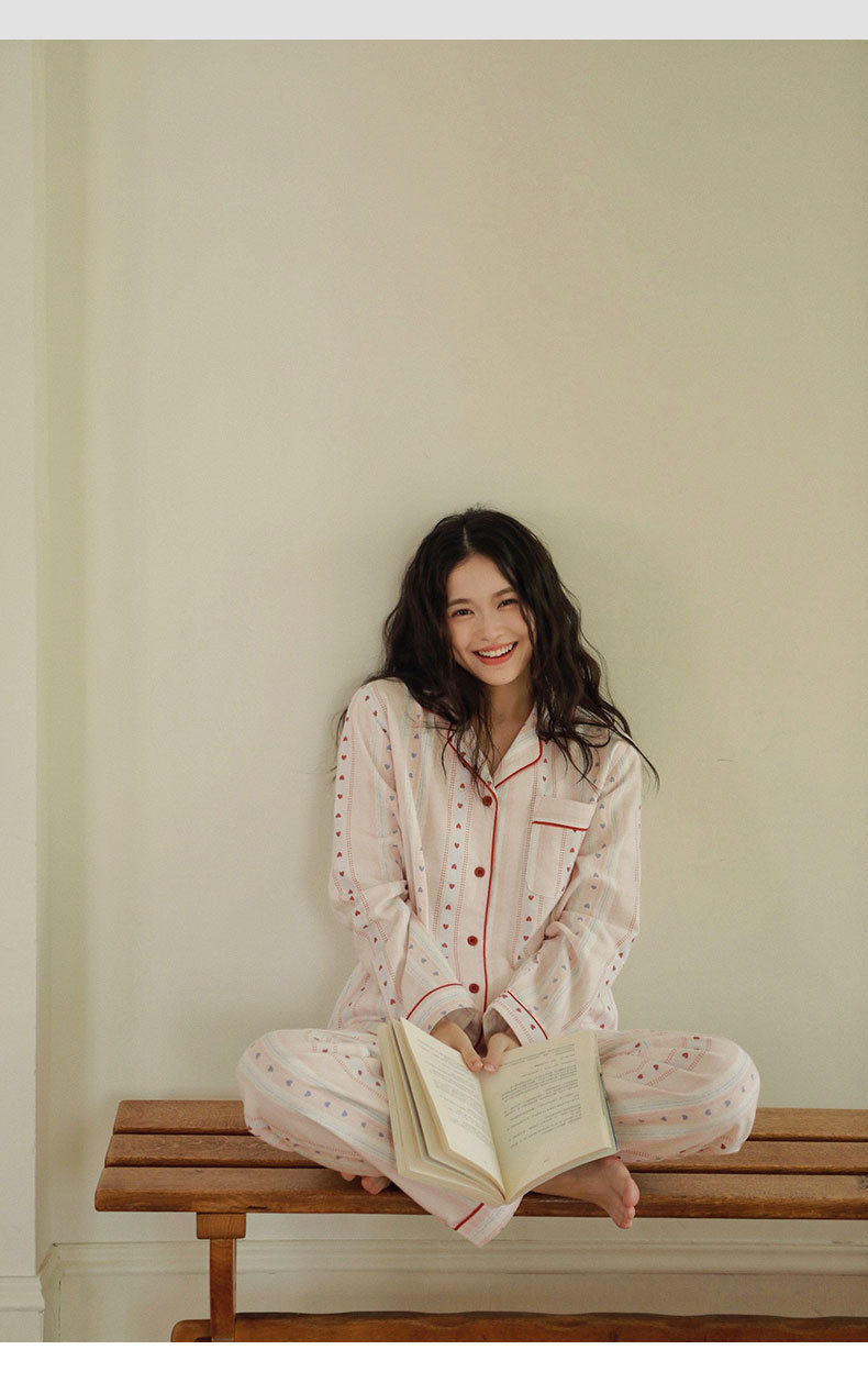 【全棉磨毛】怦然心动~ 两种领型长袖绒布家居服睡衣套装 2025春秋新款睡衣女全棉磨毛纯棉家
