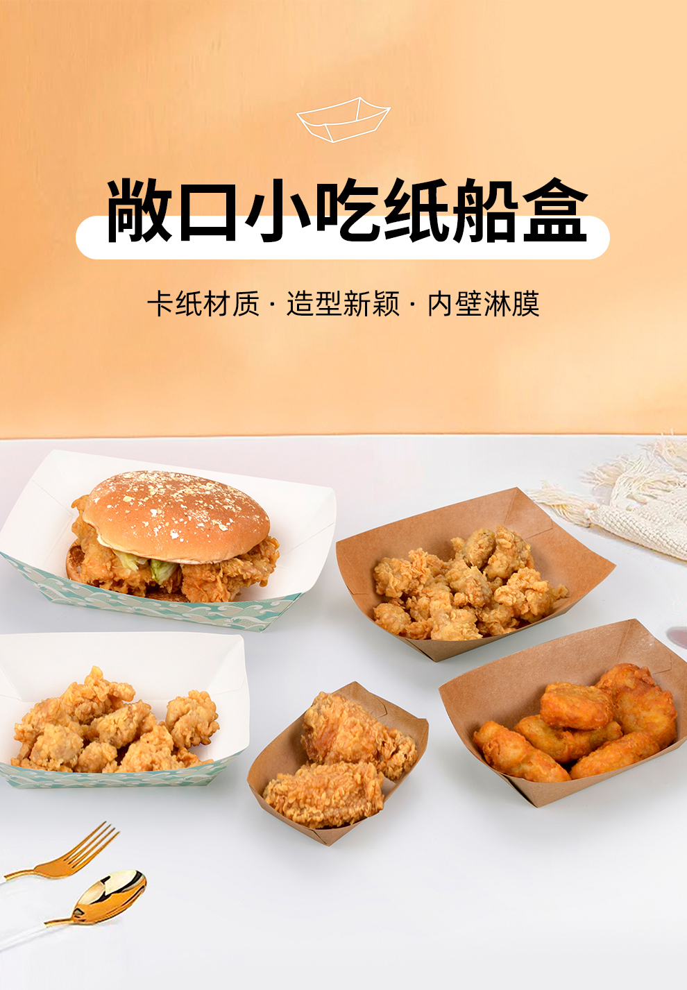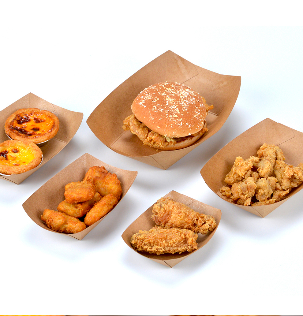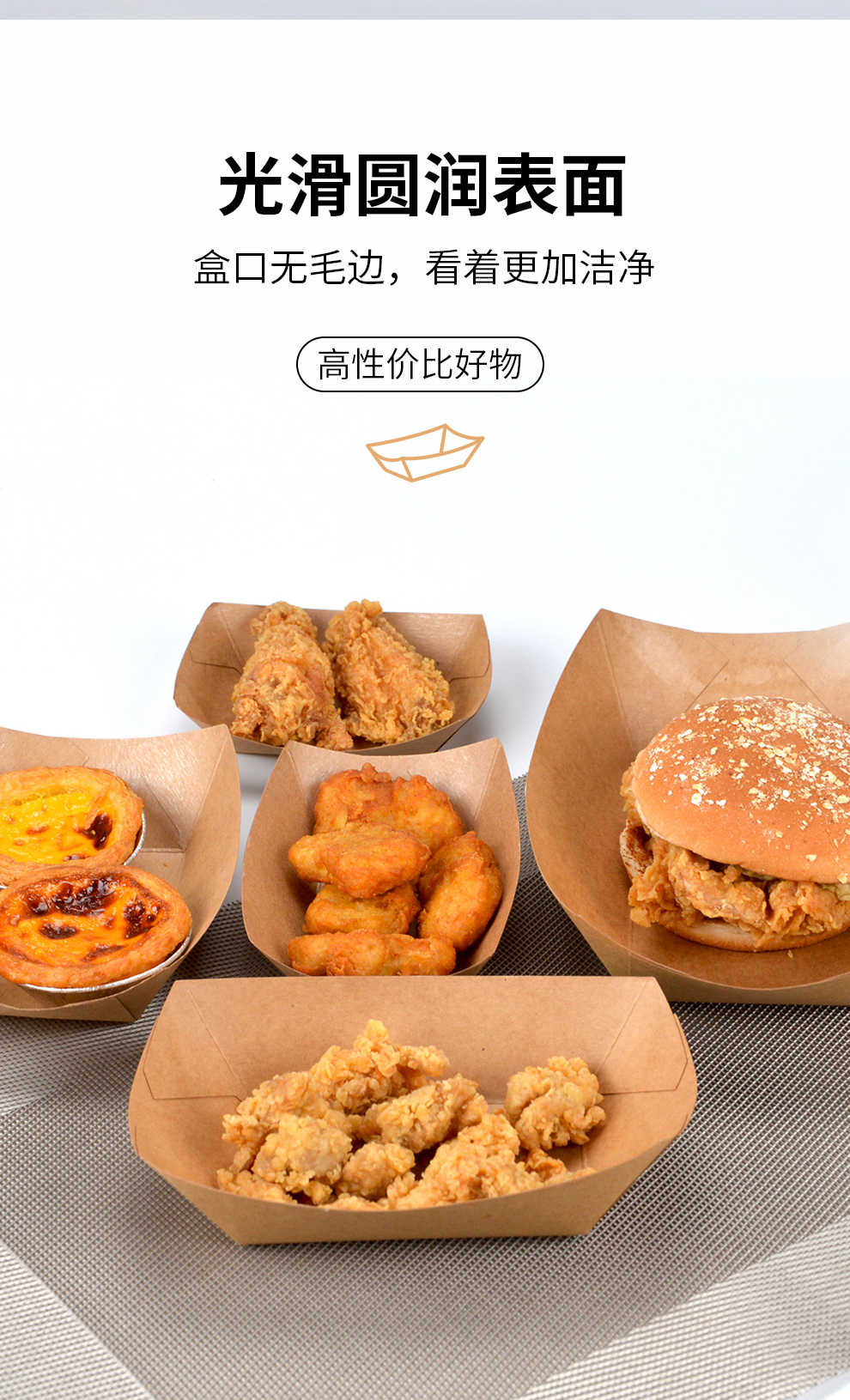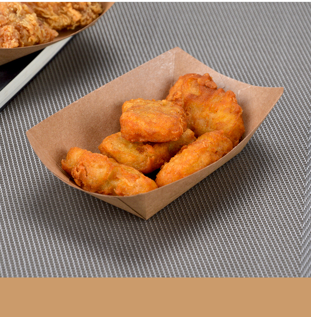 喇叭花牛皮纸船盒一次性鸡米花盒薯条盒烤翅炸鸡块盒子防油250只
