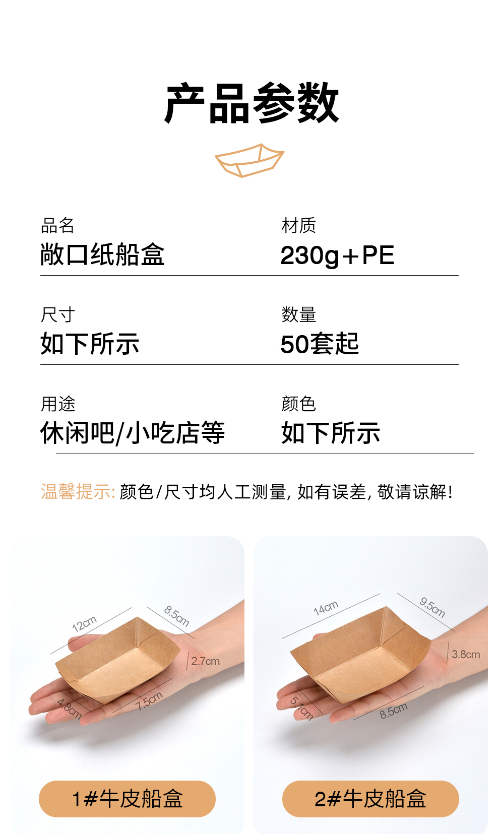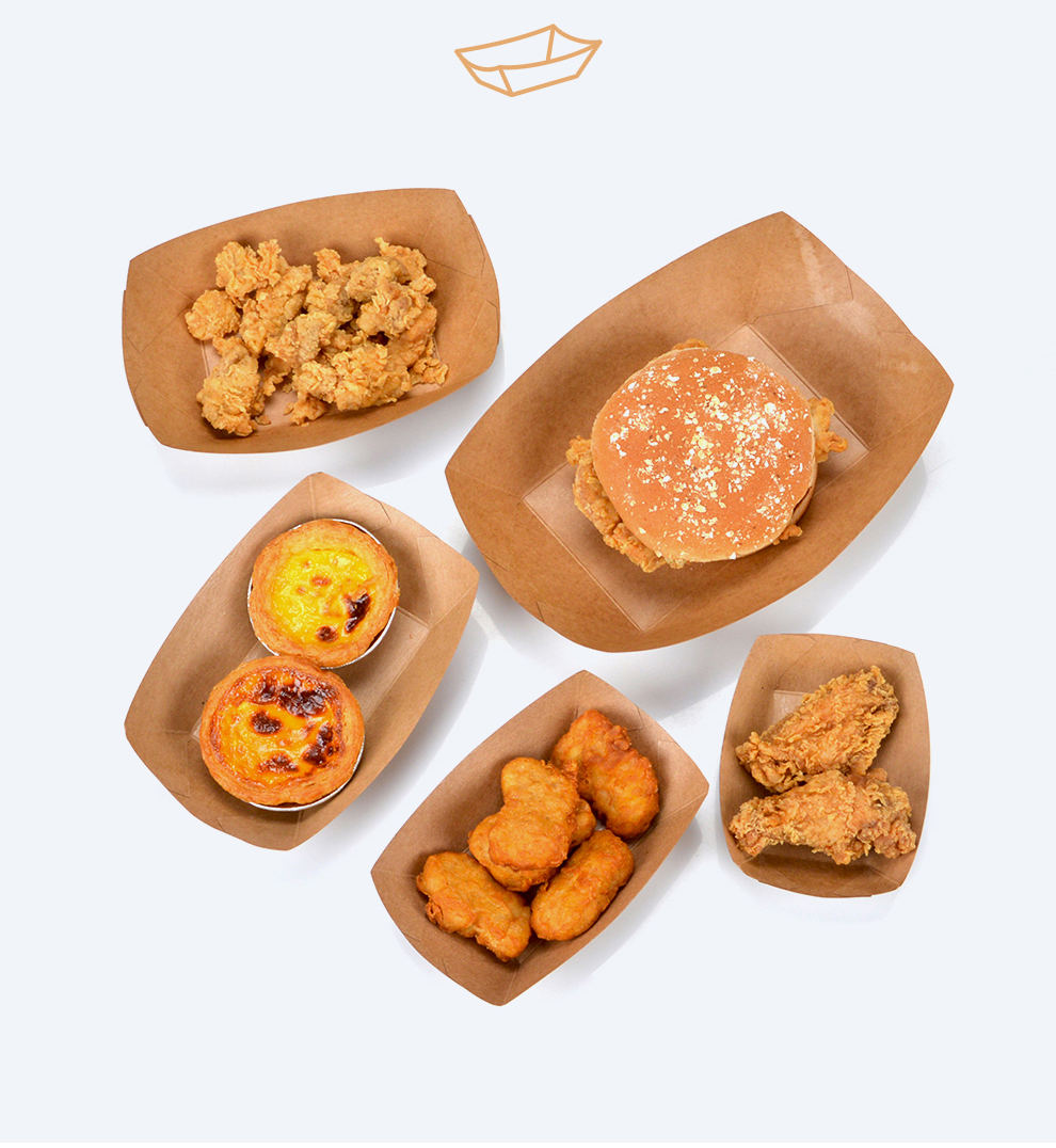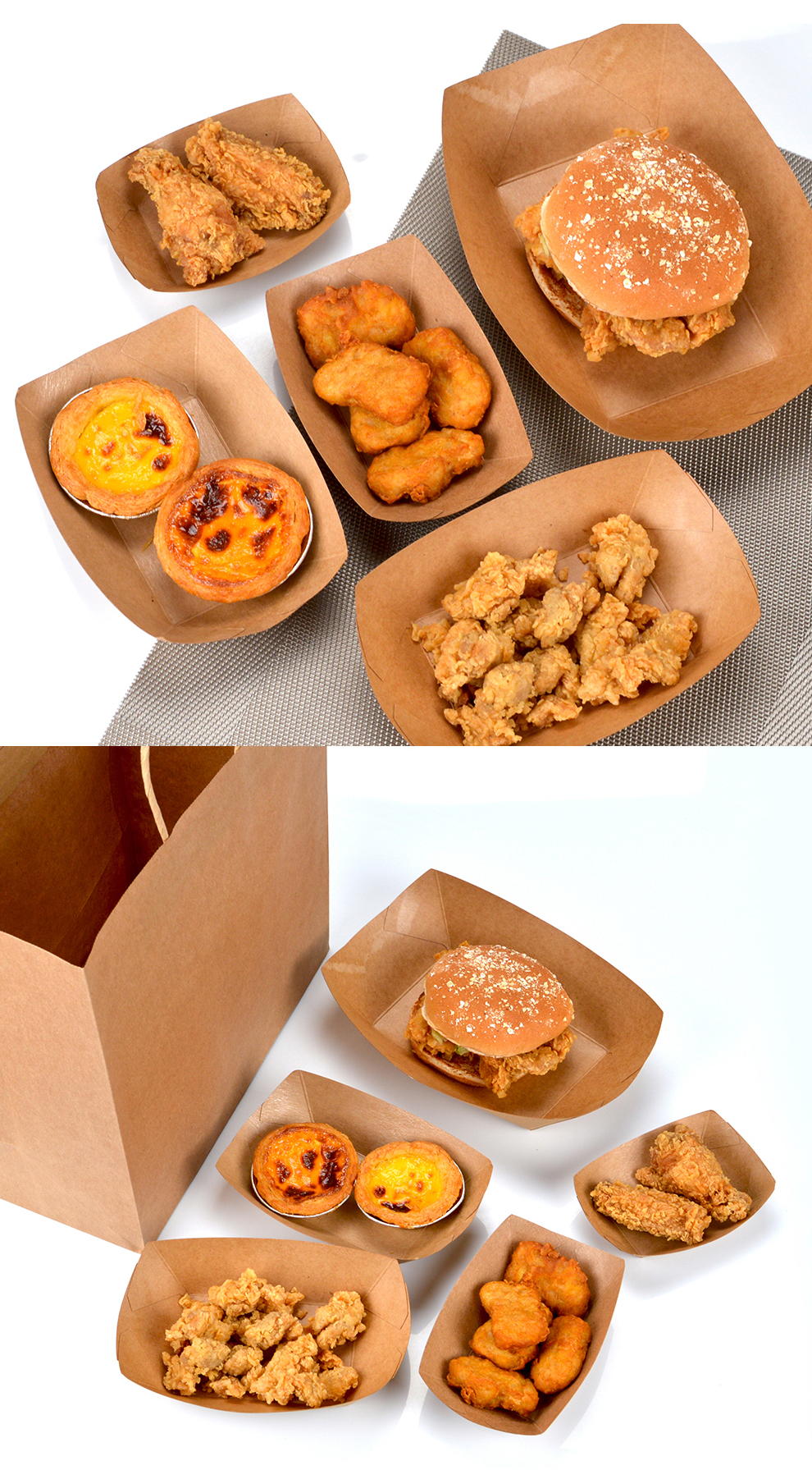 喇叭花牛皮纸船盒一次性鸡米花盒薯条盒烤翅炸鸡块盒子防油250只