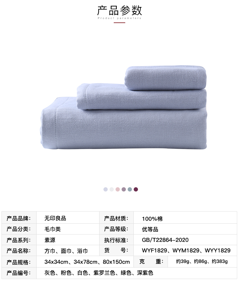 素源系列方面浴套装 纯棉吸水家用方巾面巾浴巾三件套 无印良品